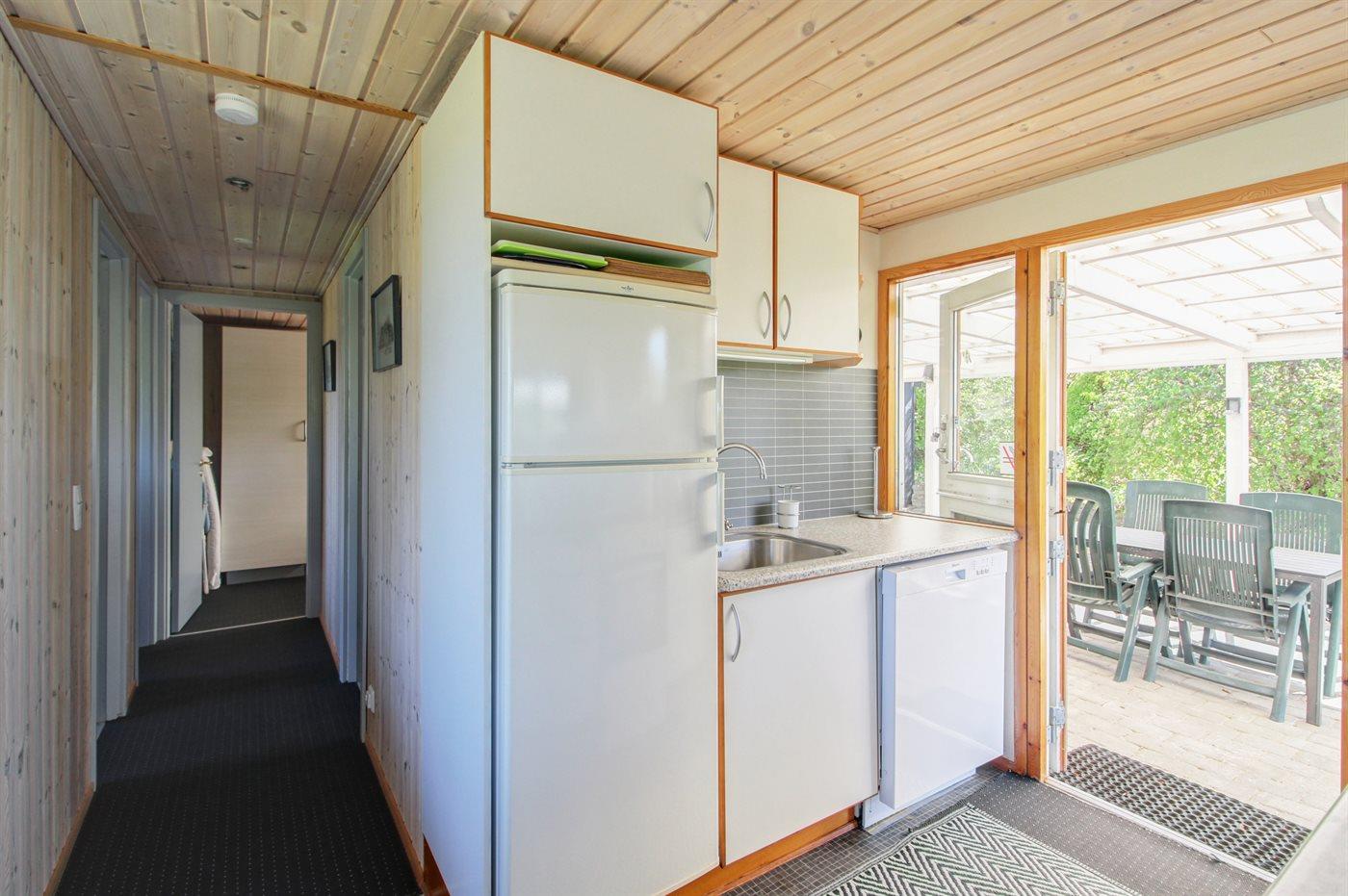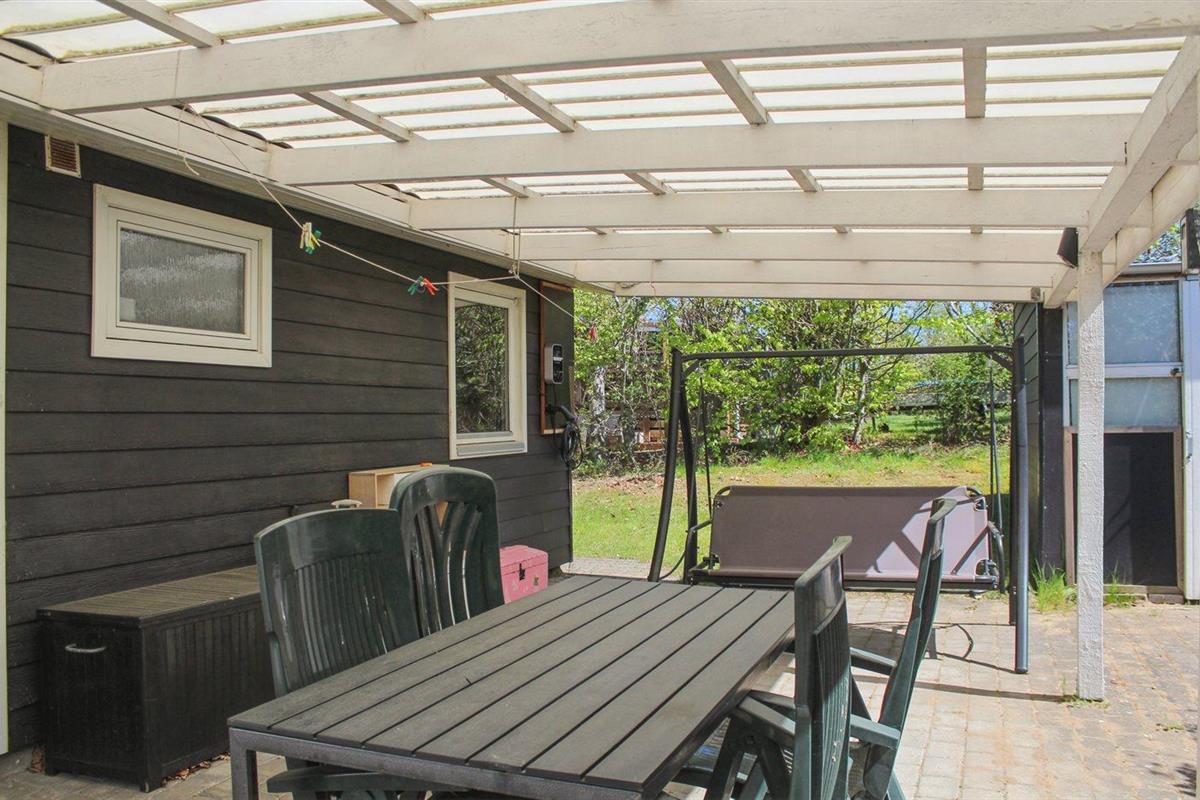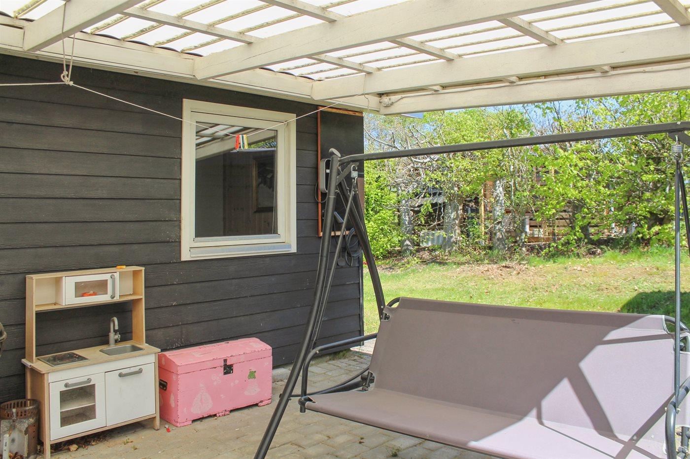 De vakantiewoning is gelegen op een 1200 m² groot aangelegde tuin. Afstand tot de zee 700 m. Dichtstbijzijnde winkel 4000 m. Bij de vakantiewoning hoort 15 m² terras. Daarnaast is er een 20 m² groot overdekt terras. Schommel. Barbecue. Het huis heeft een stopcontact voor het opladen van een elektrische auto. Parkeerplaats bij het huis.