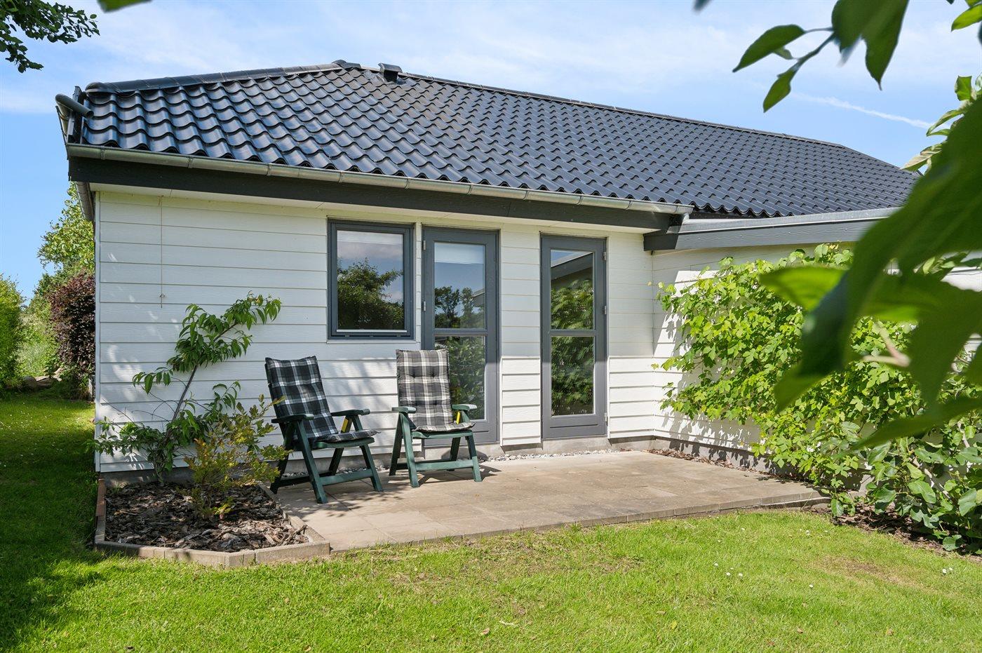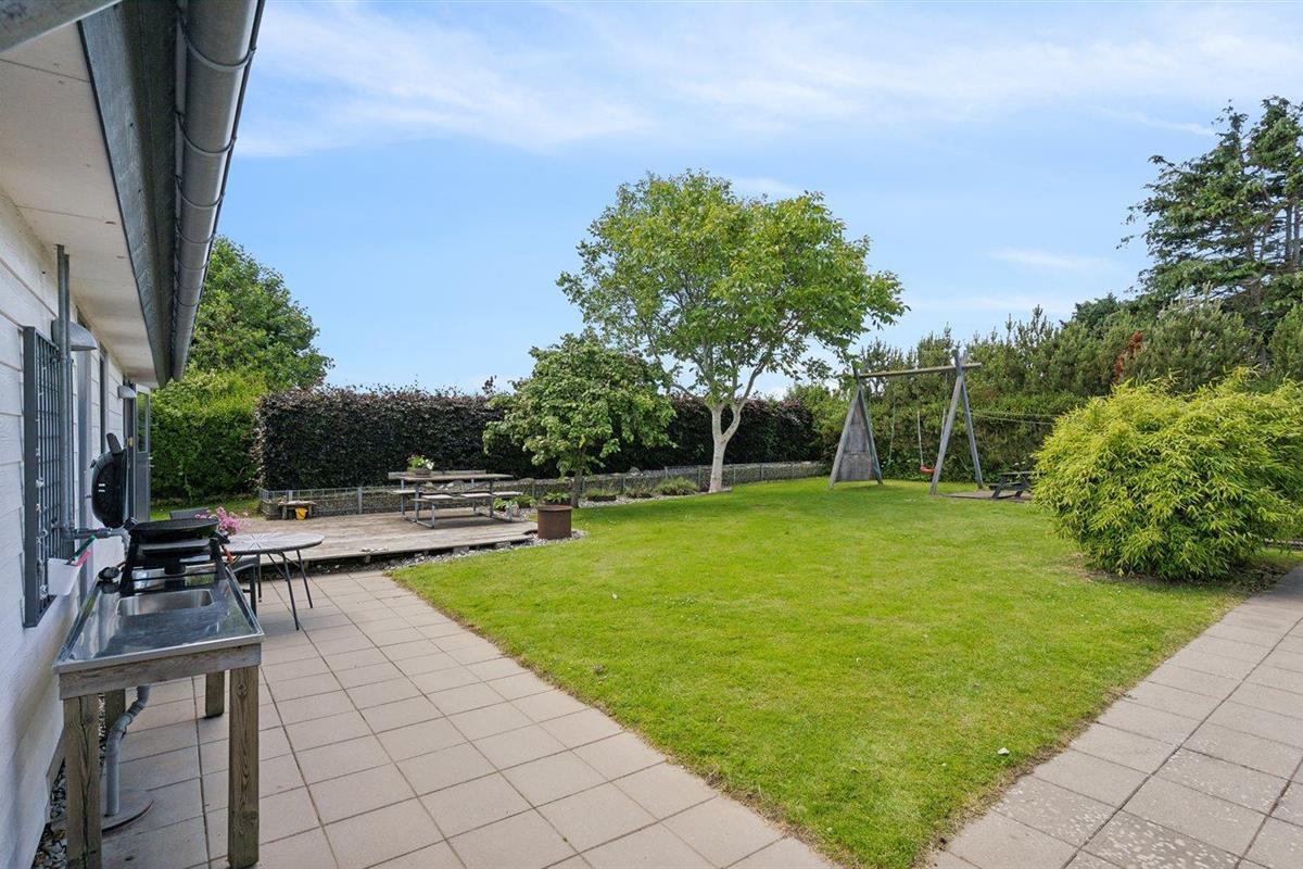 De vakantiewoning is gelegen op een 1559 m² groot aangelegde tuin. Afstand tot de zee 90 m. Dichtstbijzijnde winkel 3000 m. Bij de vakantiewoning hoort terras. Daarnaast is er een overdekt terras. Schommel. Zandbak.Vuurplaats. Parkeerplaats bij het huis.