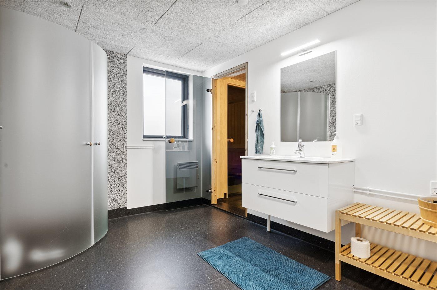 Er is 2 badkamers met douchehok en 2 toiletten. Er is vloerverwarming in 1 badkamer. De sauna biedt de gelegenheid tot ontspanning.