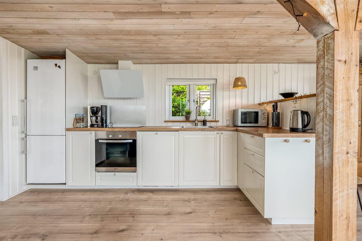 De keuken is uitgerust met koelkast Er is 4 inductiekookplaten, heteluchtoven, magnetron en vaatwasser.