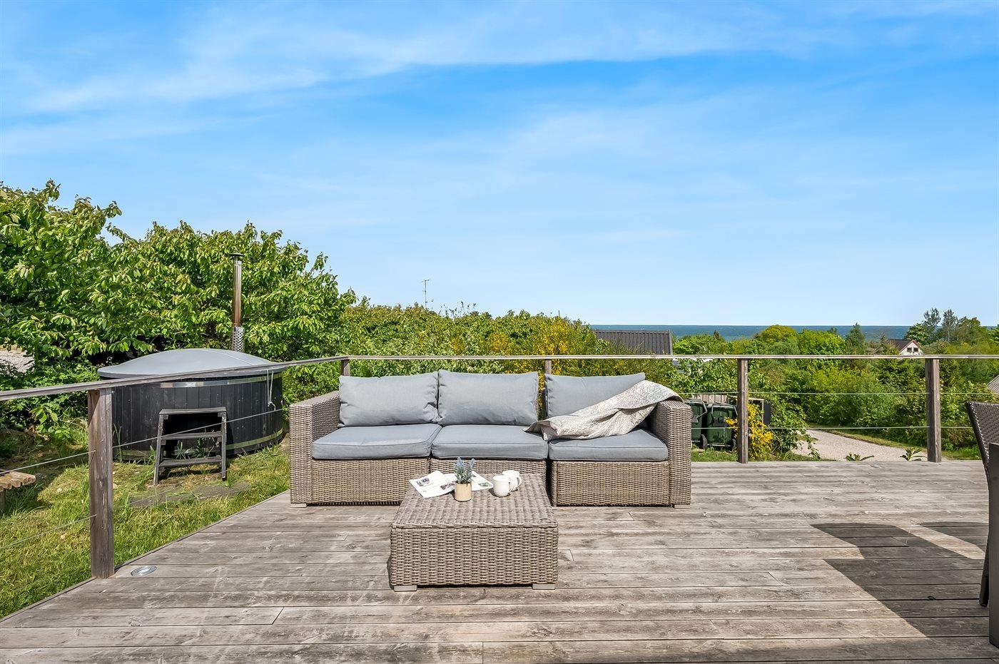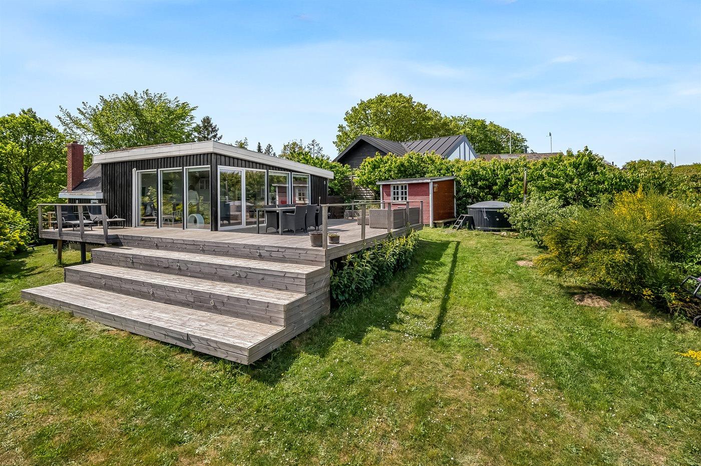Modern vakantiehuis in Allingåbro met sauna, hot tub en zeezicht, ideaal voor ontspanning en natuur.