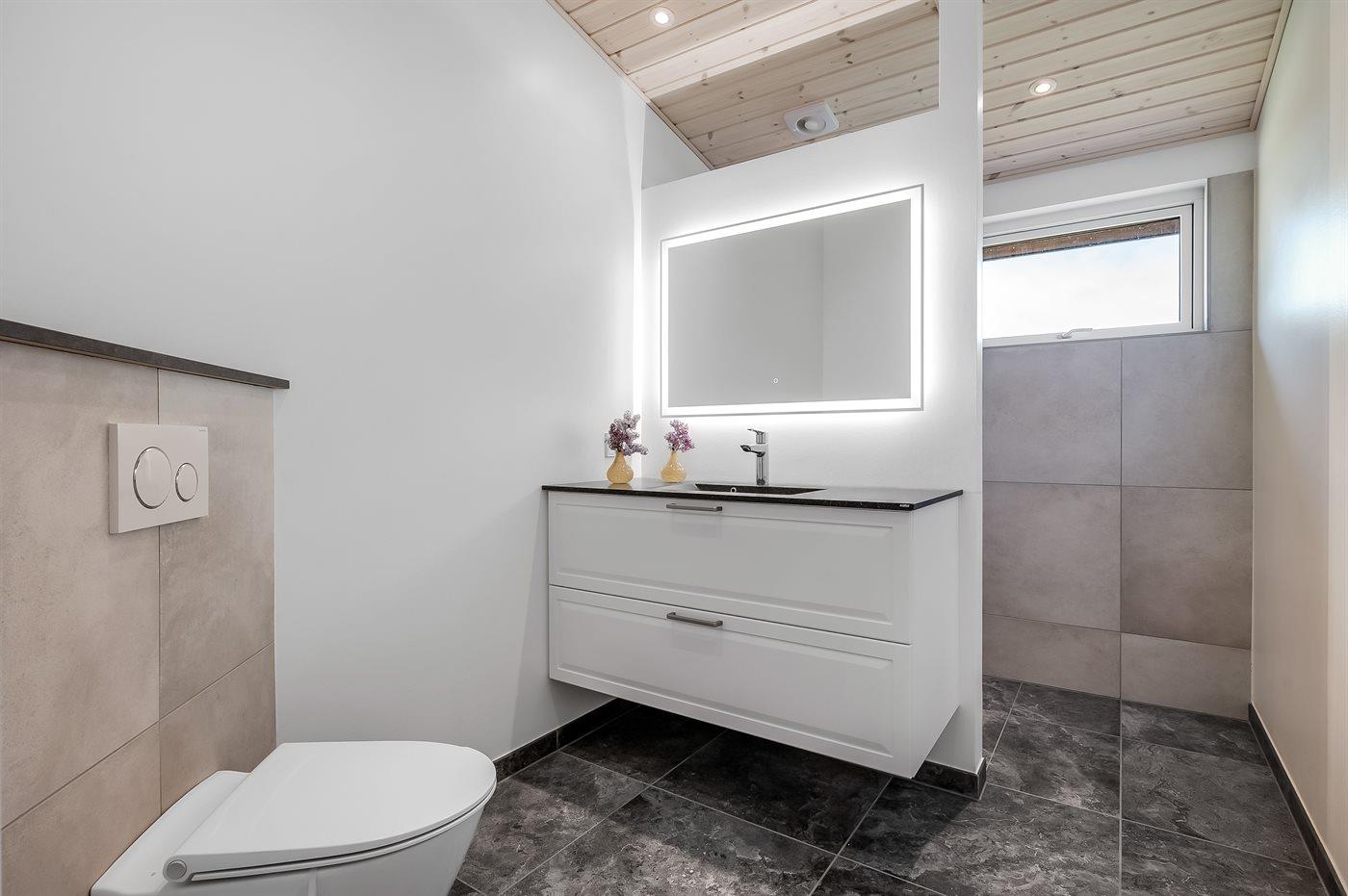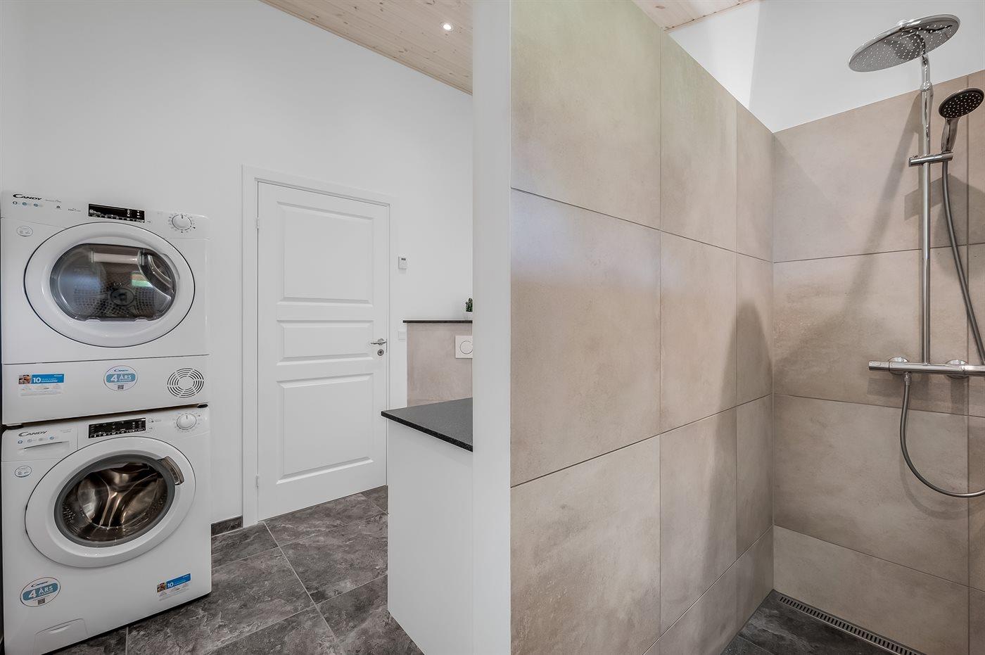 Er is 2 badkamers met douchehok en 2 toiletten. Er is vloerverwarming in 2 van de badkamers.