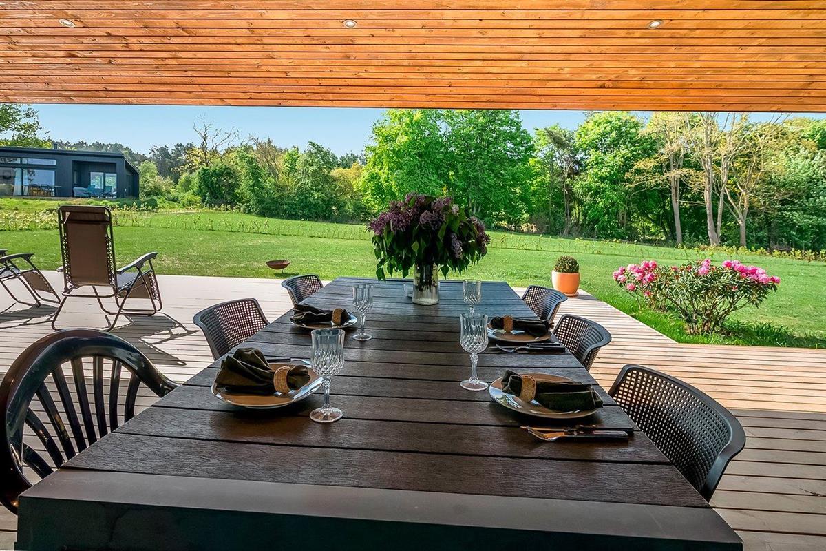 Modern vakantiehuis in Allingåbro, Denemarken, vlak bij zee met tuin en luxe voorzieningen.