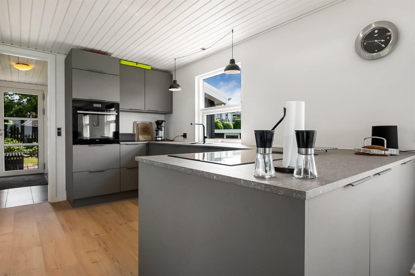 De keuken is uitgerust met koelkast Er is 4 inductiekookplaten, heteluchtoven, magnetron en vaatwasser.