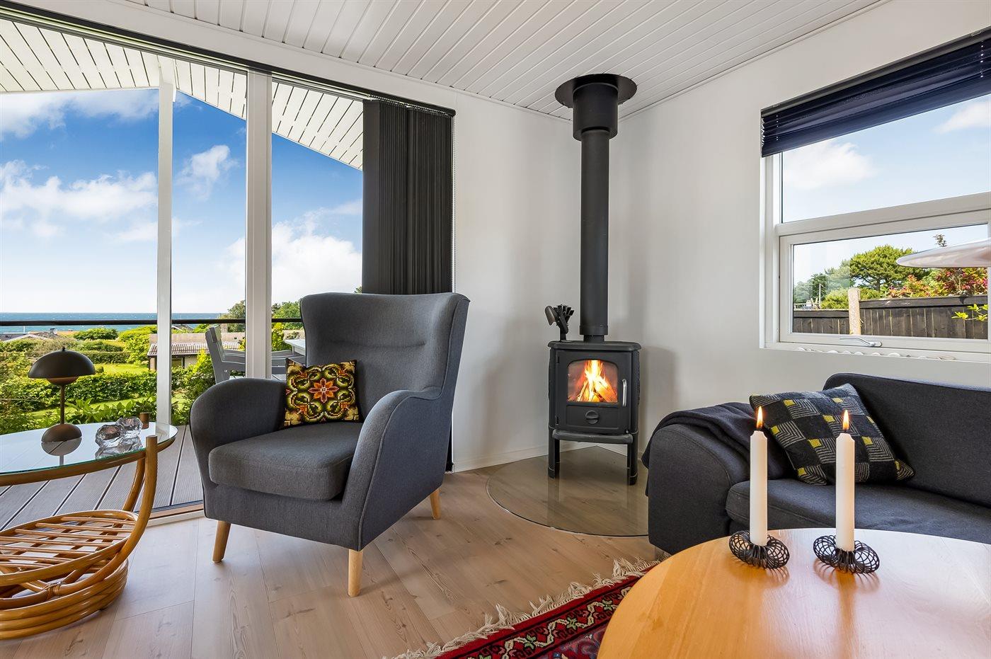 Modern vakantiehuis met zeezicht, overdekt terras en energiezuinige warmtepomp, vlakbij het strand.