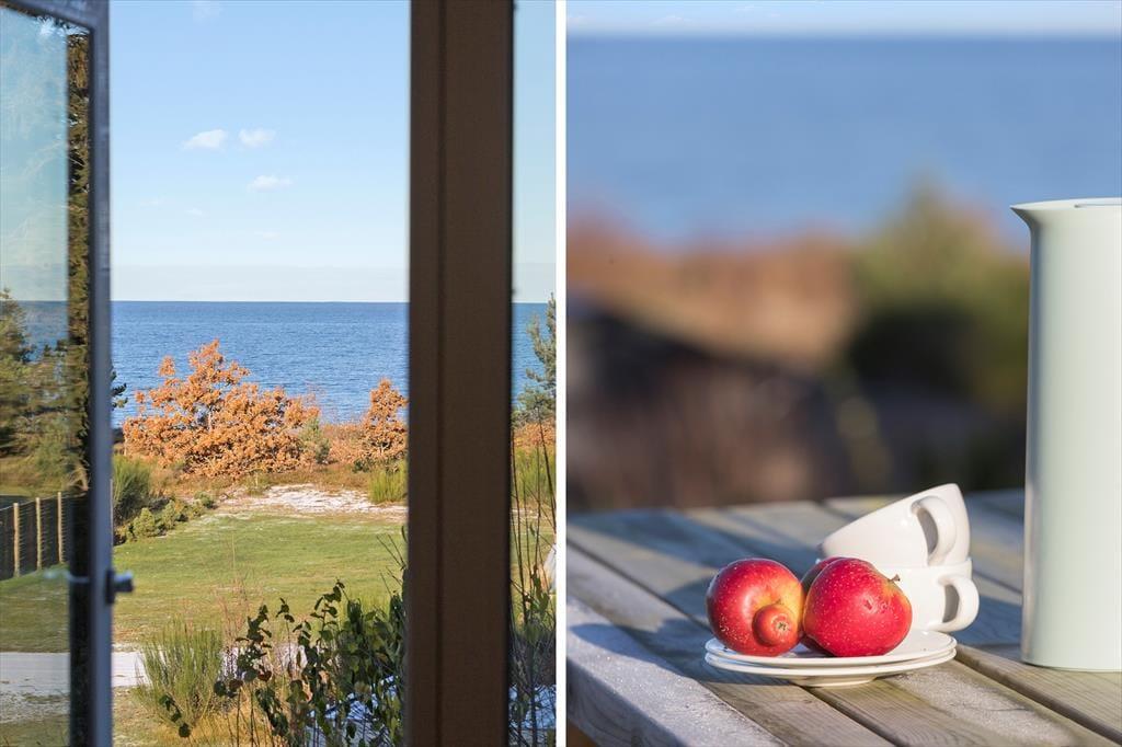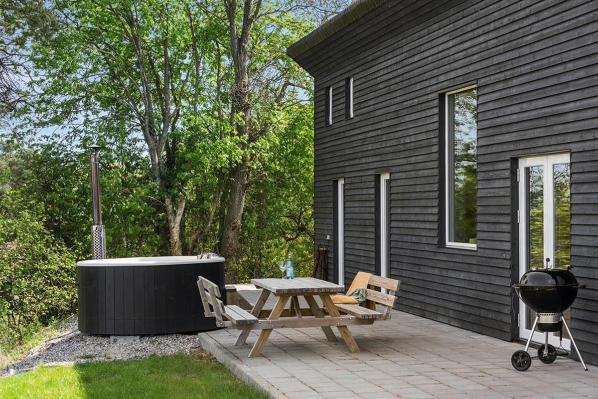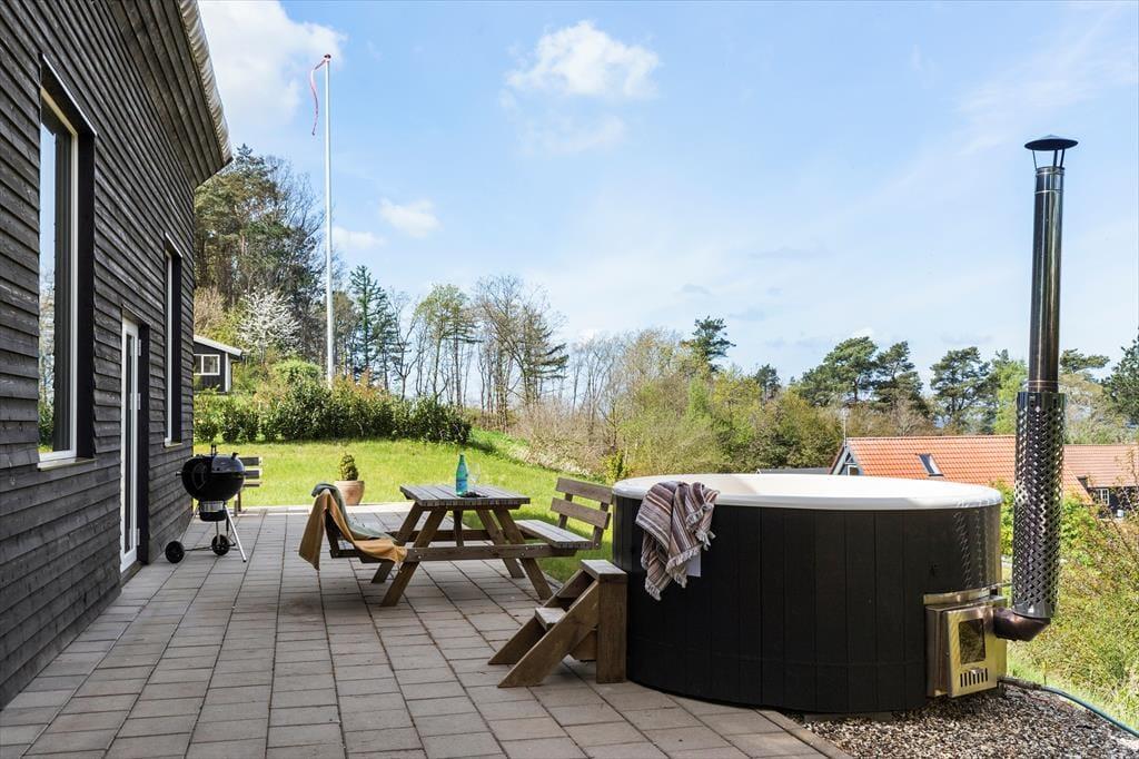 Die Panoramaterrasse ist eines der Highlights dieses fantastischen Urlaubsdomizils. Auf ihr könnt ihr grillen, Mahlzeiten in der Sonne genießen und euch entspannte Momente in der Schwedischen Badetonne gönnen - untermalt von der atemberaubenden Aussicht auf das Meer. Die Rasenfläche vor dem Haus lädt zum Ballspielen und Umhertollen ein. Für ruhige Stunden mit einem spannenden Buch stehen Liegestühle bereit.