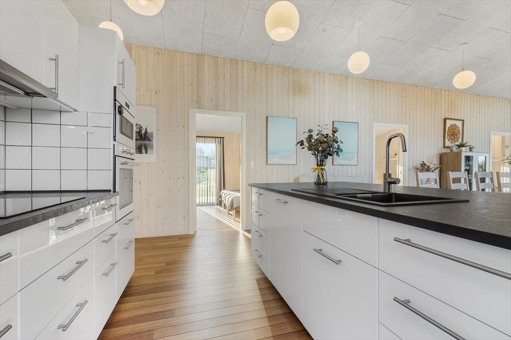 In deinem modernen, stilvollen Ferienhaus aus dem Jahr 2022 wirst du dich vom ersten Moment an wohlfühlen. Luxus vereint sich hier mit der Natur vor deinen Fenstern. Du genießt einen spektakulären Meerblick - in Wohnraum und Küche sowie draußen auf deiner fantastischen Panoramaterrasse. Nach nur 200 Metern erreichst du mit deinen Lieben einen kinderfreundlichen Badestrand, an dem ihr Spaziergänge unternehmen, baden und im warmen Sand die Sonne genießen könnt.
