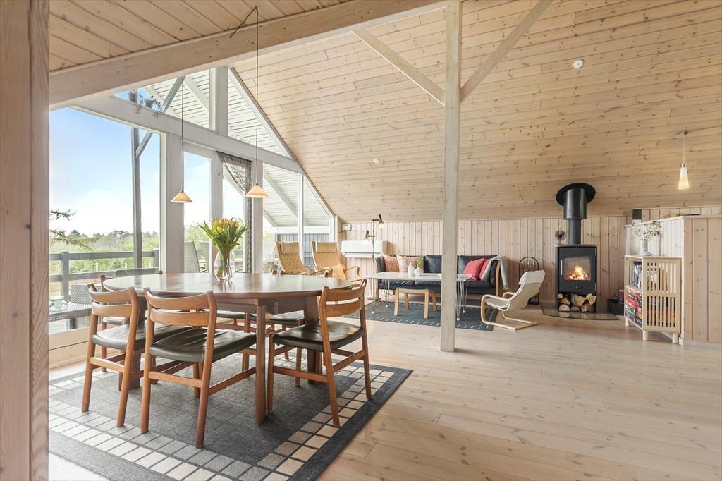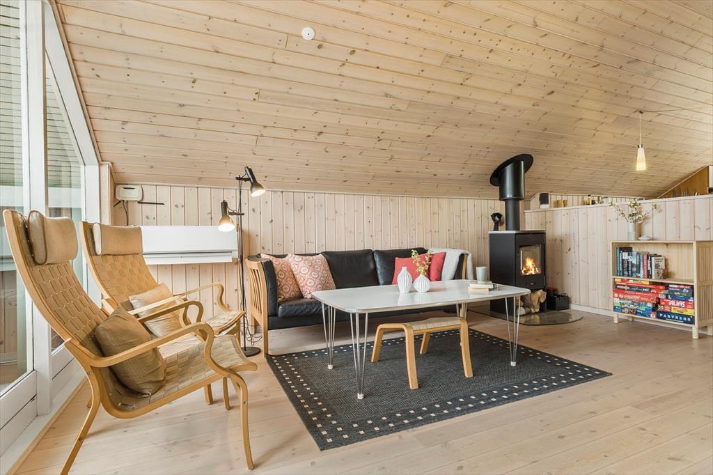 Vakantiehuis in Fjellerup strand og by, Oost-Jutland, met plaats voor 6 volwassenen. De woning heeft een gezellig interieur met o.a. een houtkachel, en beschikt daarnaast over een vaatwasser.