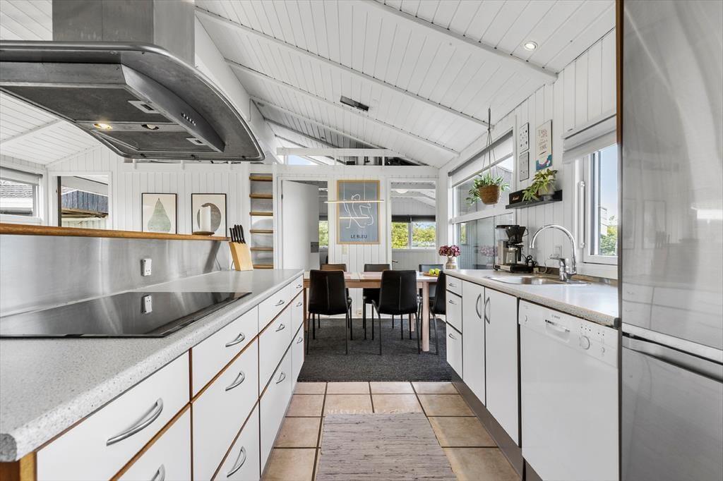 In diesem schönen Ferienhaus ist jedes einzelne Detail auf Gemütlichkeit, Entspannung und Komfort ausgerichtet - zu jeder Jahreszeit. Der Wellnessraum besticht mit einem Pool und einem Whirlpool, sodass du Spaß und Sport mit ruhigen Stunden und echtem Wellnessflair kombinieren kannst. Vom Poolraum gelangst du in ein ansprechendes Badezimmer mit einer Waschsäule. Die ebenfalls im Badezimmer platzierte Sauna verspricht Erholung nach langen Urlaubstagen und an kühlen Abenden. Herzstück deines Mietobjektes ist der helle Aufenthaltsraum, der den Wohnraum, die Küche und den Essbereich offen in sich vereint. Der Wohnraum verwöhnt mit einem Lederecksofa, einem Kaminofen und einem Fernseher. Da die Küche offen mit dem Rest des Aufenthaltsraumes verbunden ist, genießt du selbst während der Zubereitung der täglichen Mahlzeiten die Nähe und Gesellschaft deiner Lieben, die Gesellschaftspiele am Esstisch spielen oder auf dem Sofa kuscheln. Von der Küche und vom Esstisch aus hast du wundervollen Meerblick. Zudem hast du stets deine Kinder im Blick, die im Pool planschen oder auf der Grasfläche herumtollen. Zwei der drei Schlafräume sind mit je einem Doppelbett eingerichtet. Im dritten Schlafraum stehen zwei gute Etagenbetten mit insgesamt vier Schlafplätzen bereit. Zwei zusätzliche Schlafplätze befinden sich auf dem Schlafboden. Da neben dem Badezimmer beim Poolraum ein weiteres Duschbad im Haus vorhanden ist, sind unangenehme Warteschlangen am Morgen und dergleichen nicht zu erwarten. Obwohl das Haus nicht explizit als Aktivitätshaus ausgewiesen ist, kannst du mit deiner Familie in der wärmeren Jahreszeit im Carport Tischtennis spielen. Der Garten bietet zudem viel Platz für Spiele und sonstige unterhaltsame Outdooraktivitäten. Dieses Ferienhaus ist zu jeder Jahreszeit ein wunderbares Urlaubsdomizil, bei dem Spiel, Spaß, Erholung und Entspannung Hand in Hand gehen und in dem du mit deiner Familie den Urlaub ganz nach euren persönlichen Vorlieben und in eurem ganz eigenen Tempo gestalten kannst.
