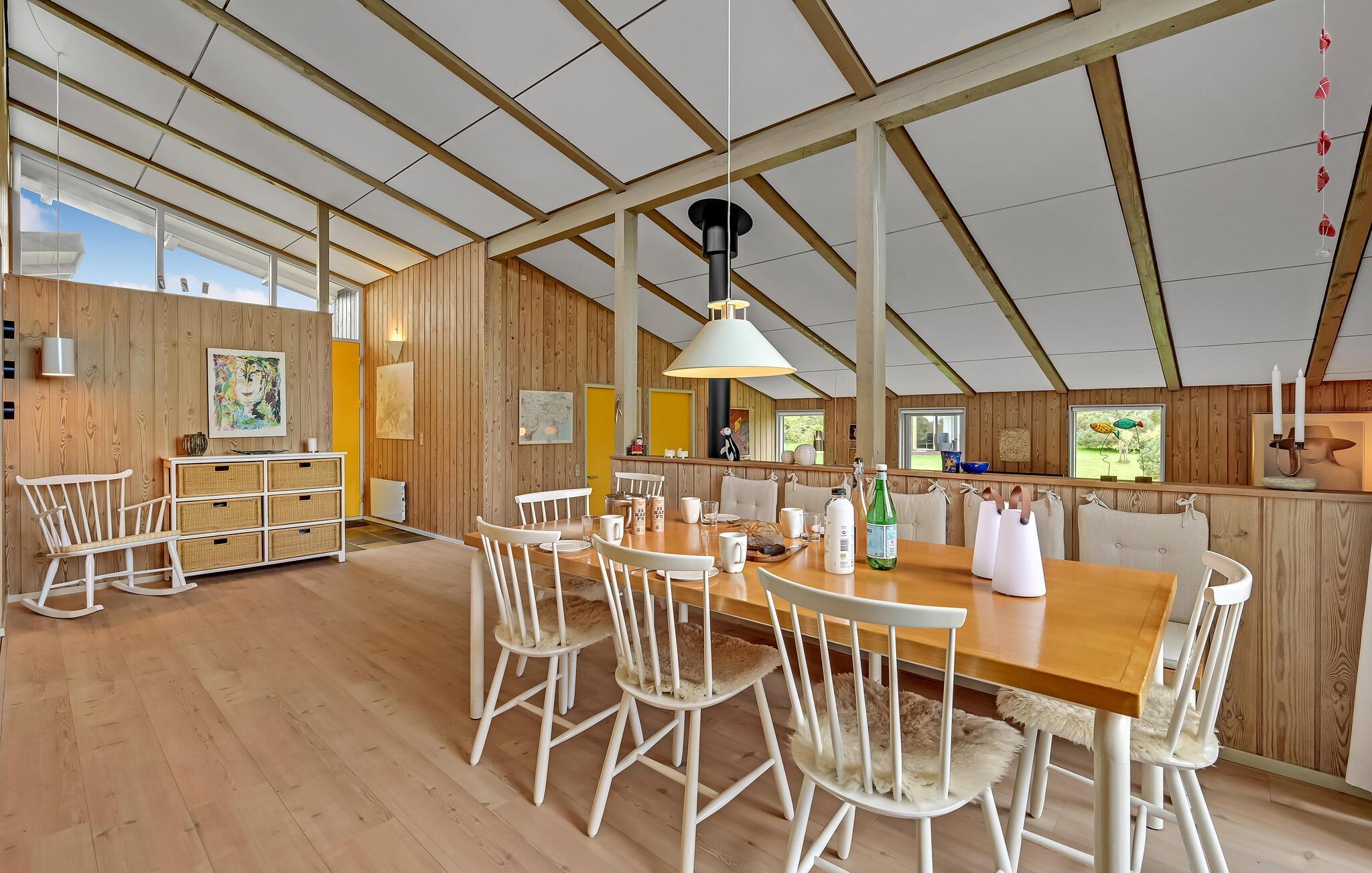 Op slechts 150 m van het mooie zandstrand vindt u dit ruime vakantiehuis met voldoende ruimte voor een groot gezin. Het lichte, moderne interieur wordt gekenmerkt door de houten wanden en vele, mooie details en maakt een zeer aansprekende indruk. Breng vele gezellige uren door met uw geliefden in de smaakvolle, ontspannen sfeer van het huis.