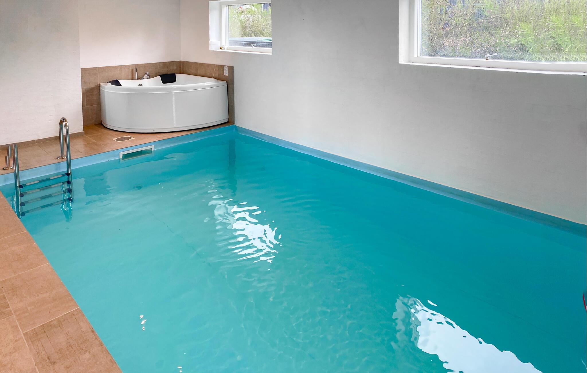 Ruim modern vakantiehuis in Skovgårde met wellness, binnenzwembad en zeezicht, perfect voor ontspannen en samen zijn.