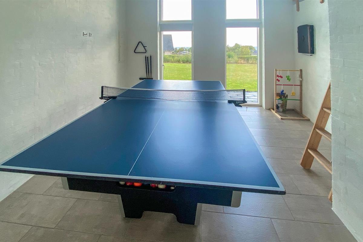Je vakantiehuis is een echte blikvanger van buiten. Maar ook binnen heeft het veel te bieden. Stap binnen en laat je inspireren door de lichtovergoten woonkamer. Ontspan op de grote bank terwijl de kinderen tafeltennissen in de activiteitenruimte. Bereid je maaltijden in de moderne keuken met kookeiland en neem plaats aan de lange eettafel, die genoeg ruimte biedt voor iedereen. Verheug je op puur plezier en wellness met een sauna, whirlpool en binnenzwembad.