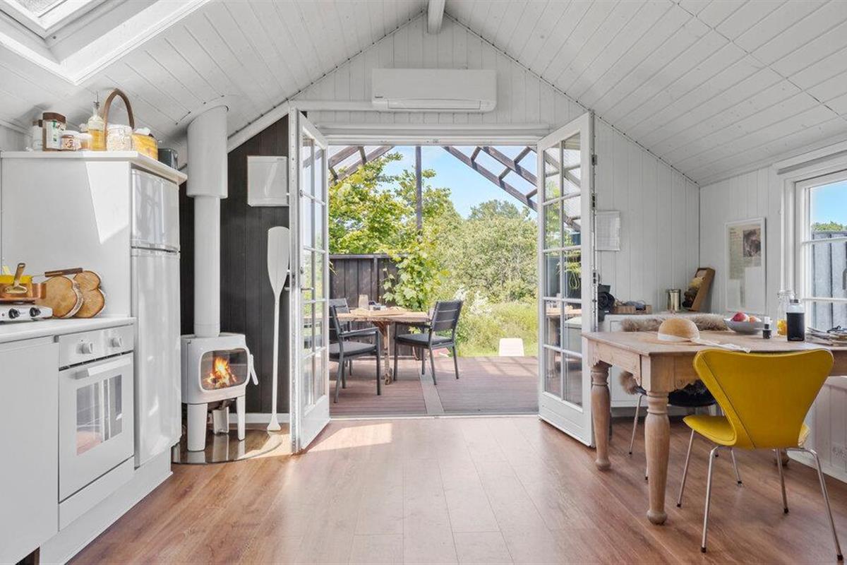 Het kindvriendelijke Skovgårde strand ligt op loopafstand, ideaal voor een ochtendduik of een wandeling langs het water. Verken het platteland op de fiets of bezoek de gezellige stadjes Bønnerup en Fjellerup. Voor gezinnen is een uitstapje naar het dierenpark Skandinavisk Dyrepark of het populaire attractiepark Djurs Sommerland de moeite waard. Het natuurreservaat Mols Bjerge ligt ook binnen handbereik en nodigt uit tot wandelen.