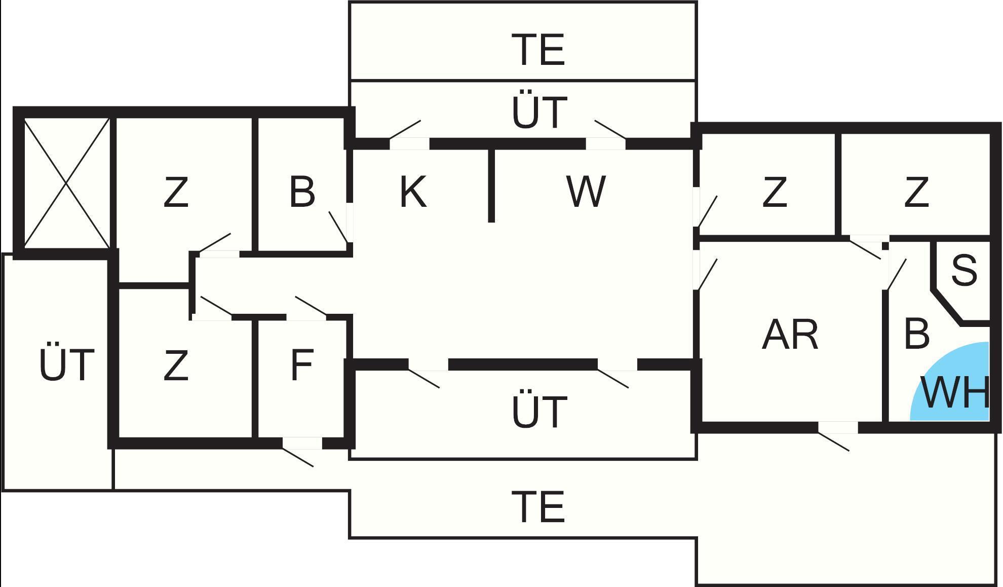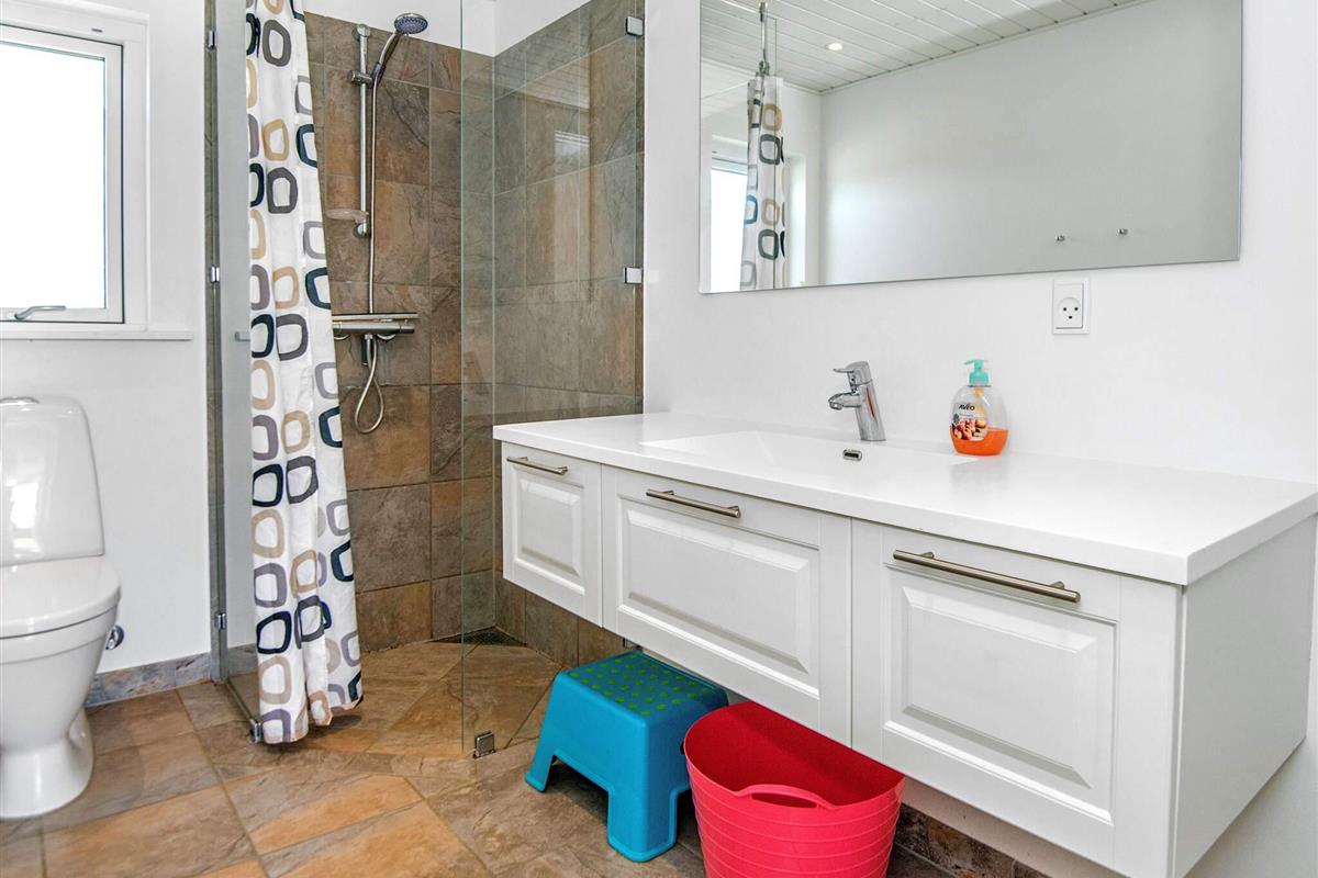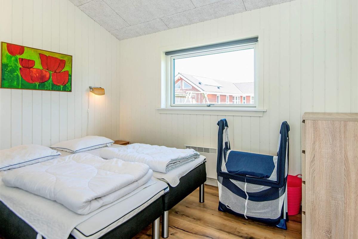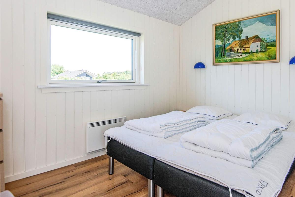 Das geräumige Ferienhaus bietet ausreichend Platz und Raum für einen Mehrfamilienurlaub. Es gibt zwei separate Schlafbereiche mit jeweils zwei Schlafzimmern an je einem Hausende, eine ideale Aufteilung für zwei Familien. Die beiden Schlafbereiche verfügen jeweils über ein eigenes Bad, von denen eines auch mit Whirlpool und Sauna ausgestattet ist. Insgesamt stehen im Haus 12 Schlafplätze zur Auswahl, verteilt auf vier Schlafzimmer mit jeweils einem Doppelbett sowie zwei Hemse oben unter der Dachschräge mit jeweils zwei Schlafmöglichkeiten. Bitte beachten Sie, dass die beiden Hemse sich am besten für Kinder eignen.