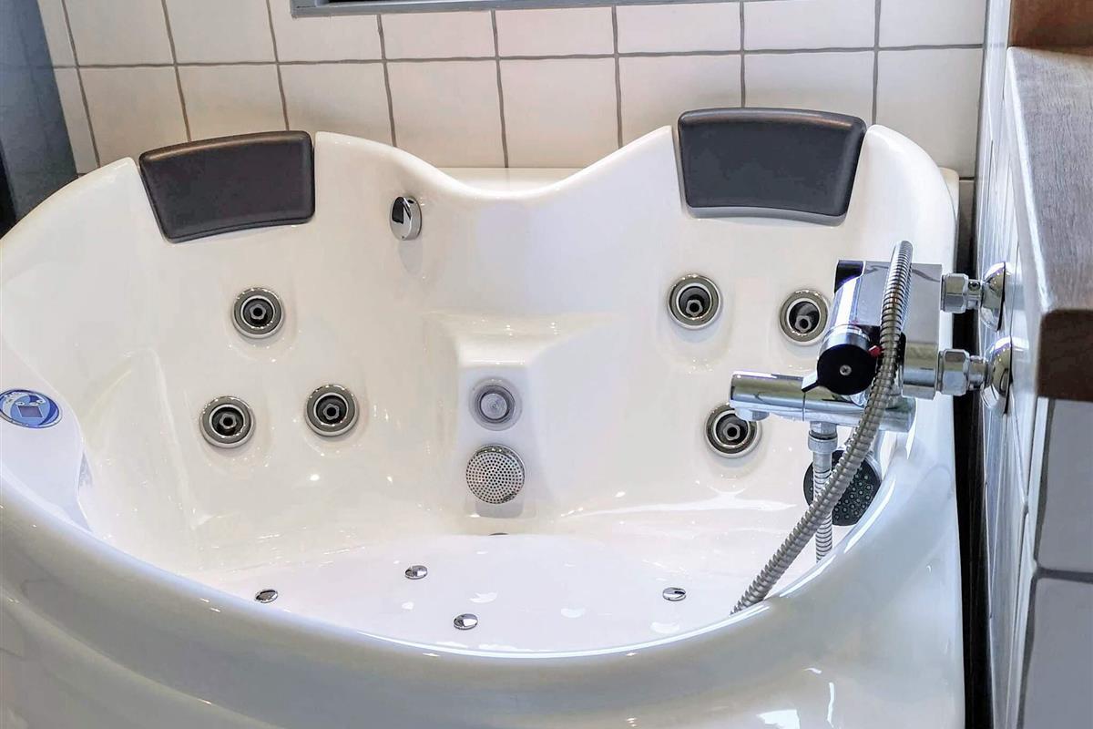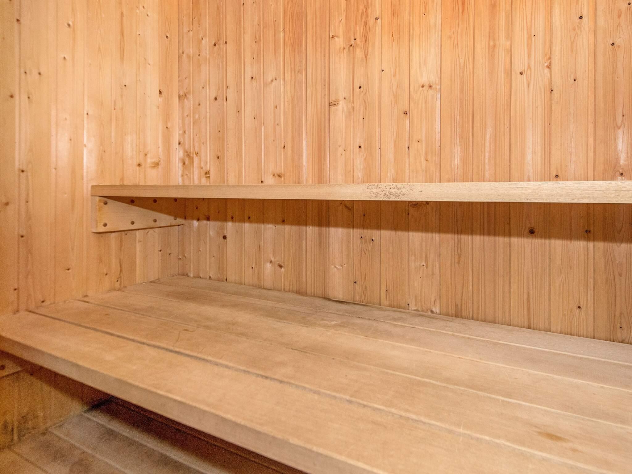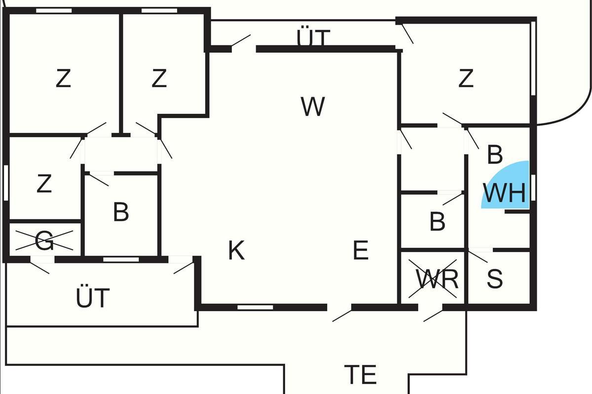 Das Ferienhaus bietet Platz für bis zu 7 Personen. Es gibt je einen Schlafbereich an jedem Hausende: der erste ist mit einem Schlafzimmer mit Doppelbett, einem großen Bad mit Whirlpool und Sauna sowie einem Gäste-WC ausgestattet, der andere mit drei Schlafzimmern und einem Bad mit Dusche. Das große Badezimmer ist mit angenehmer Fußbodenheizung ausgestattet. In der Mitte verbindet der geräumige Küchen-/Wohnbereich für das Familienleben beide Bereiche.