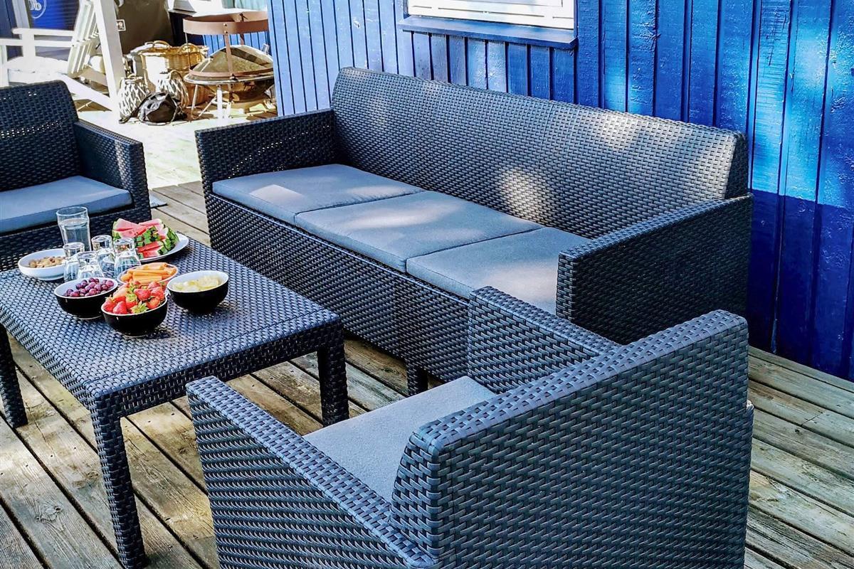 Zur umfassenden, technischen Ausstattung des Hauses gehören WLAN, TV mit Chromecast zum Streamen sowie Geschirrspüler, Waschmaschine, Wäschetrockner und eine energieeffiziente Wärmepumpe. Genießen Sie alle Annehnlichkeiten und entspannen Sie sich zudem draußen auf einer der großen Terrassen, die das Haus umgeben. Insgesamt stehen 85 m2 Terrassenfläche zur Verfügung, etwa 10 m2 davon sind überdacht. Für Sonnentage stehen schöne Gartenmöbel zur Verfügung. Auf der überdachten Terrasse besteht die Möglichkeit zum Grillen und es gibt eine Kühlbox für Getränke. Auf der gewöhnlichen Terrasse gibt es ein Lounge-Set, einen Esstisch, eine Sonnenliege und eine Kissenbox.
