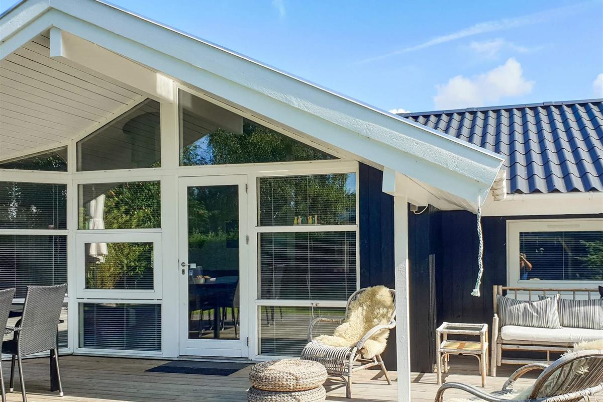 Draußen lädt die große Terrasse zum gemeinsamen Essen, Grillen oder einfach zum Entspannen und Genießen der ruhigen Umgebung ein. Der Sandstrand von Skovmose, der als einer der schönsten auf Als gilt, ist nur einen kurzen Spaziergang entfernt. Dieses Haus ist daher der ideale Ausgangspunkt für Strandtage, Spaziergänge in der Natur und Familienabenteuer.