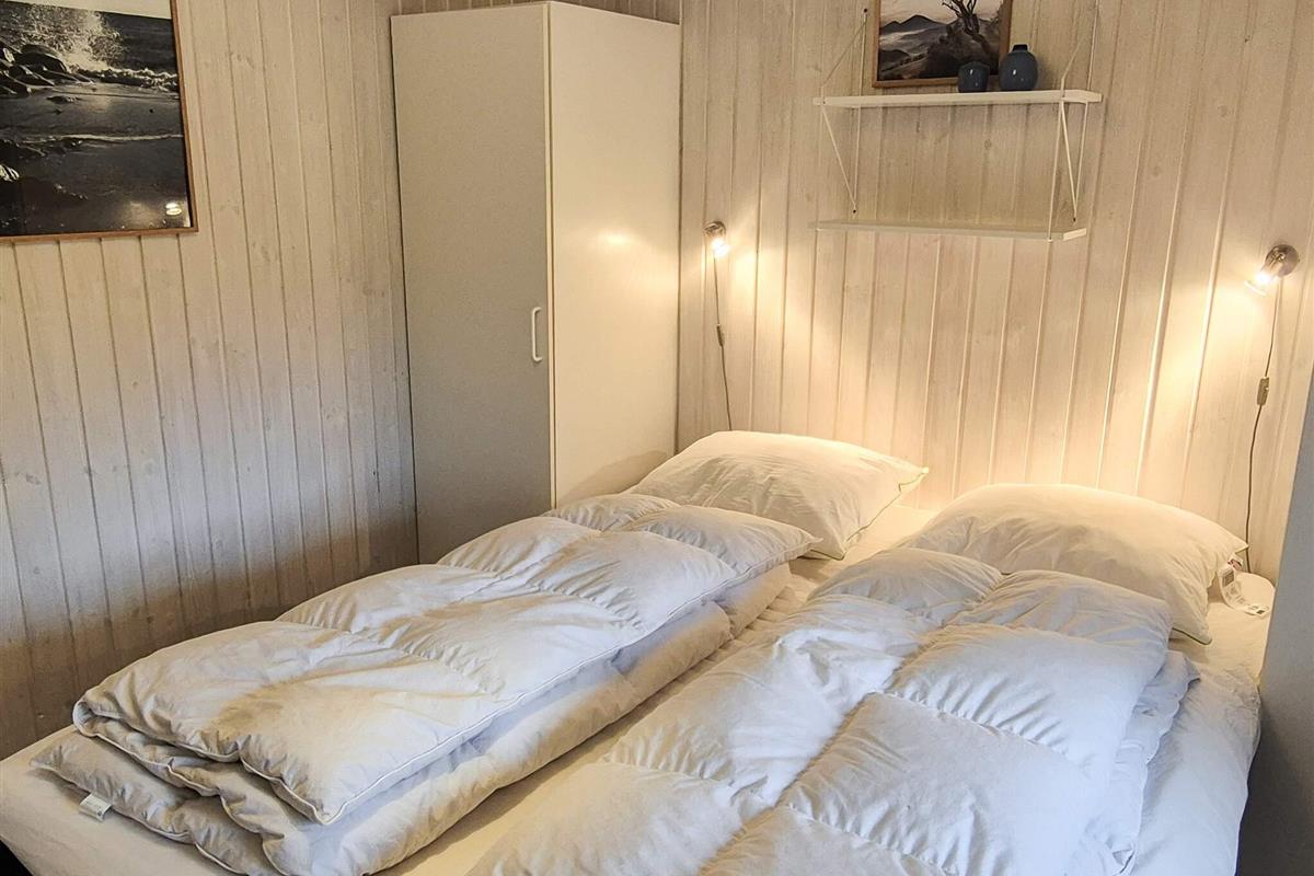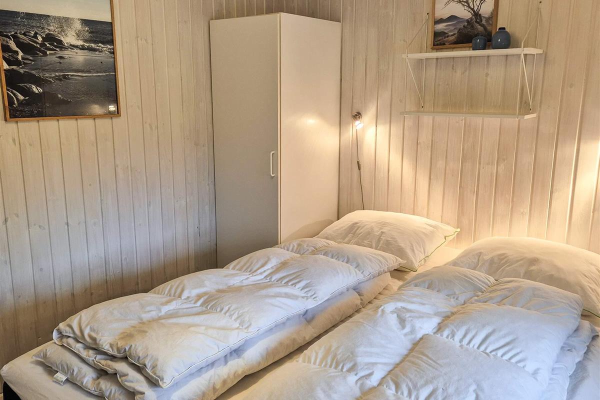 Das Herzstück des Hauses ist der offene Küchen- und Wohnbereich mit Essbereich und gemütlicher Sitzecke. Ein Holzofen sorgt an kühleren Abenden für Wärme und Charme, während große Fenster und der direkte Zugang zur geräumigen Terrasse für viel Tageslicht sorgen. Das Haus verfügt über drei komfortable Schlafzimmer und eine Schlafnische im Wohnzimmer – ein beliebter Ort für Kinder, die ihre eigene gemütliche Ecke genießen möchten. Das Badezimmer verfügt über Fußbodenheizung, Whirlpool und Sauna – ideal zum Entspannen nach einem Tag im Freien.
