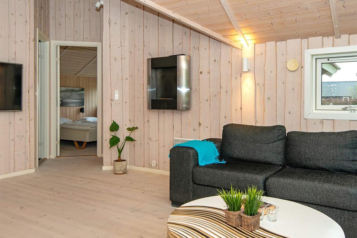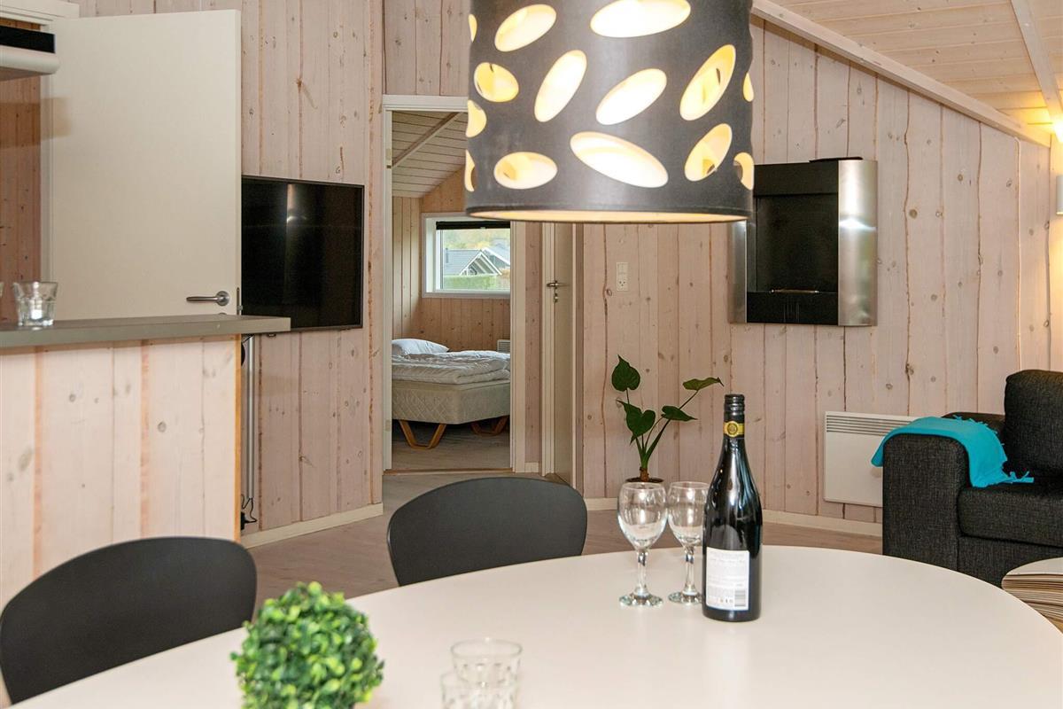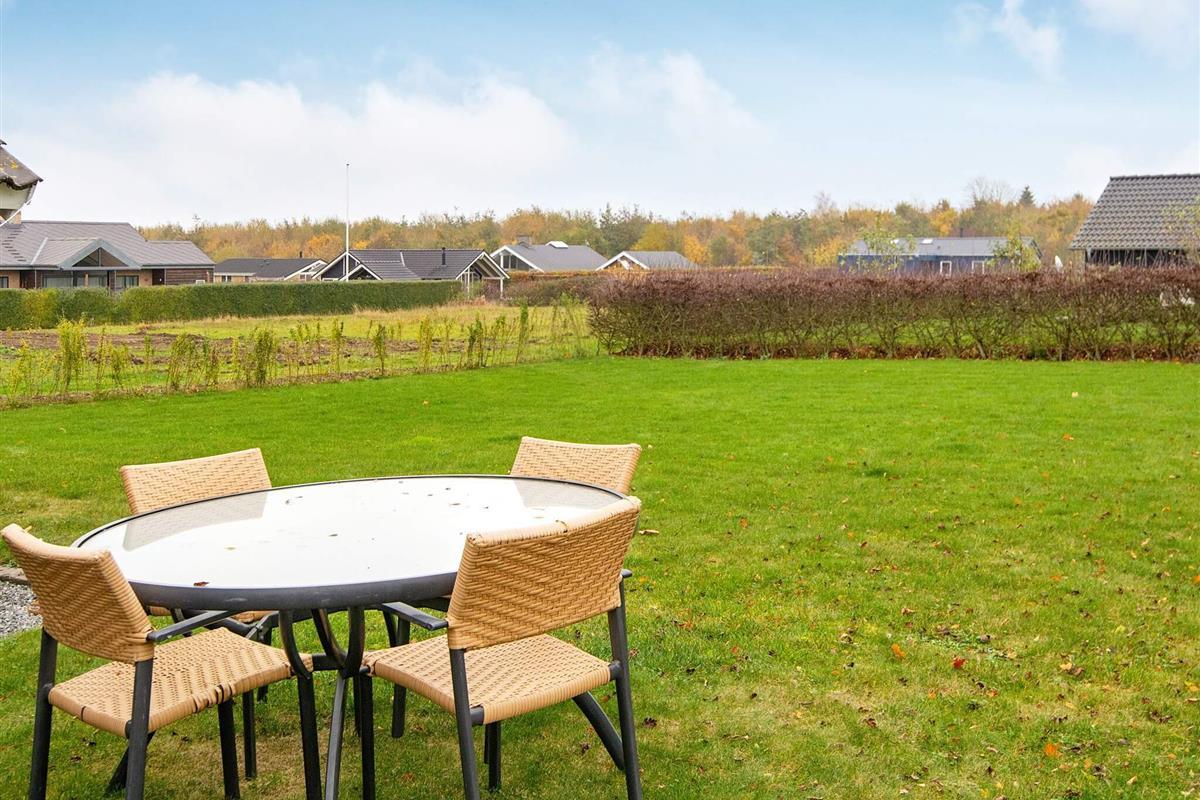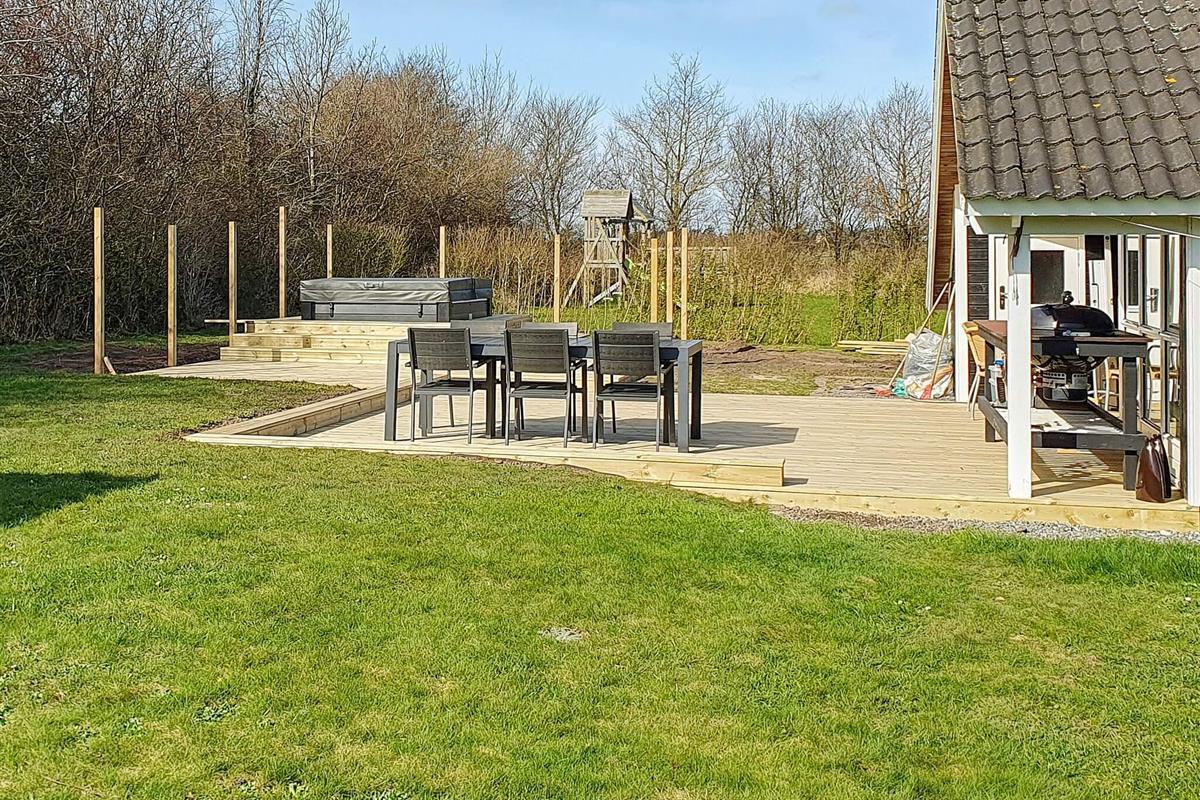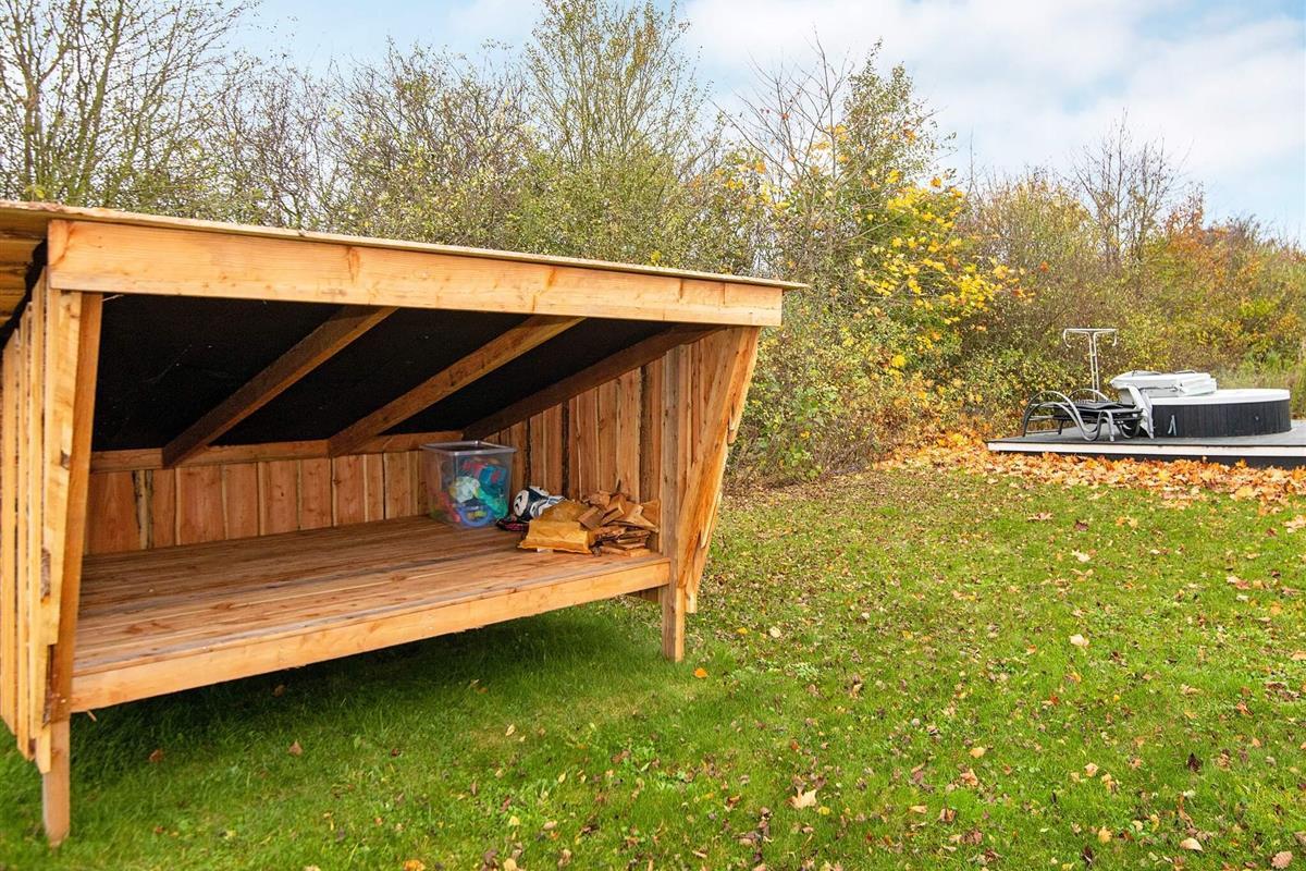 Dieses moderne Ferienhaus mit privatem Außenwhirlpool bietet einen erholsamen Rückzugsort in ruhiger Lage. Am Ende einer ruhigen Straße in einem Ferienhausgebiet gelegen, bietet es einen wunderschönen Blick auf die grüne Umgebung und vermittelt ein Gefühl von Privatsphäre und Ruhe. Das Anwesen verfügt über einen einzigartigen Unterstand im Freien, der Platz für bis zu vier Personen bietet – ideal für gemütliche Abende unter freiem Himmel oder ein vergnügliches Campingerlebnis direkt im Garten. Der Sandstrand von Skovmose ist nur einen Katzensprung entfernt und somit die ideale Wahl für Strandliebhaber.