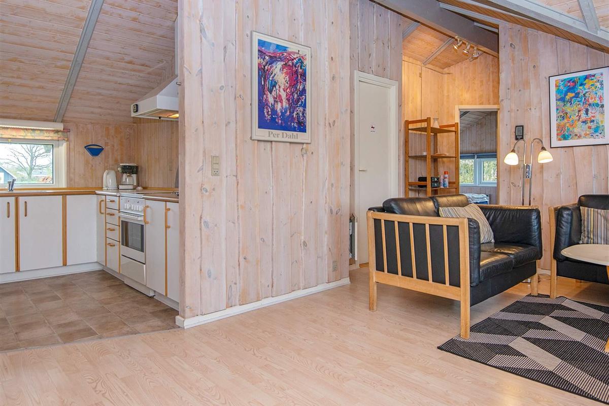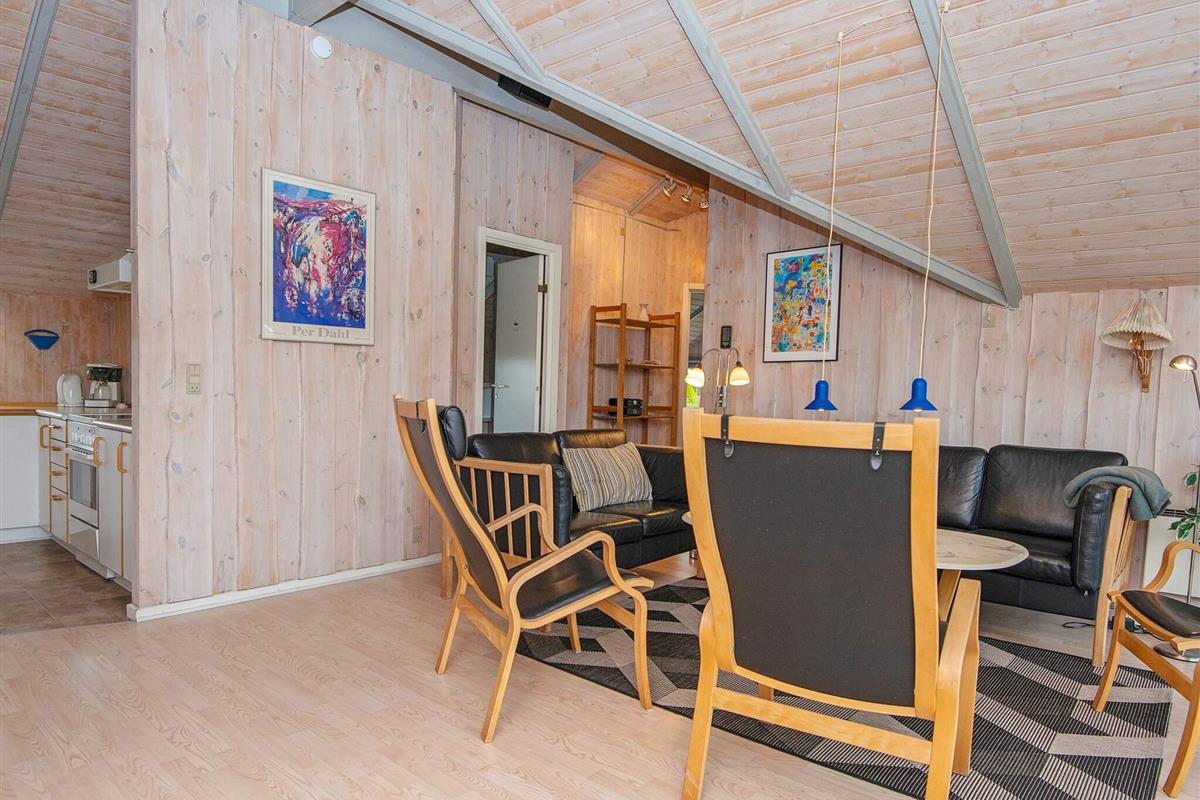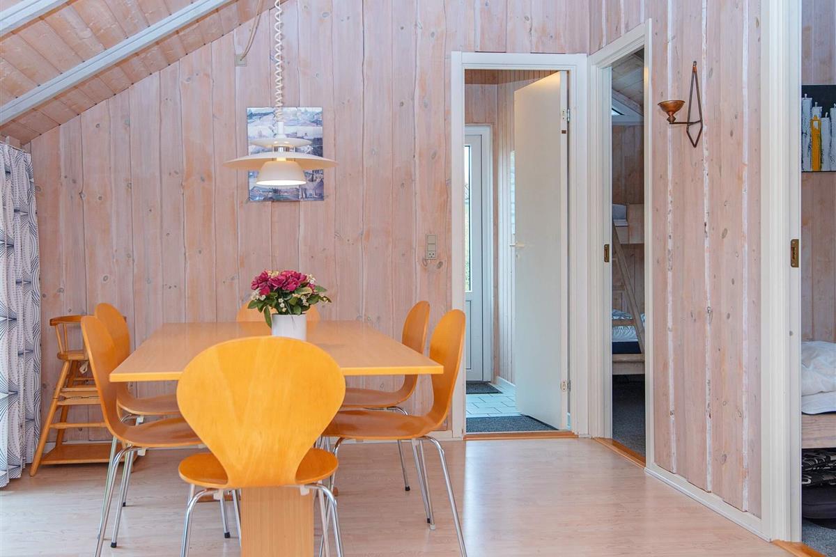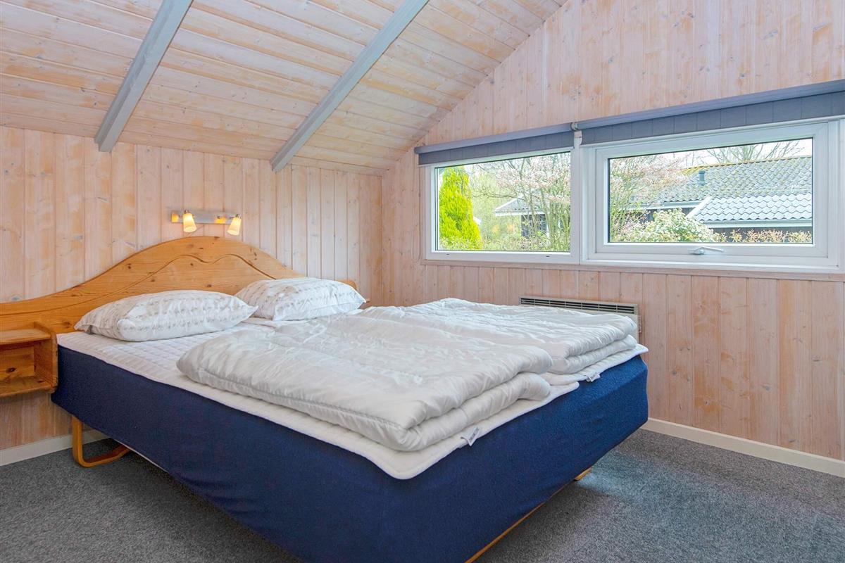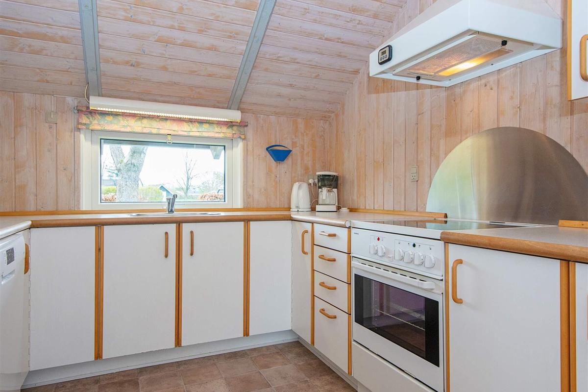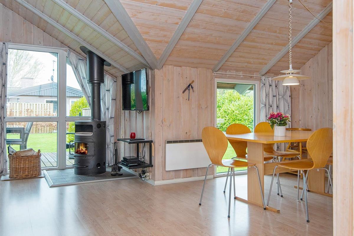 Das Ferienhaus hat einen praktischen Hauswirtschaftsraum mit Waschmaschine und Wäschetrockner, ein Badezimmer mit Whirlpool und eine gut ausgestattete Küche mit Geschirrspüler. Außerdem gibt es ein Wohn- und Esszimmer mit Holzofen und Zugang zur Terrasse. Es stehen insgesamt 4 Schlafzimmer zur Auswahl; zwei Zimmer mit je einem Doppelbett, ein Zimmer mit einem Einzelbett und ein Zimmer mit einem kombinierten Doppelbett mit Einzelkoje darüber.