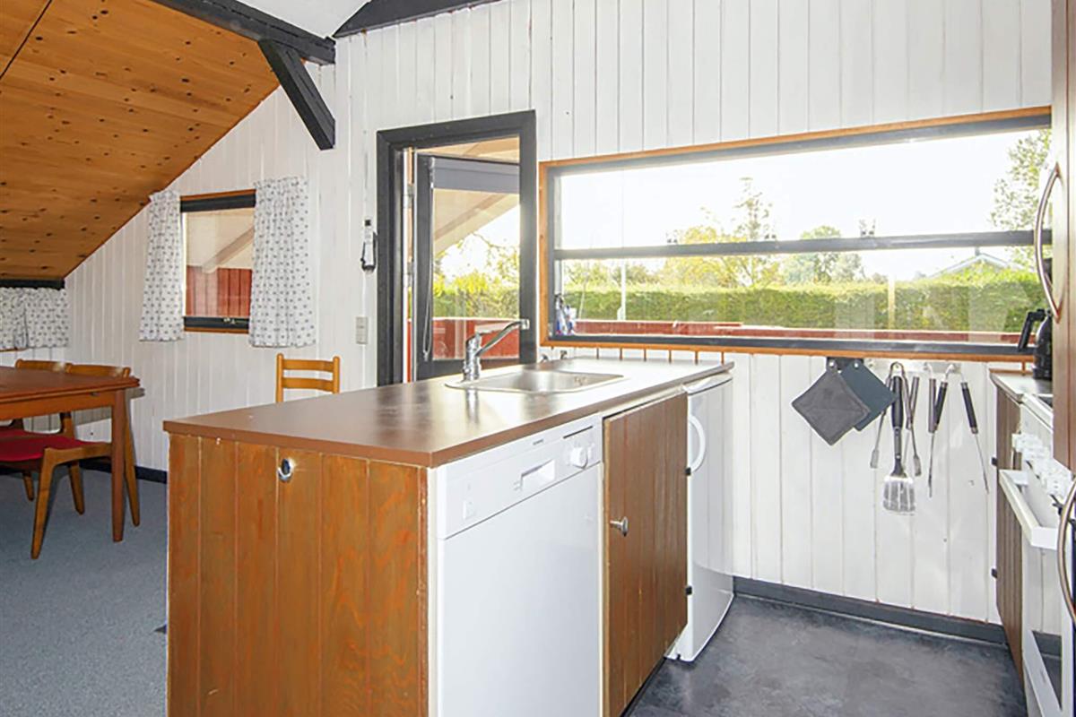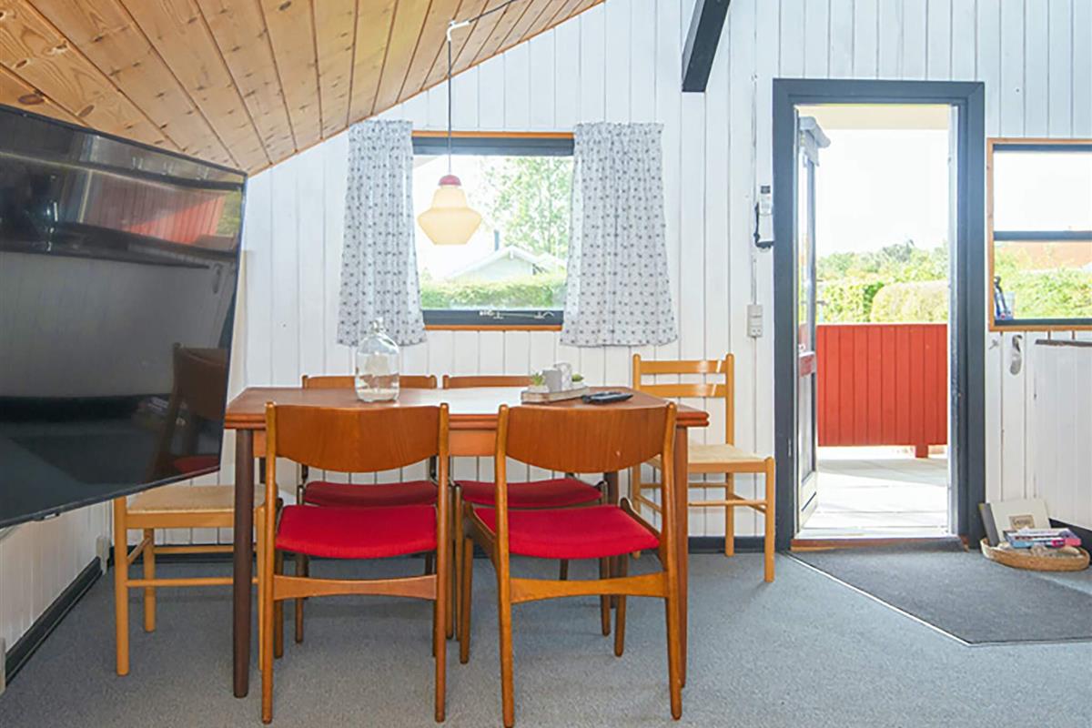 Ein traditionelles dänisches Ferienhaus im gemütlichen Stil, mit komfortabler Einrichtung und insgesamt sehr gepflegt. Offener Küchen-/Wohnbereich für das Familienleben mit Ess- und Sitzecke, Dachschrägen, Sichtbalken und Dachfenstern. Das Wohnzimmer hat direkten Zugang zu einer wunderschönen, überdachten Westterrasse.