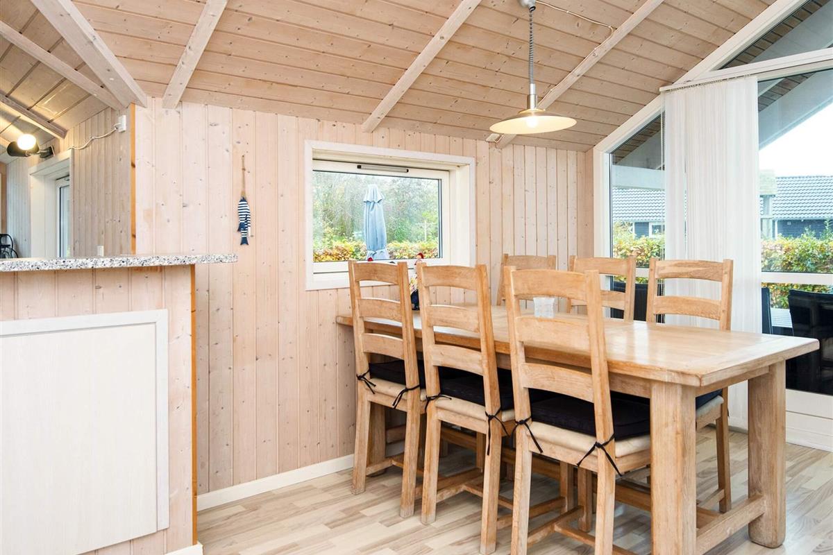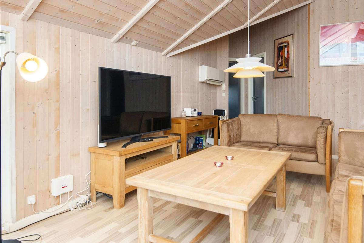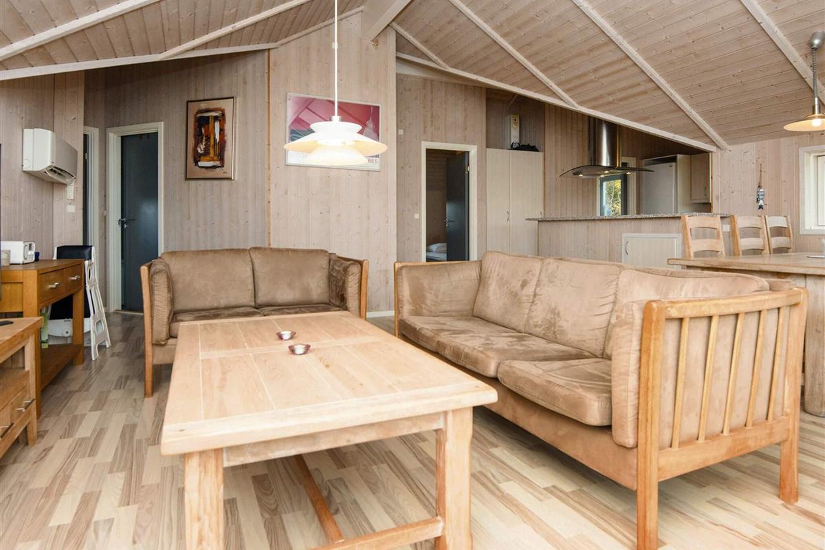Genießen Sie den Urlaub in diesem hellen und gut eingerichteten Ferienhaus mit einem großen Wohnzimmer in offener Verbindung zur Küche. Vom Wohnzimmer aus haben Sie direkten Zugang zum Garten und zur überdachten Terrasse, wo Sie Ihr Abendessen grillen können.
