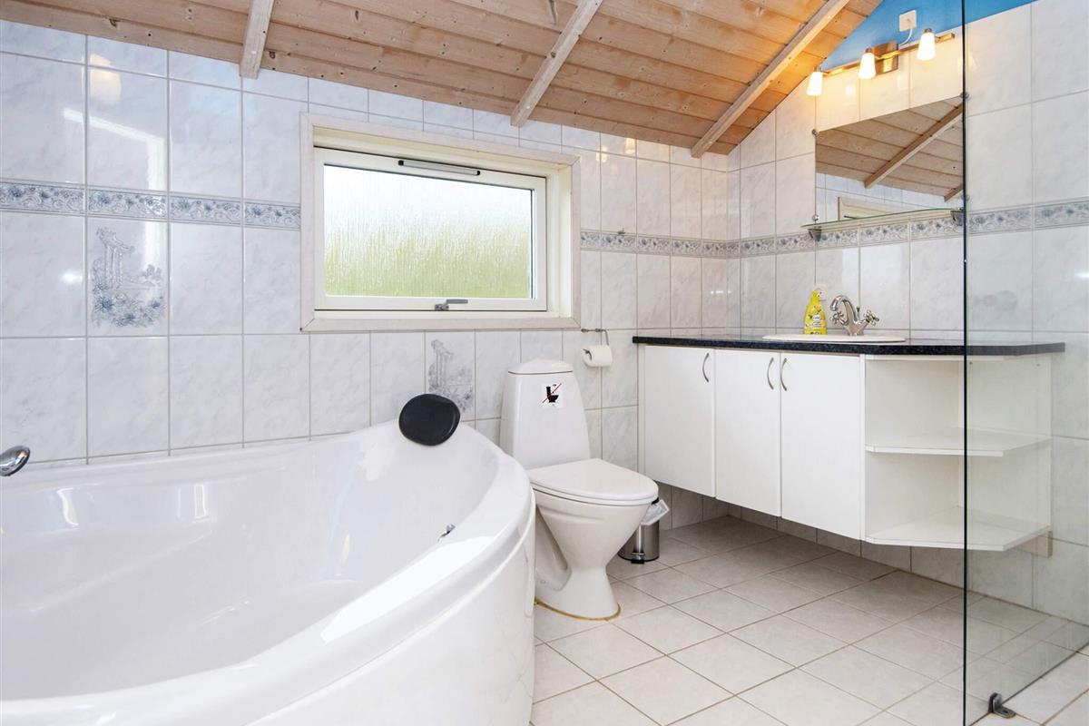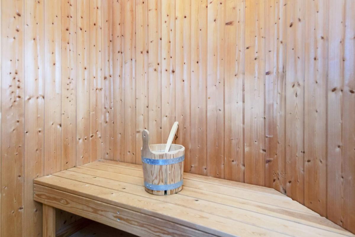 Im großen Badezimmer gibt es eine Badewanne und eine Sauna, die nach einem Bad am schönen Strand, der nur wenige Gehminuten entfernt ist, genutzt werden können.