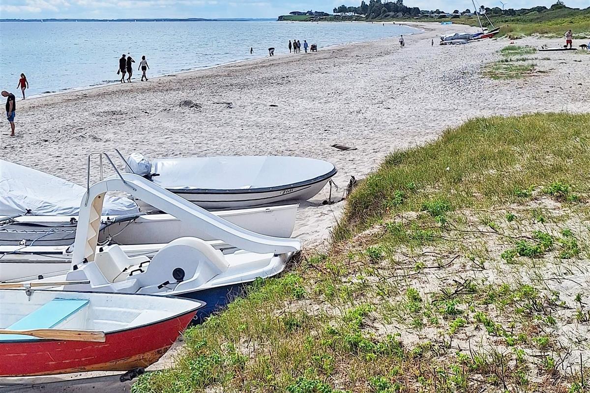 Bei Skovmose, nicht weit von der dänisch-deutschen Grenze entfernt, finden Sie dieses Ferienhaus, das vorne in allererster Reihe mit direktem Blick auf das Meer steht. Das Ferienhaus liegt in einem beliebten Ferienhausgebiet direkt am kinderfreundlichen Strand.