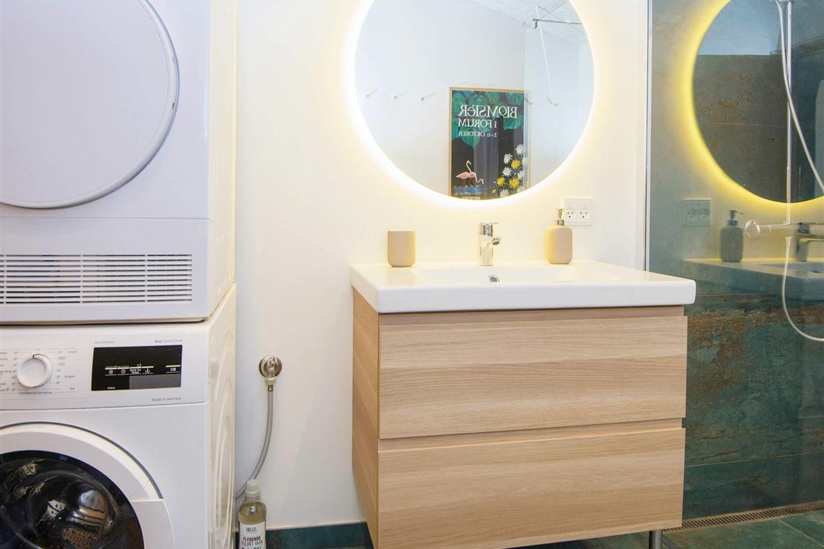 Bad: Waschm, Trockner, WC, Waschb., Dusche