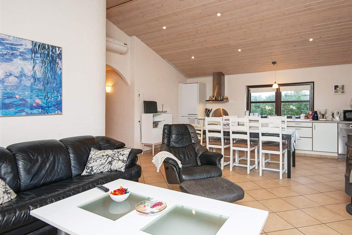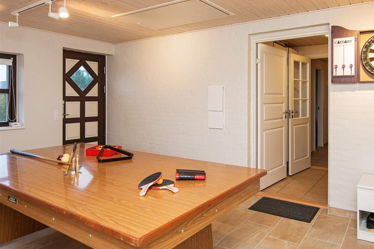Dieses Ferienhaus mit Whirlpool und Sauna liegt im beliebten Ferienhausgebiet Skovmose. Es ist gemütlich und praktisch eingerichtet, so dass Sie sich gleich wohlfühlen werden. In der Wohnküche, mit hohen Decken, hellen Wänden und vielen Fenstern, kann die Familie gemeinsame Pläne für die Urlaubstage schmieden. Am anderen Ende des Hauses liegt der Aktivitätsraum, in dem Sie Billard und, mittels einer aufgelegten Platte, auch Tischtennis spielen können. Im Schlafzimmer mit Kojenbetten steht eine PlayStation2 zur Verfügung. Für Entspannung und Erholung sorgen Whirlpool und Sauna im großen Badezimmer. Außerdem können Sie es sich auf der teilweise überdachten Terrasse bequem machen, während die Kinder Ball oder andere Spiele im Garten spielen. Es ist nicht weit zum kinderfreundlichen Strand und auch Angler kommen in der Region auf ihre Kosten.