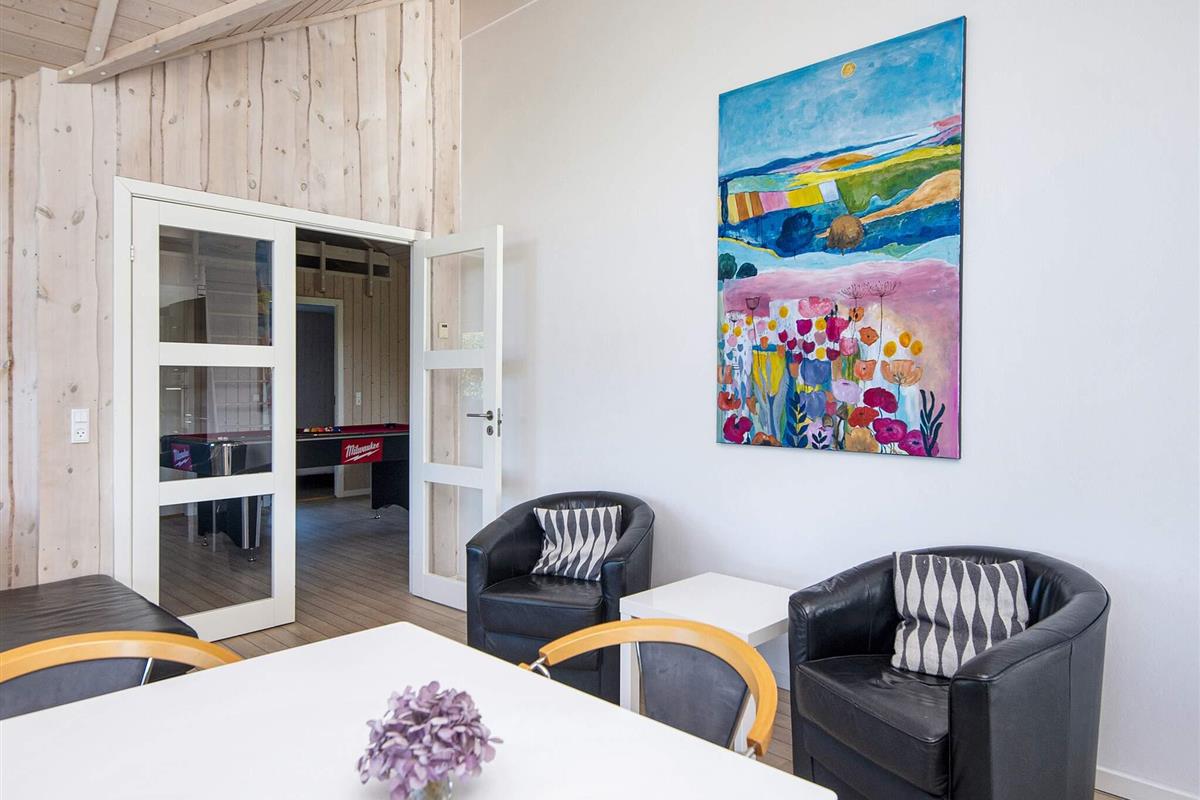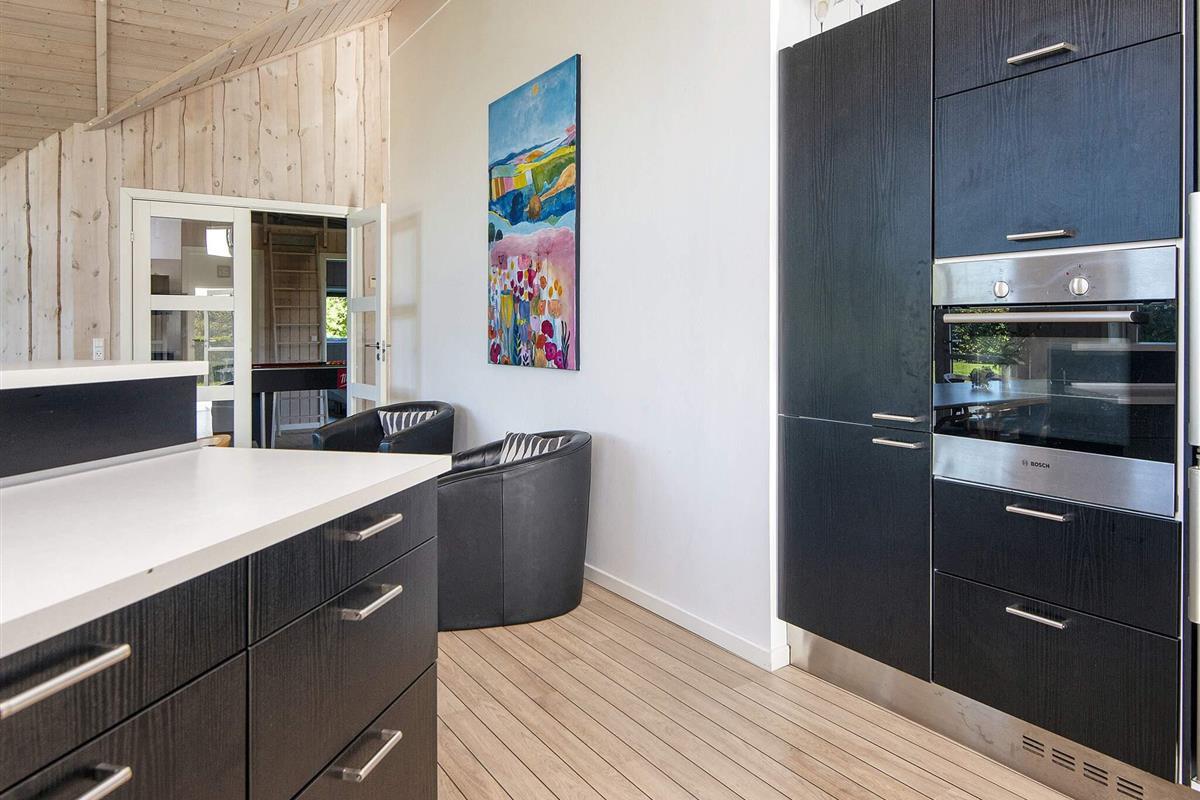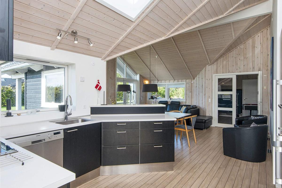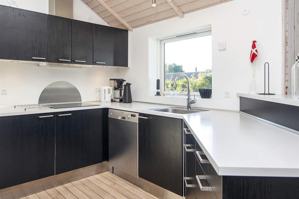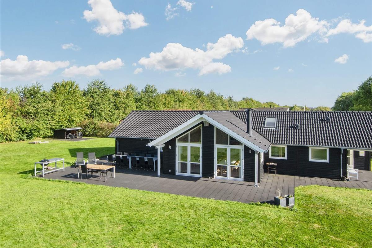 Dieses Aktivitätsferienhaus bietet gute Entfaltungsmöglichkeiten für die ganze Familie. Das Haus liegt auf einem großen Grundstück, in dem Gebiet Skomose, wo der Strand sowohl aus Bereichen mit Sand und kleinen Steinen besteht. Mit vier Schlafzimmern mit je zwei Betten und einem Schlafboden mit zwei Schlafplätzen bietet das Haus insgesamt Platz für 10 Personen. Das Haus wurde in hellen Farben und mit einer guten Raumaufteilung eingerichtet. Es gibt einen Holzofen und eine große, teils überdachte Terrasse, wo Sie schöne Stunden im Freien genießen können. Vom 1. Mai bis 1. Oktober hat ein Kaufladen ca. 500 m vom Haus geöffnet.