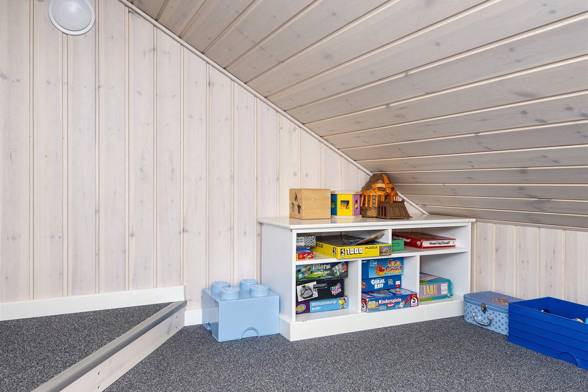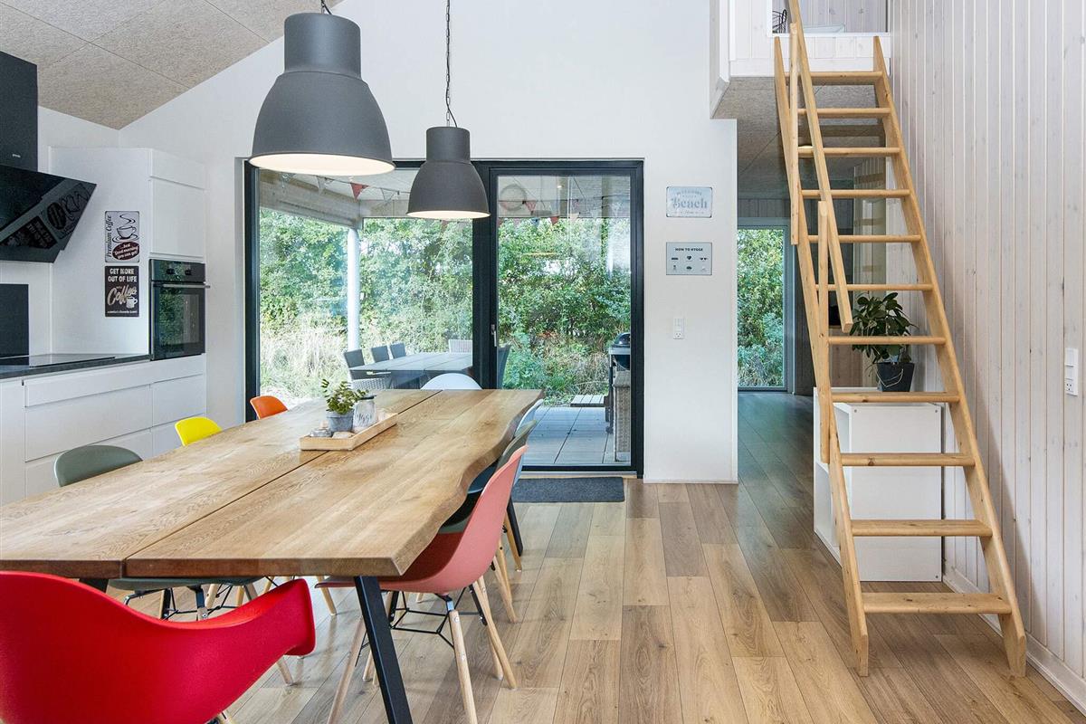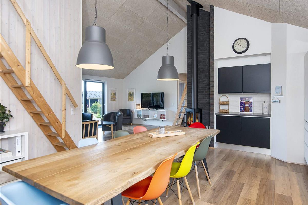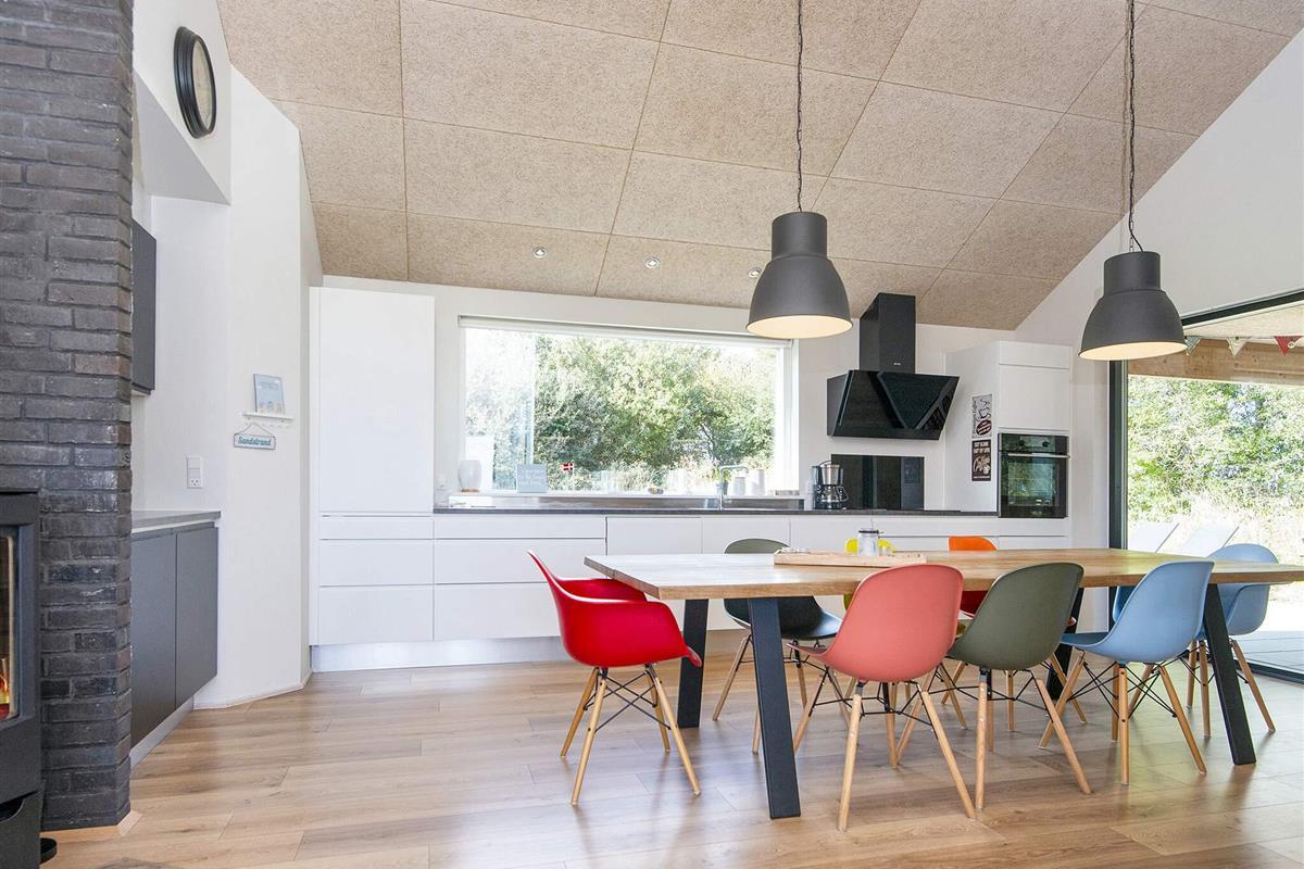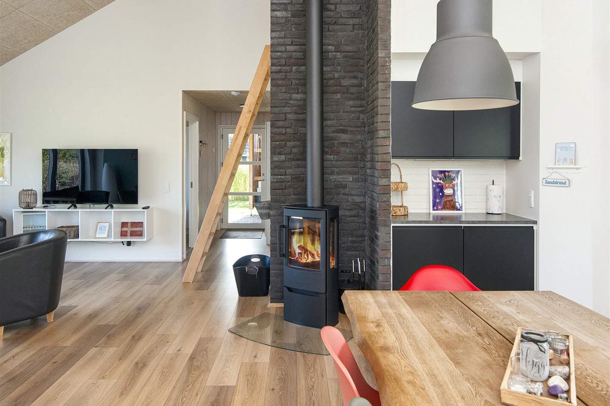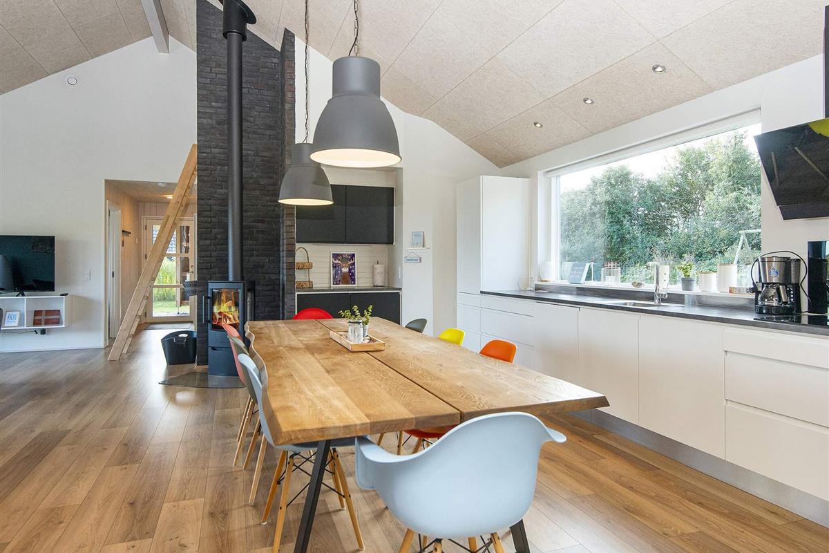 Die moderne und gut ausgestattete Küche des Ferienhauses ist zum Ess- und Wohnbereich hin offen. Es gibt sowohl eine klimafreundliche Wärmepumpe als auch einen gemütlichen Holzofen, den Sie beispielsweise an kühleren Abenden nutzen können. Auch an die jüngsten Familienmitglieder wurde gedacht: Sie finden einen eigenen Bereich mit Fernseher und können sich auf den Dachböden des Hauses ausbreiten. Das große Grundstück bietet außerdem einige Spielgeräte und viel Platz für Ballspiele etc.