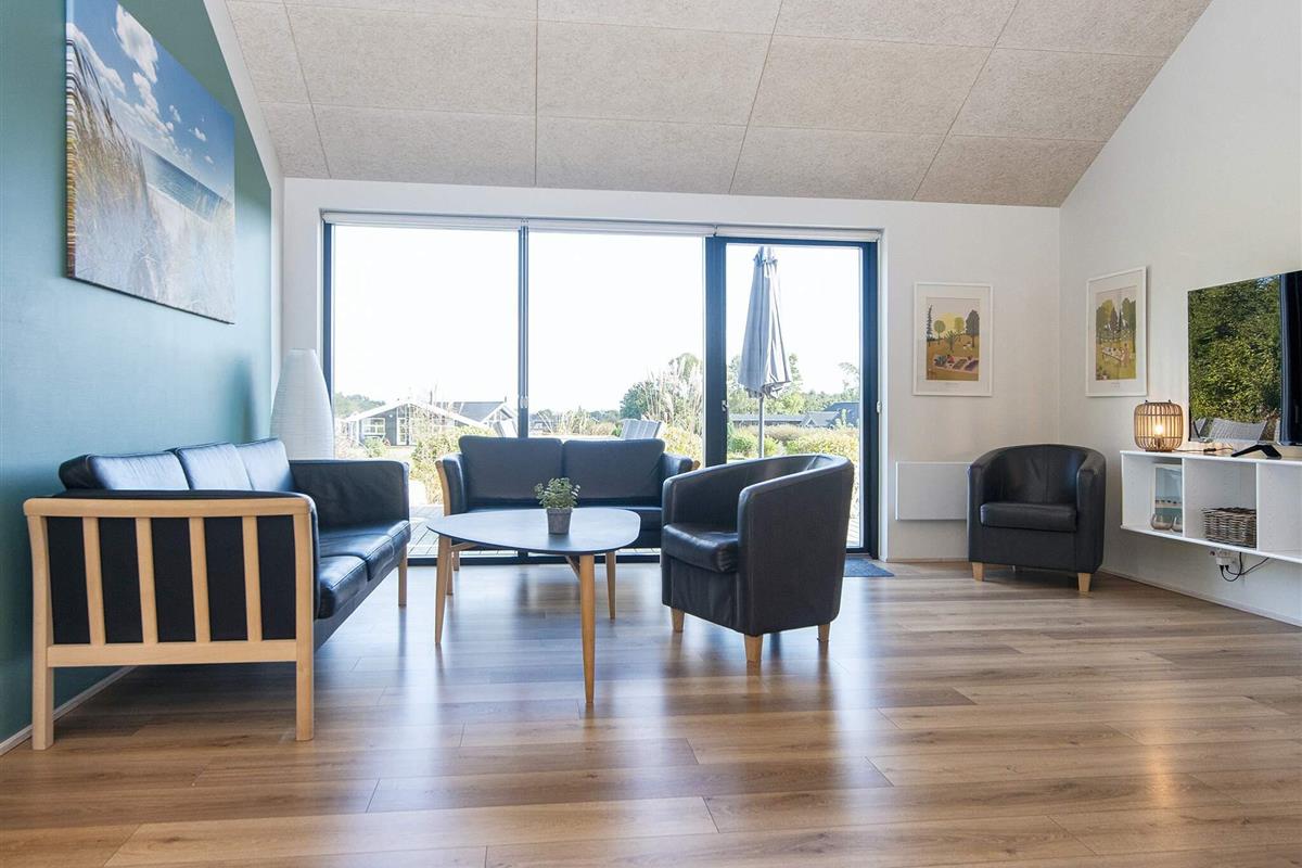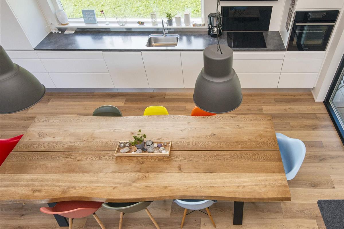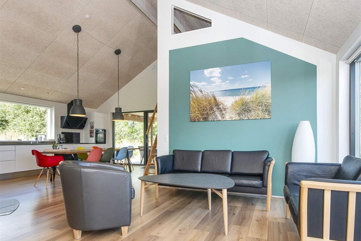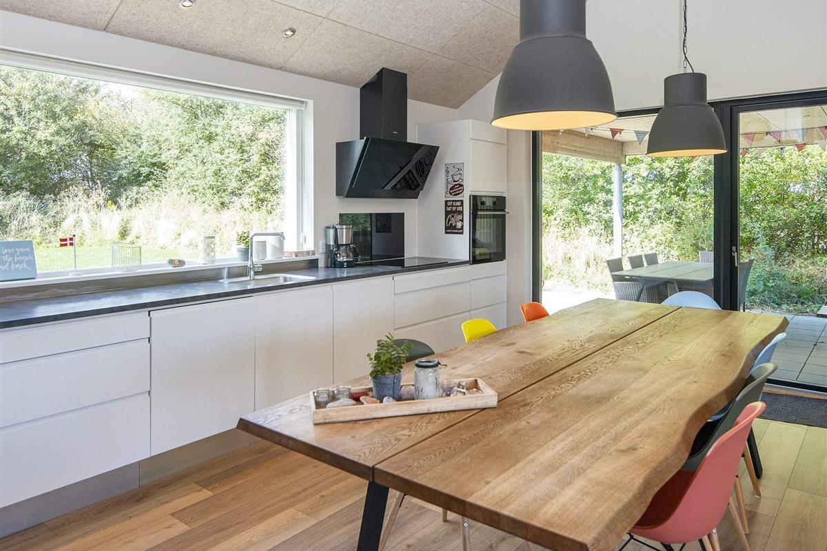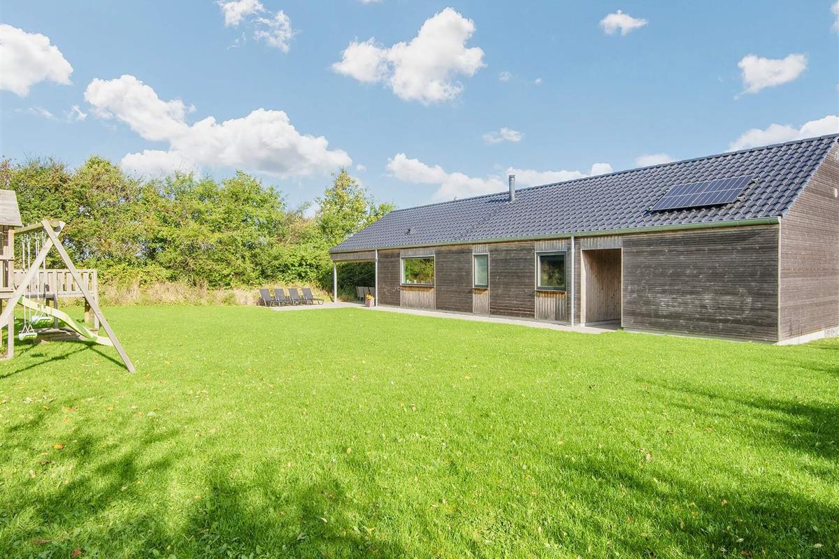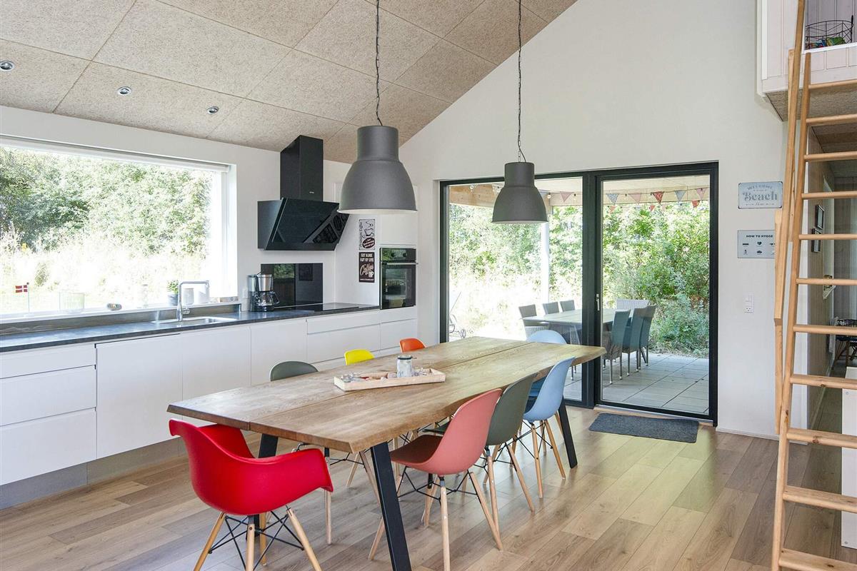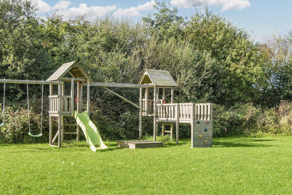 Die moderne und gut ausgestattete Küche des Ferienhauses ist zum Ess- und Wohnbereich hin offen. Es gibt sowohl eine klimafreundliche Wärmepumpe als auch einen gemütlichen Holzofen, den Sie beispielsweise an kühleren Abenden nutzen können. Auch an die jüngsten Familienmitglieder wurde gedacht: Sie finden einen eigenen Bereich mit Fernseher und können sich auf den Dachböden des Hauses ausbreiten. Das große Grundstück bietet außerdem einige Spielgeräte und viel Platz für Ballspiele etc.
