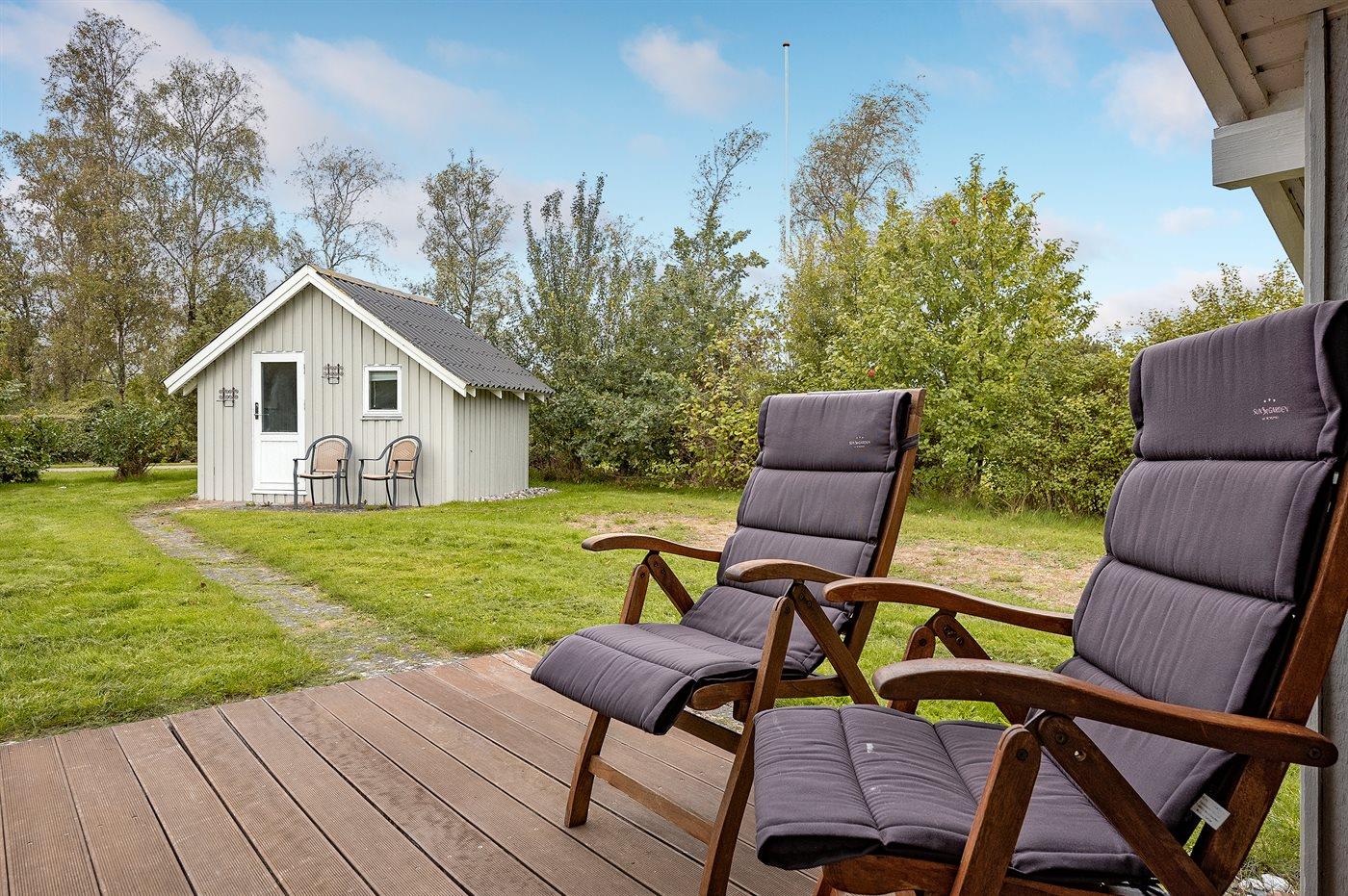 De vakantiewoning is gelegen op een 950 m² groot aangelegde tuin. Afstand tot de zee 300 m. Dichtstbijzijnde winkel 500 m. Bij de vakantiewoning hoort 140 m² terras. Carport ter beschikking. Parkeerplaats bij het huis.