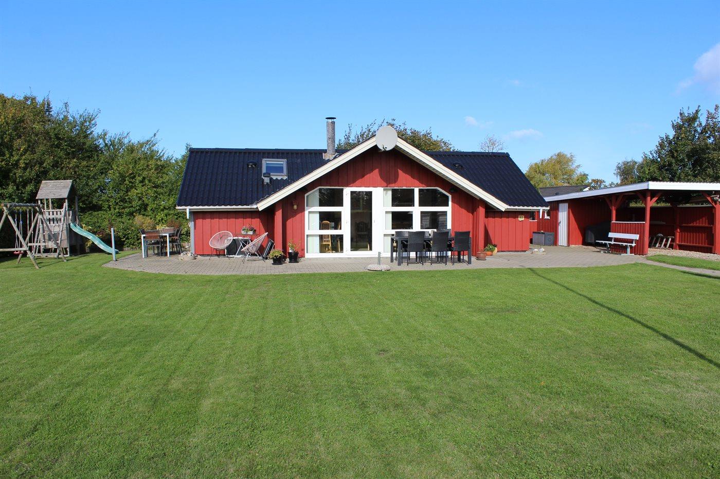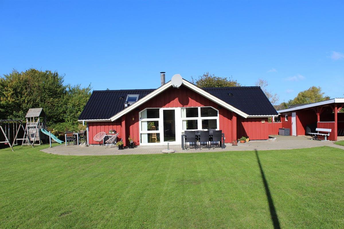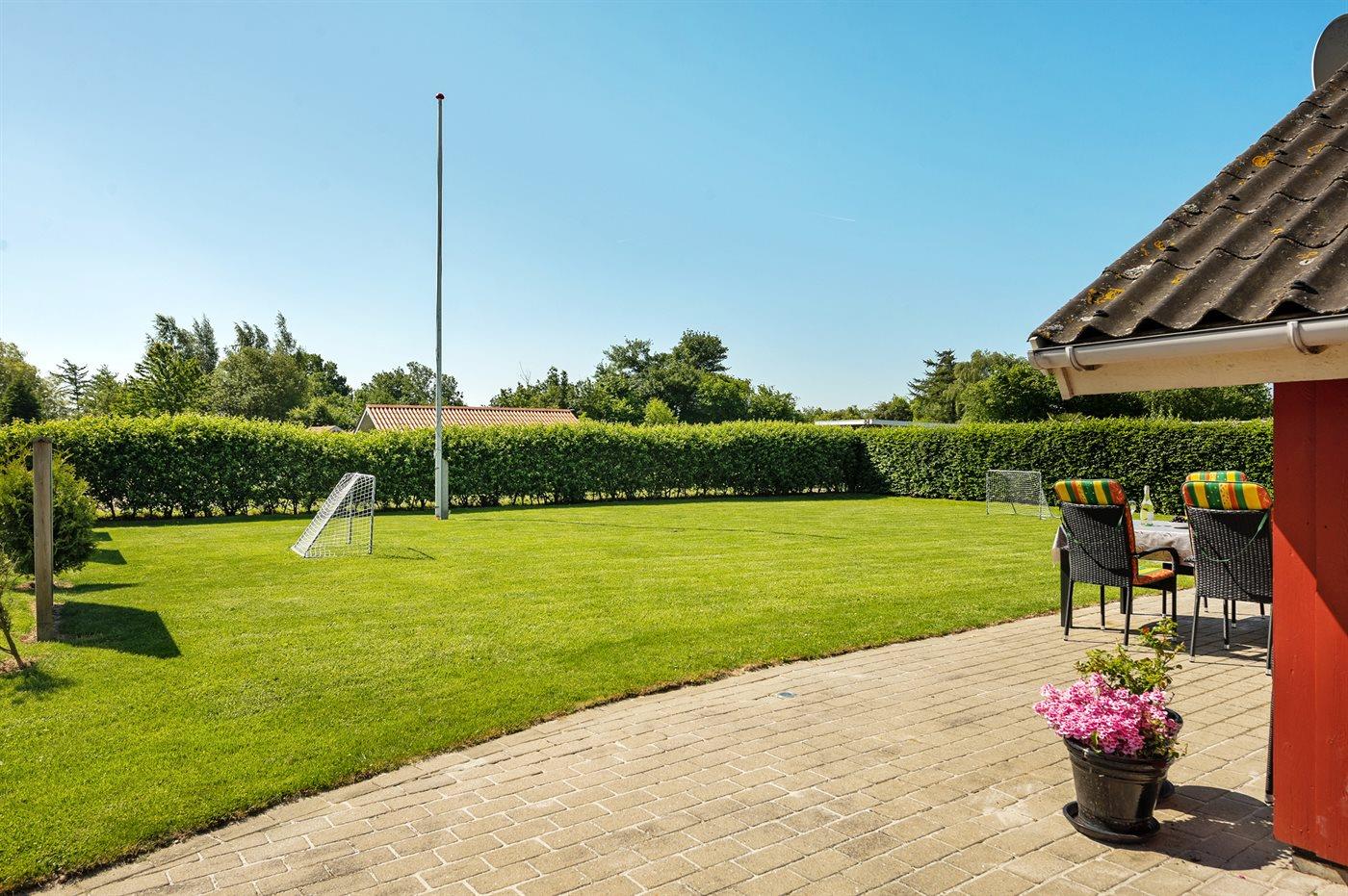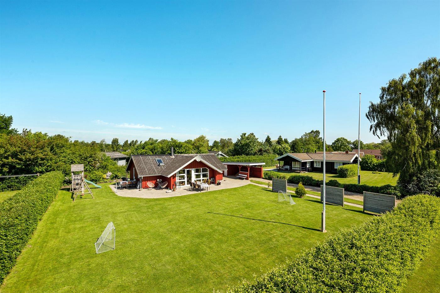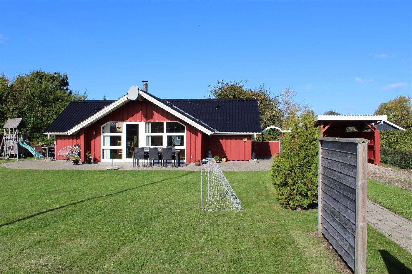 De vakantiewoning is gelegen op een 824 m² groot aangelegde tuin. Afstand tot de zee 400 m. Dichtstbijzijnde winkel 3000 m. Er is een golfbaan op een afstand van 20000 m. Bij de vakantiewoning hoort 70 m² terras. Gereedschapsruimte. Schommel. Zandbak. Speeltoren. Glijbaan. Voetbaldoel. Barbecue. Carport ter beschikking. Parkeerplaats bij het huis.