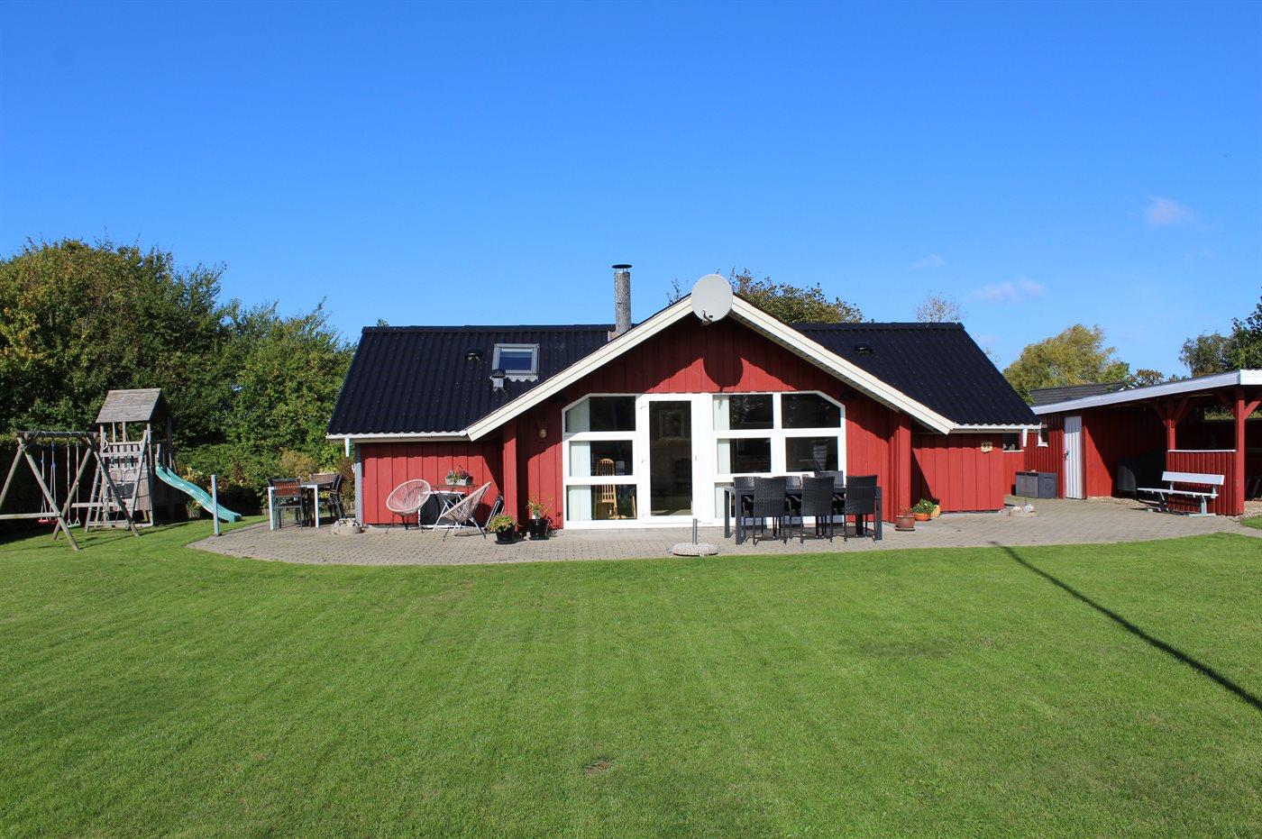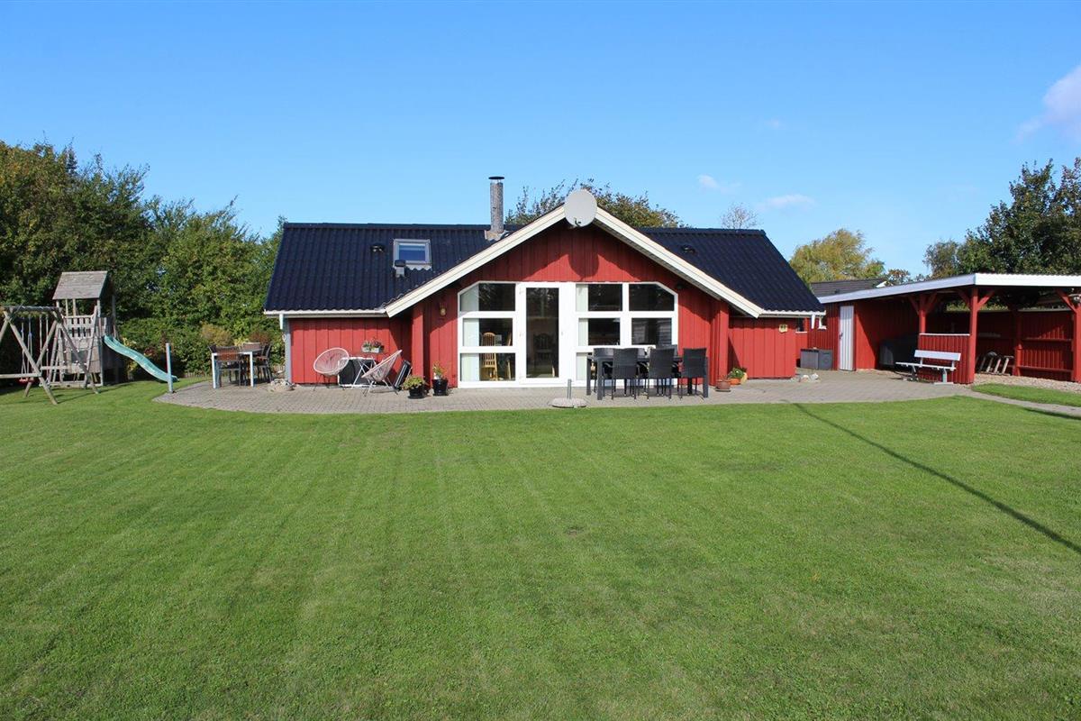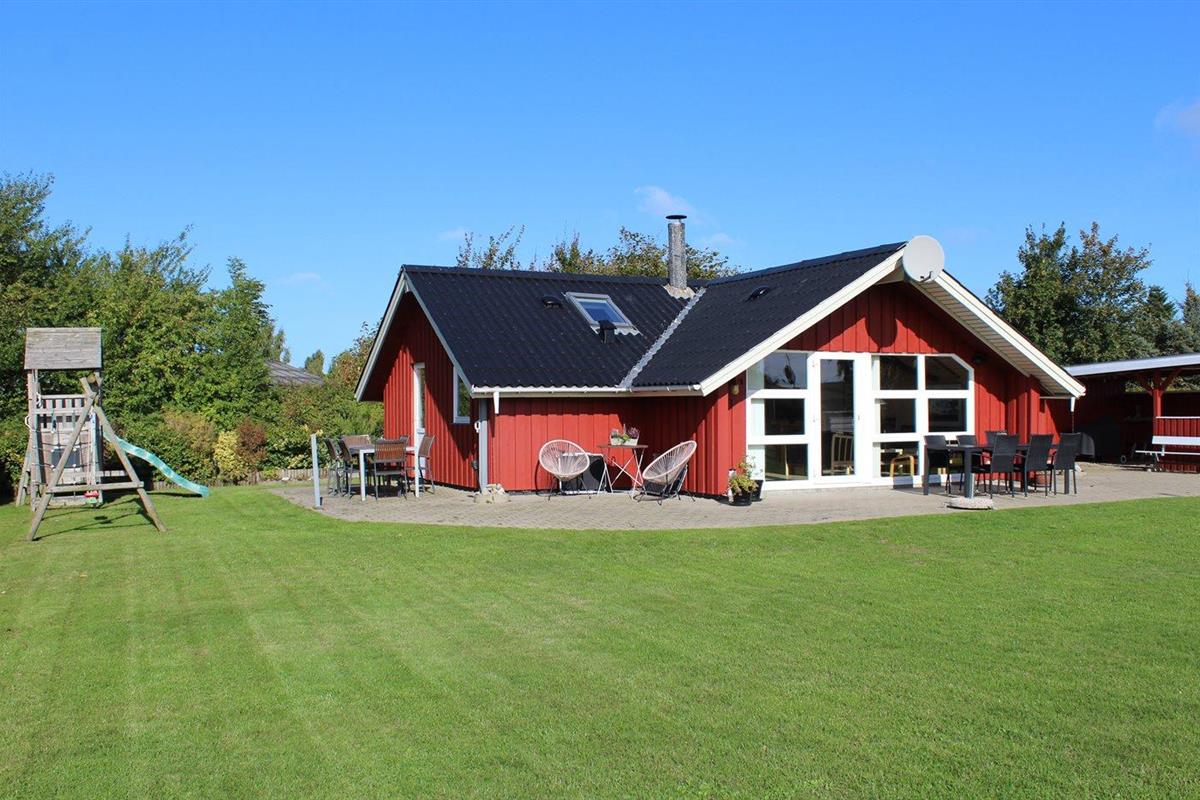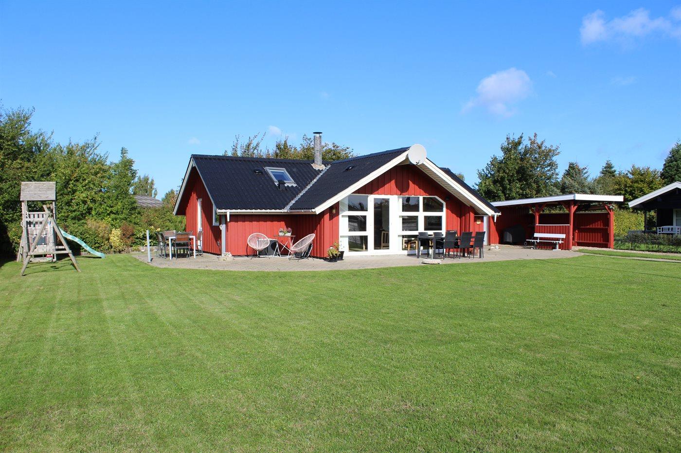 De vakantiewoning is gelegen op een 824 m² groot aangelegde tuin. Afstand tot de zee 400 m. Dichtstbijzijnde winkel 3000 m. Er is een golfbaan op een afstand van 20000 m. Bij de vakantiewoning hoort 70 m² terras. Gereedschapsruimte. Schommel. Zandbak. Speeltoren. Glijbaan. Voetbaldoel. Barbecue. Carport ter beschikking. Parkeerplaats bij het huis.
