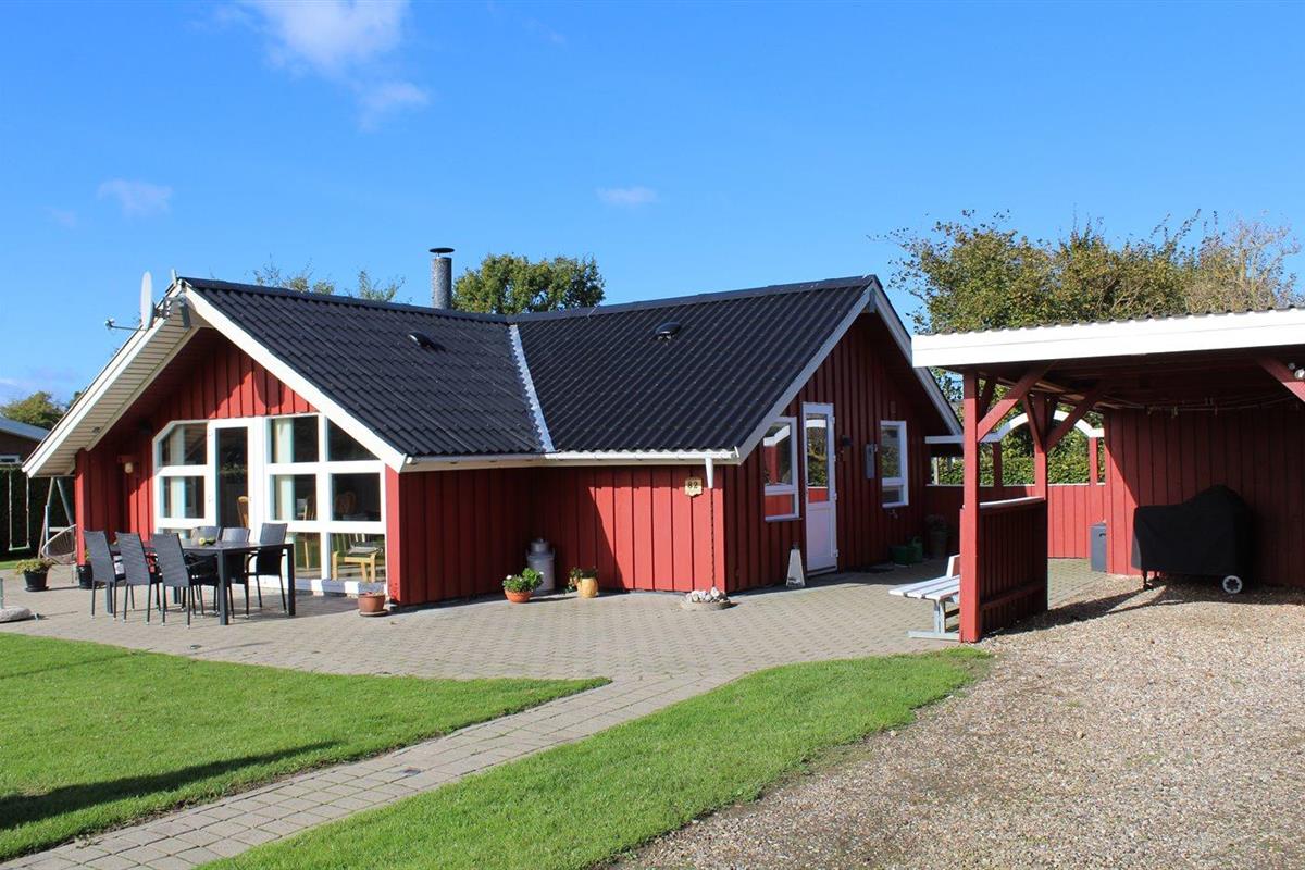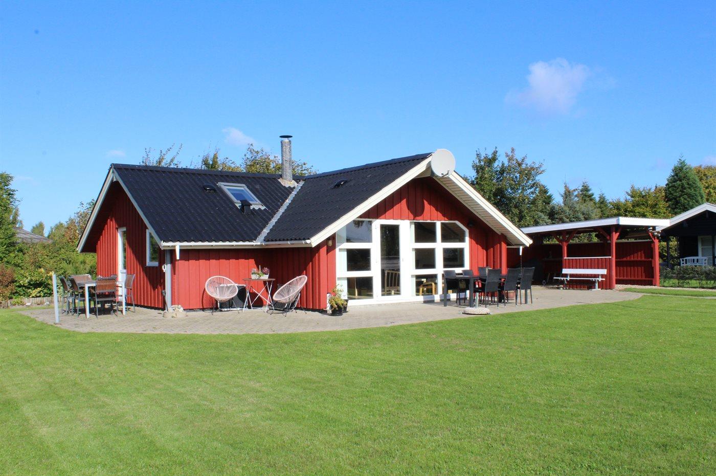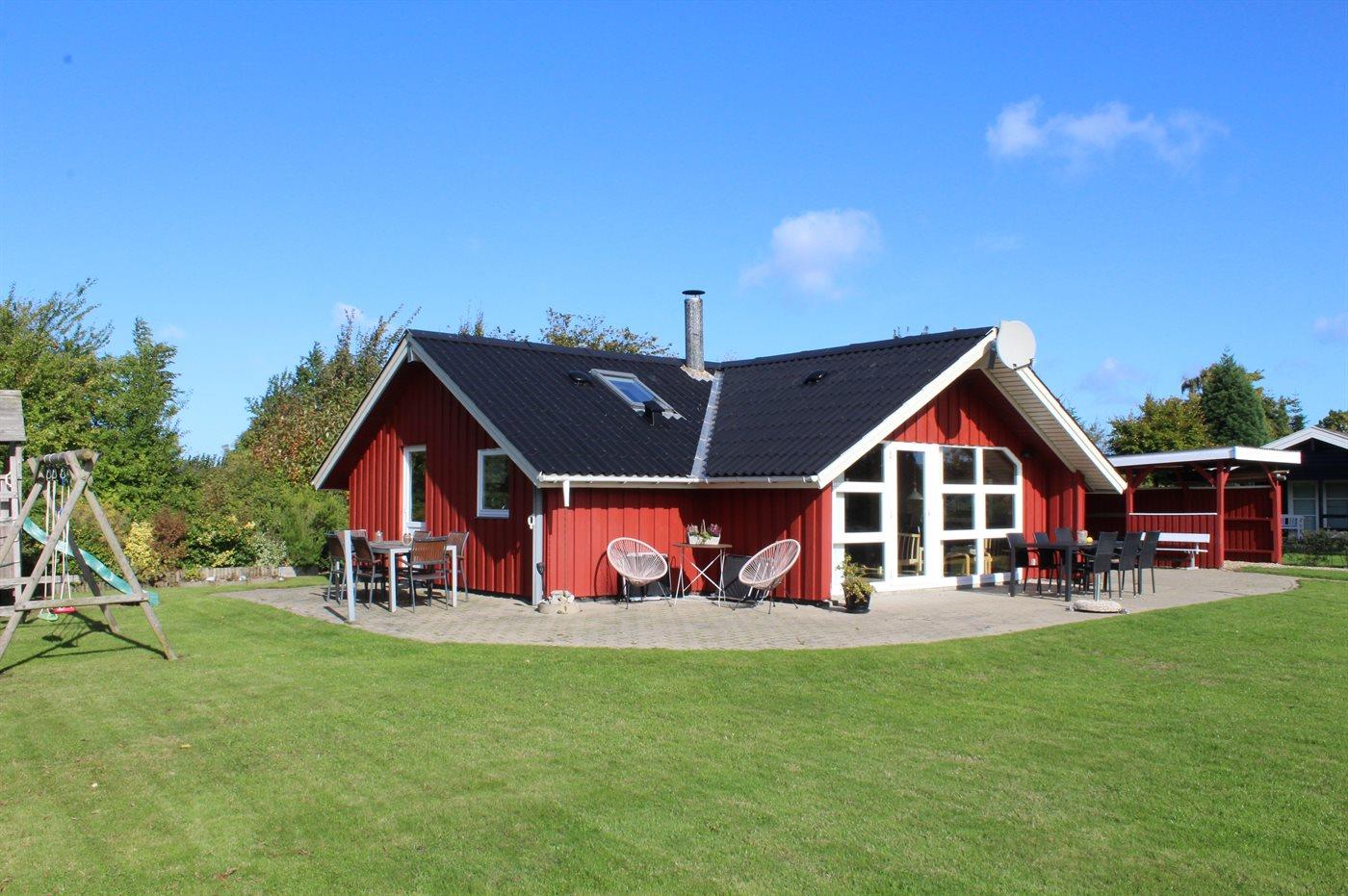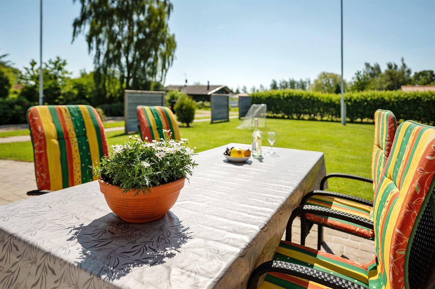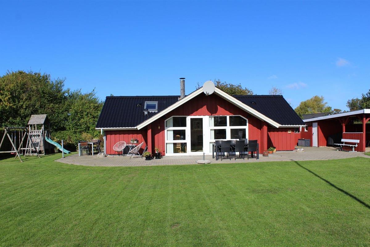 De vakantiewoning is gelegen op een 824 m² groot aangelegde tuin. Afstand tot de zee 400 m. Dichtstbijzijnde winkel 3000 m. Er is een golfbaan op een afstand van 20000 m. Bij de vakantiewoning hoort 70 m² terras. Gereedschapsruimte. Schommel. Zandbak. Speeltoren. Glijbaan. Voetbaldoel. Barbecue. Carport ter beschikking. Parkeerplaats bij het huis.