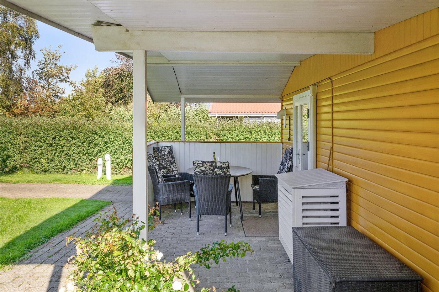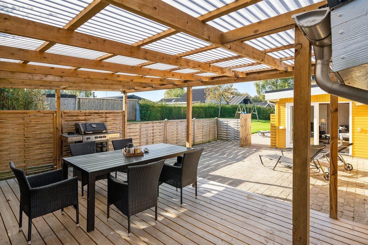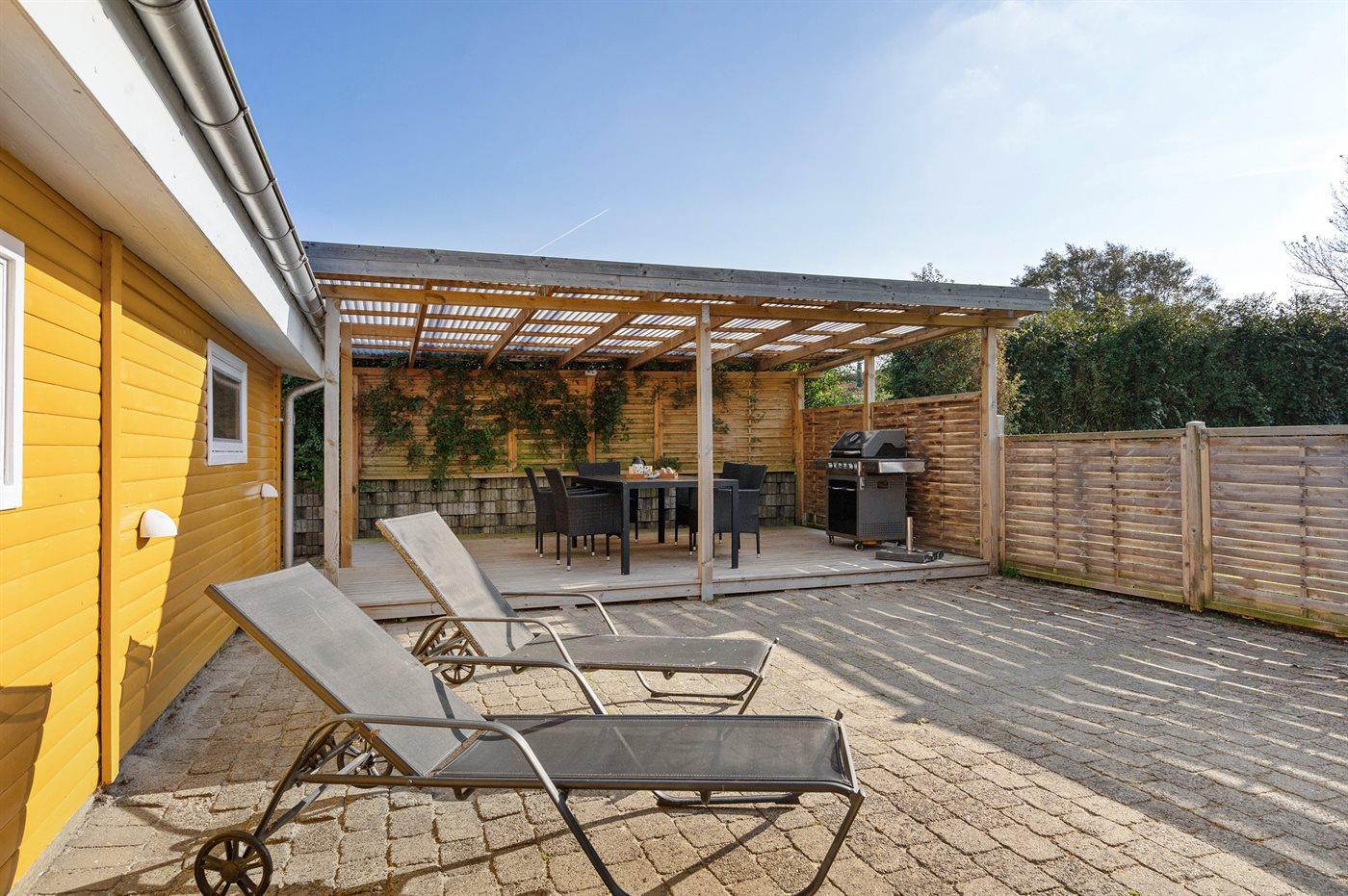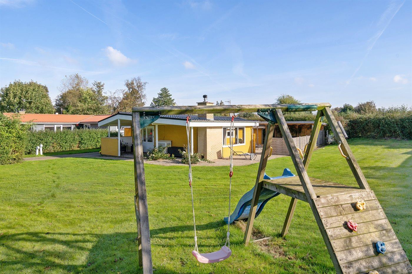 De vakantiewoning is gelegen op een 860 m² groot aangelegde tuin. Afstand tot de zee 80 m. Dichtstbijzijnde winkel 800 m. Bij de vakantiewoning hoort 25 m² terras. Schommel. Zandbak. Parkeerplaats bij het huis.