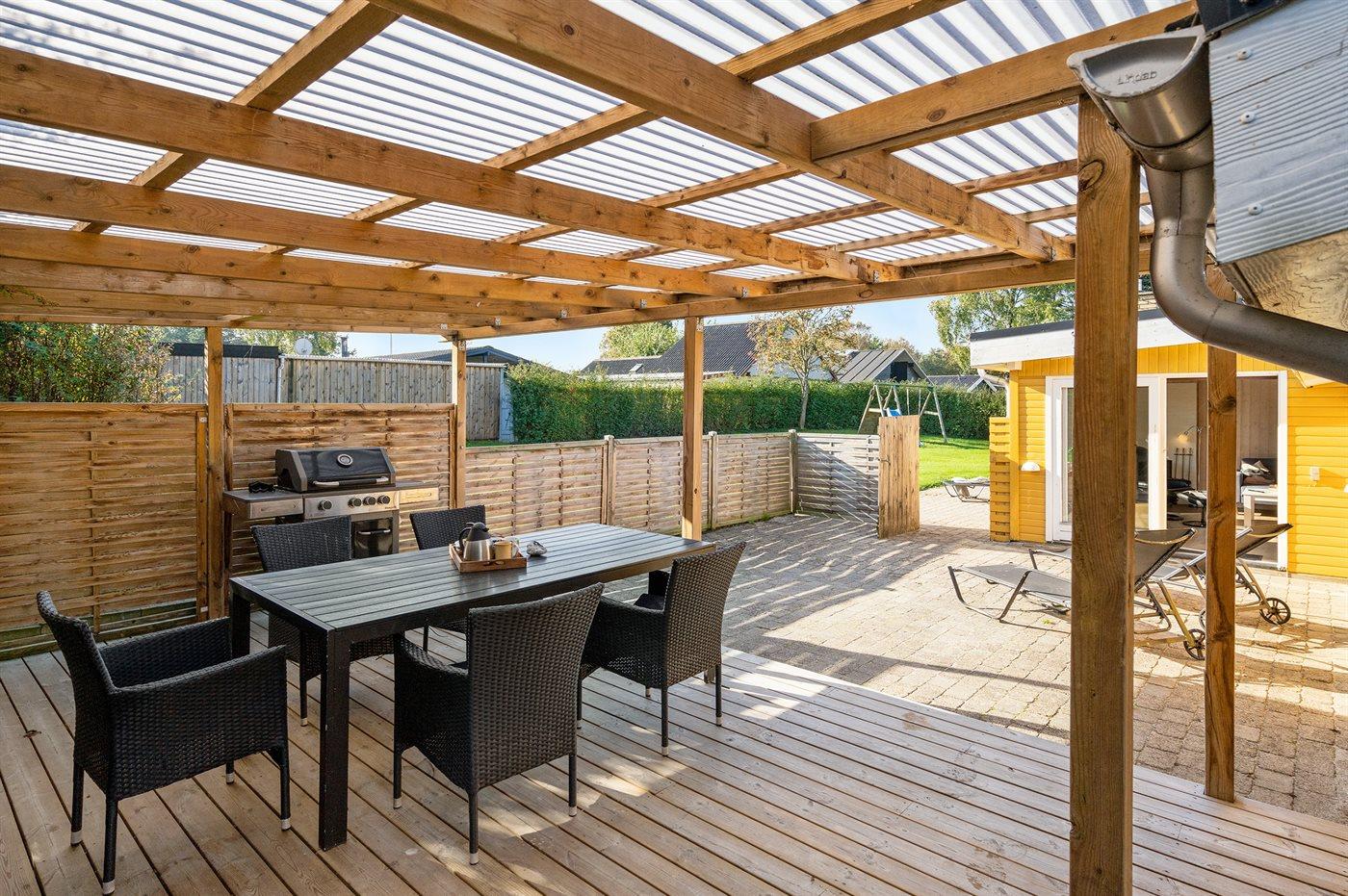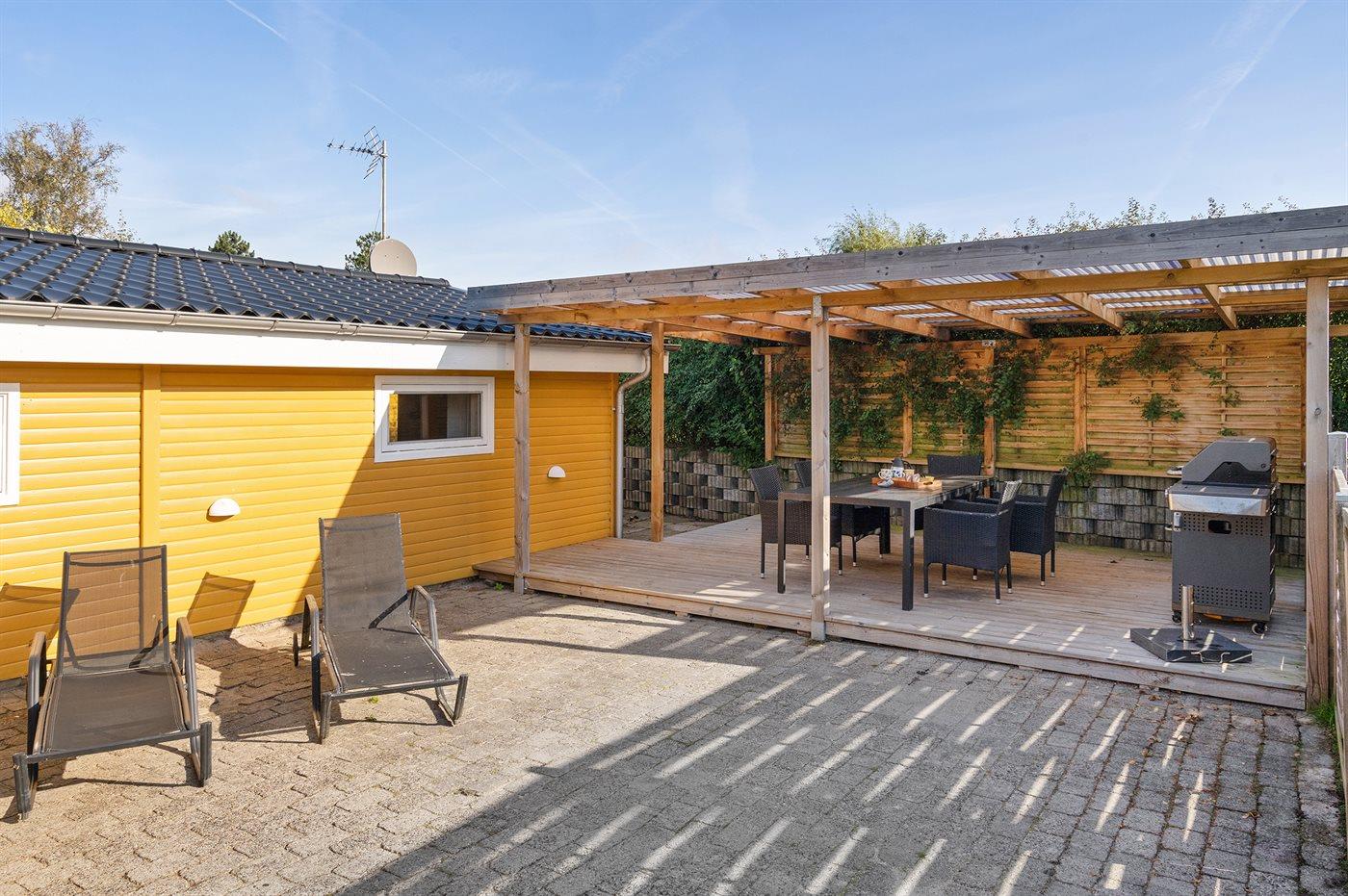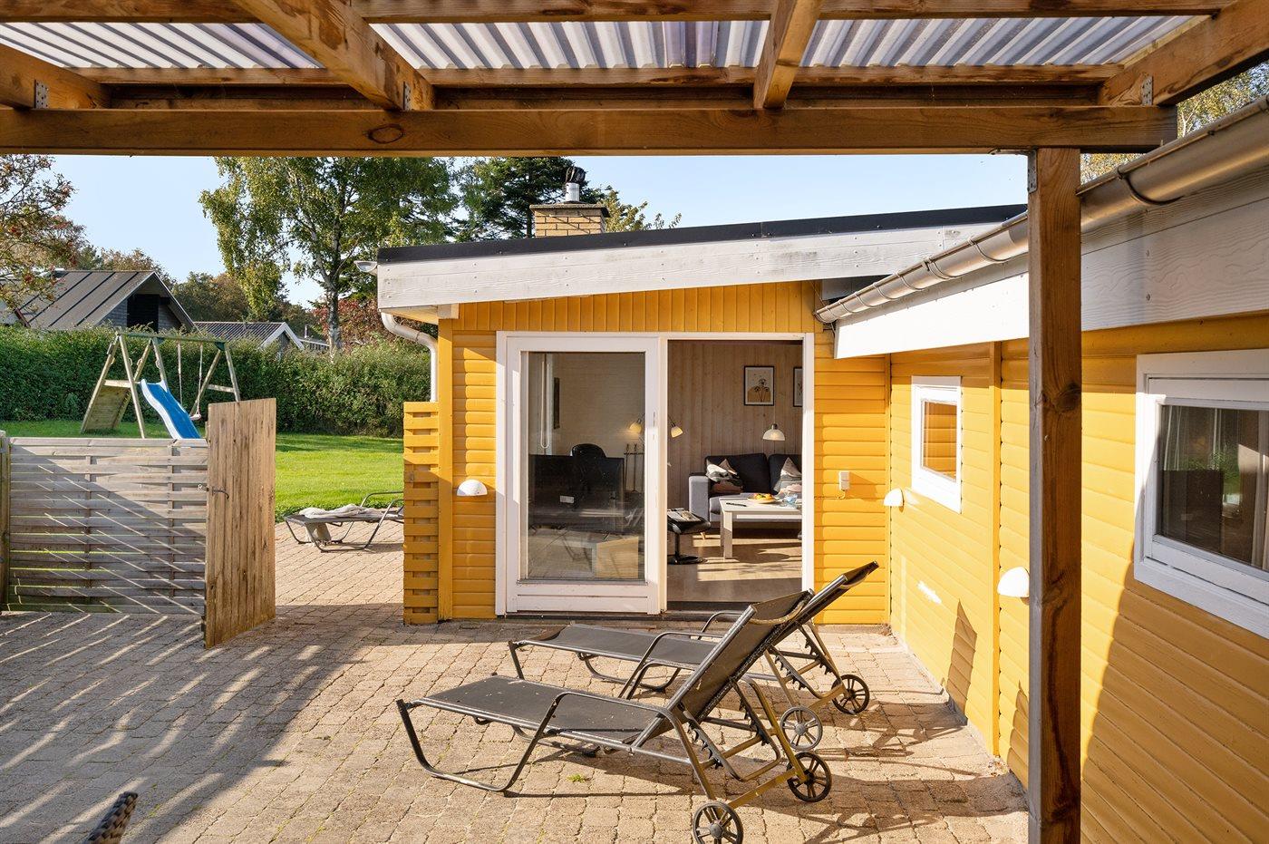 De vakantiewoning is gelegen op een 860 m² groot aangelegde tuin. Afstand tot de zee 80 m. Dichtstbijzijnde winkel 800 m. Bij de vakantiewoning hoort 25 m² terras. Schommel. Zandbak. Parkeerplaats bij het huis.