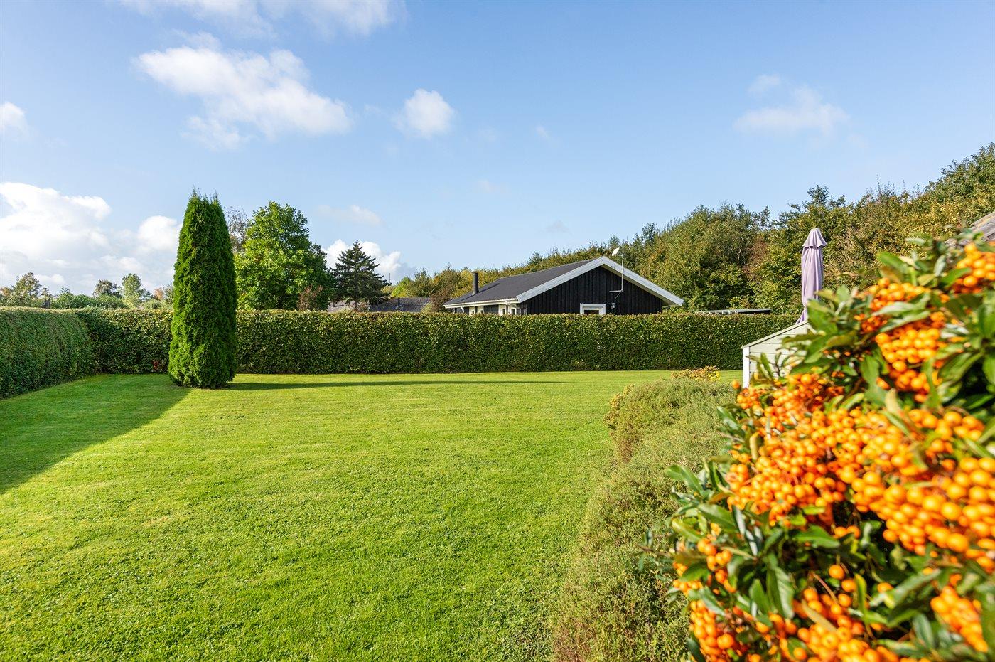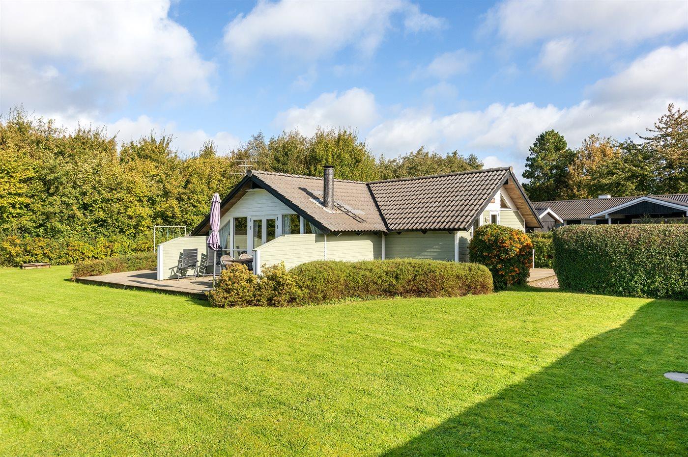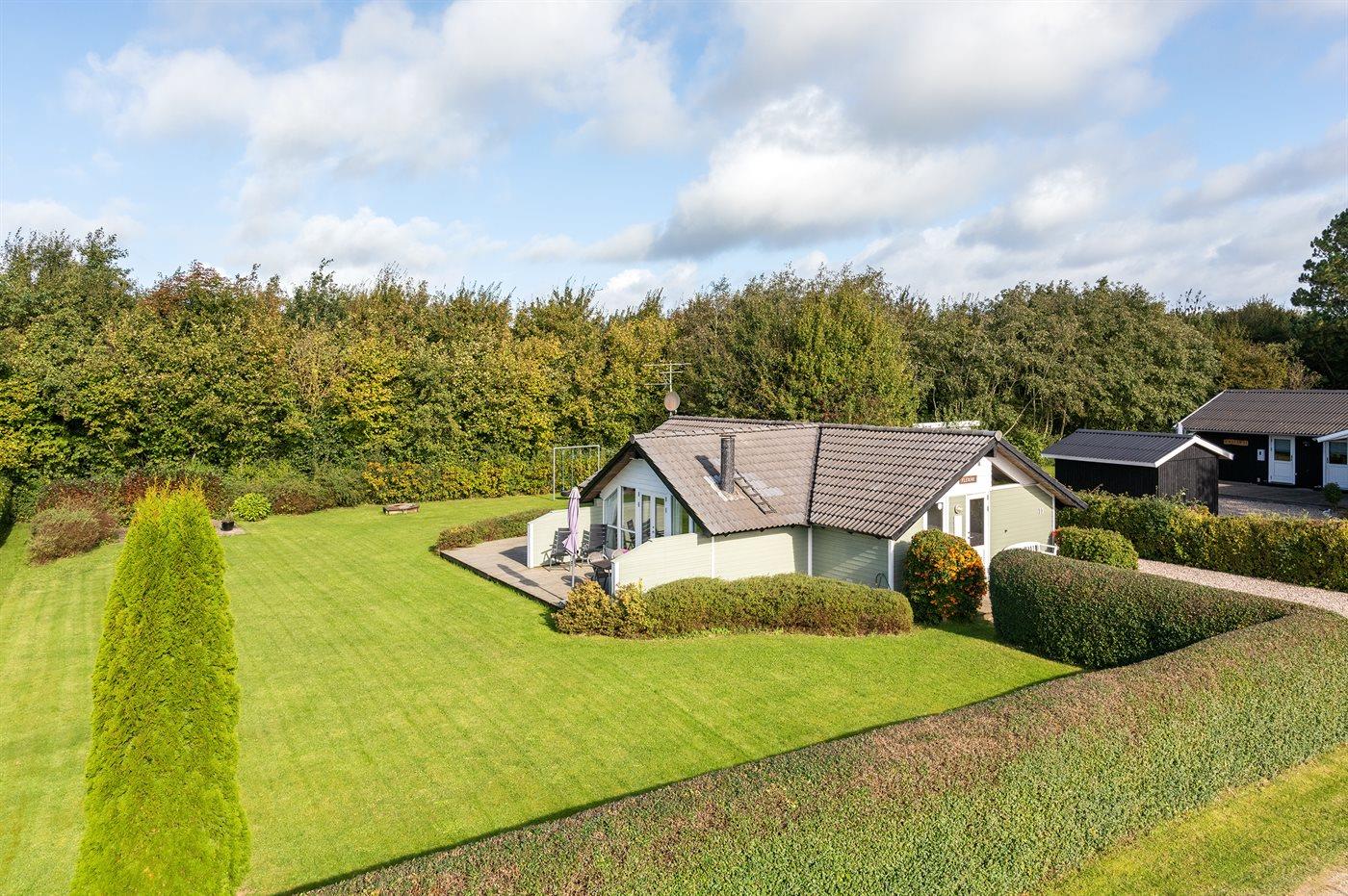 De vakantiewoning is gelegen op een 946 m² groot aangelegde tuin. Afstand tot de zee 600 m. Dichtstbijzijnde winkel 1500 m. Er is een golfbaan op een afstand van 10000 m. Bij de vakantiewoning hoort 40 m² terras. Gereedschapsruimte. Schommel. Zandbak.Vuurplaats. Barbecue. Parkeerplaats bij het huis.