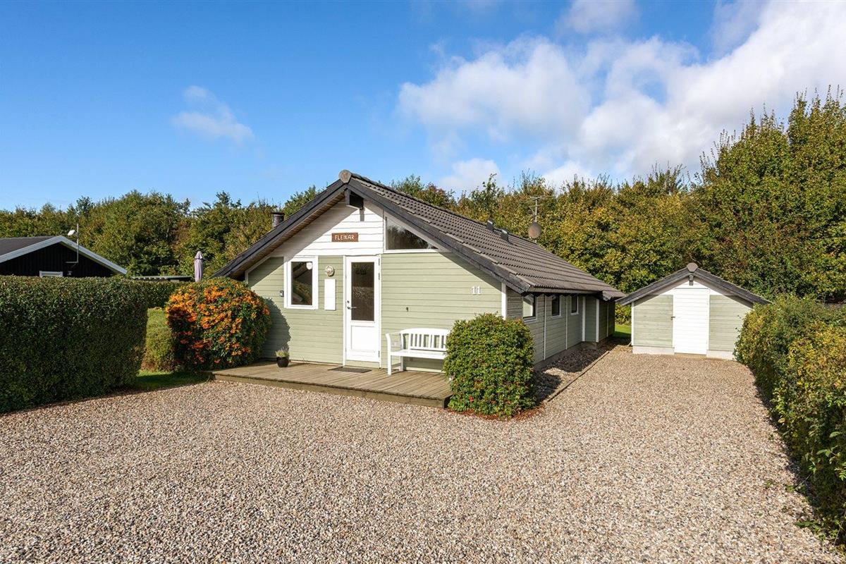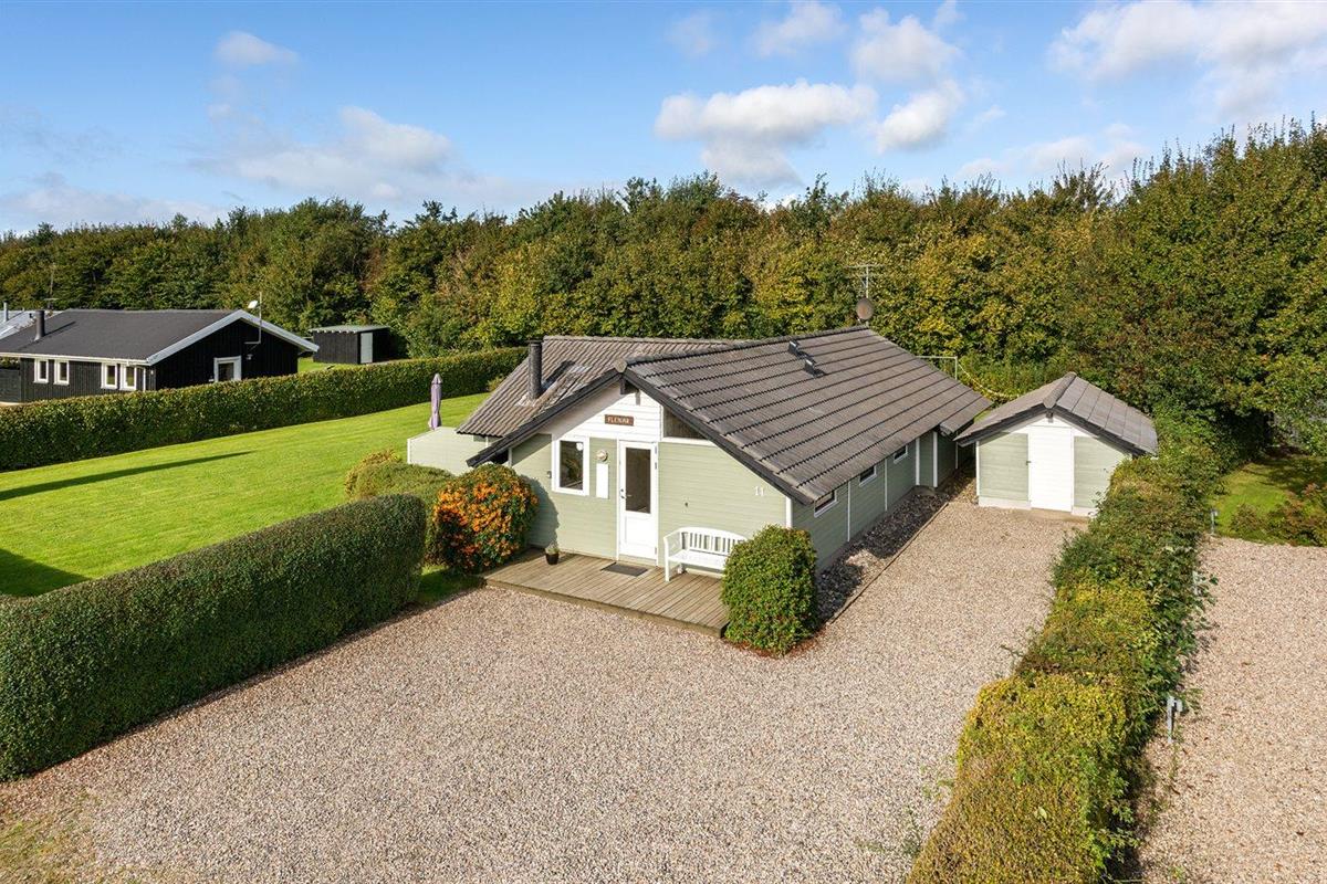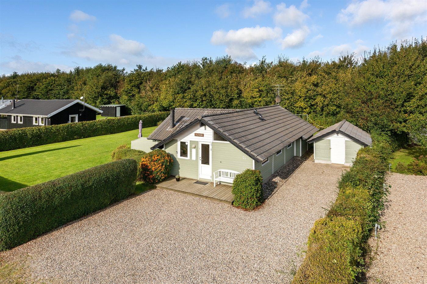 De vakantiewoning is gelegen op een 946 m² groot aangelegde tuin. Afstand tot de zee 600 m. Dichtstbijzijnde winkel 1500 m. Er is een golfbaan op een afstand van 10000 m. Bij de vakantiewoning hoort 40 m² terras. Gereedschapsruimte. Schommel. Zandbak.Vuurplaats. Barbecue. Parkeerplaats bij het huis.