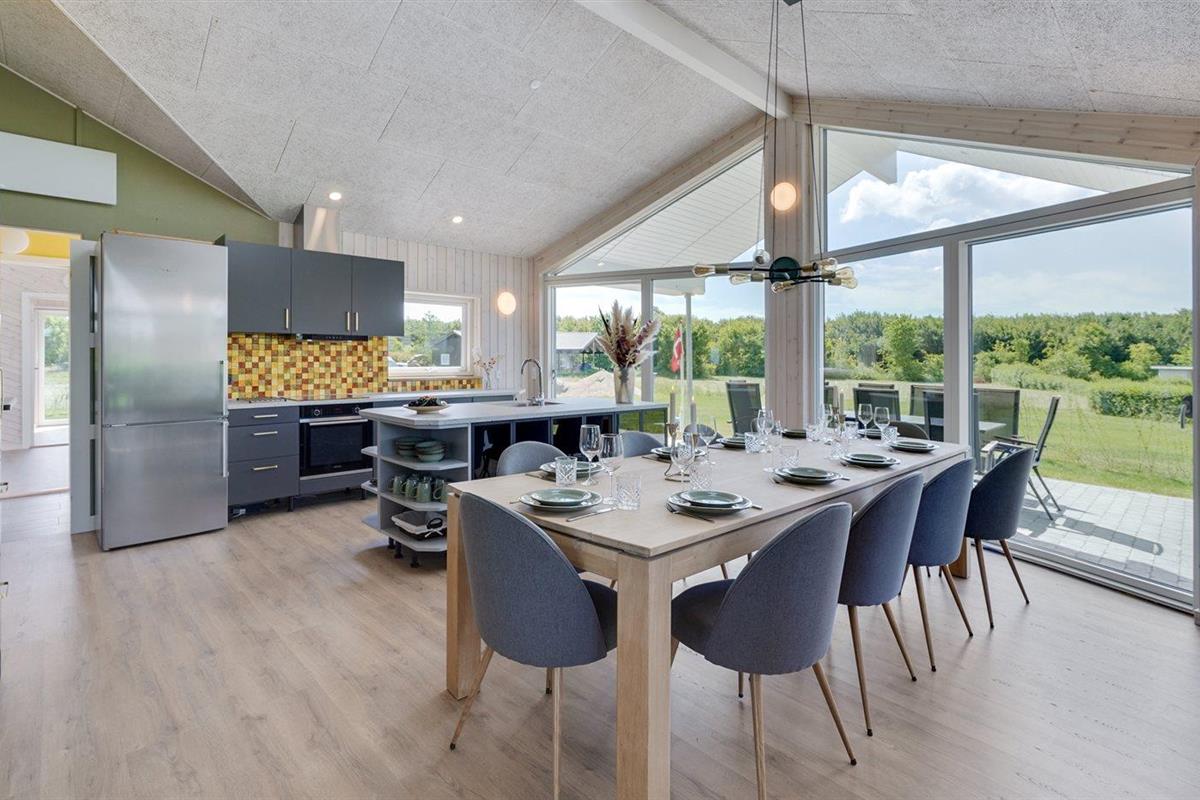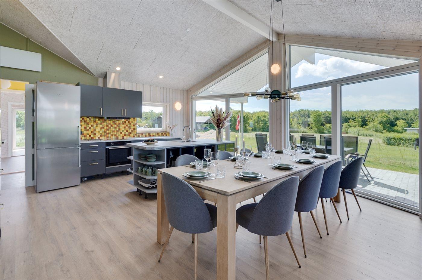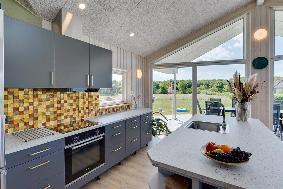 De keuken is uitgerust met koelkast Er is 4 inductiekookplaten, heteluchtoven, magnetron en vaatwasser.