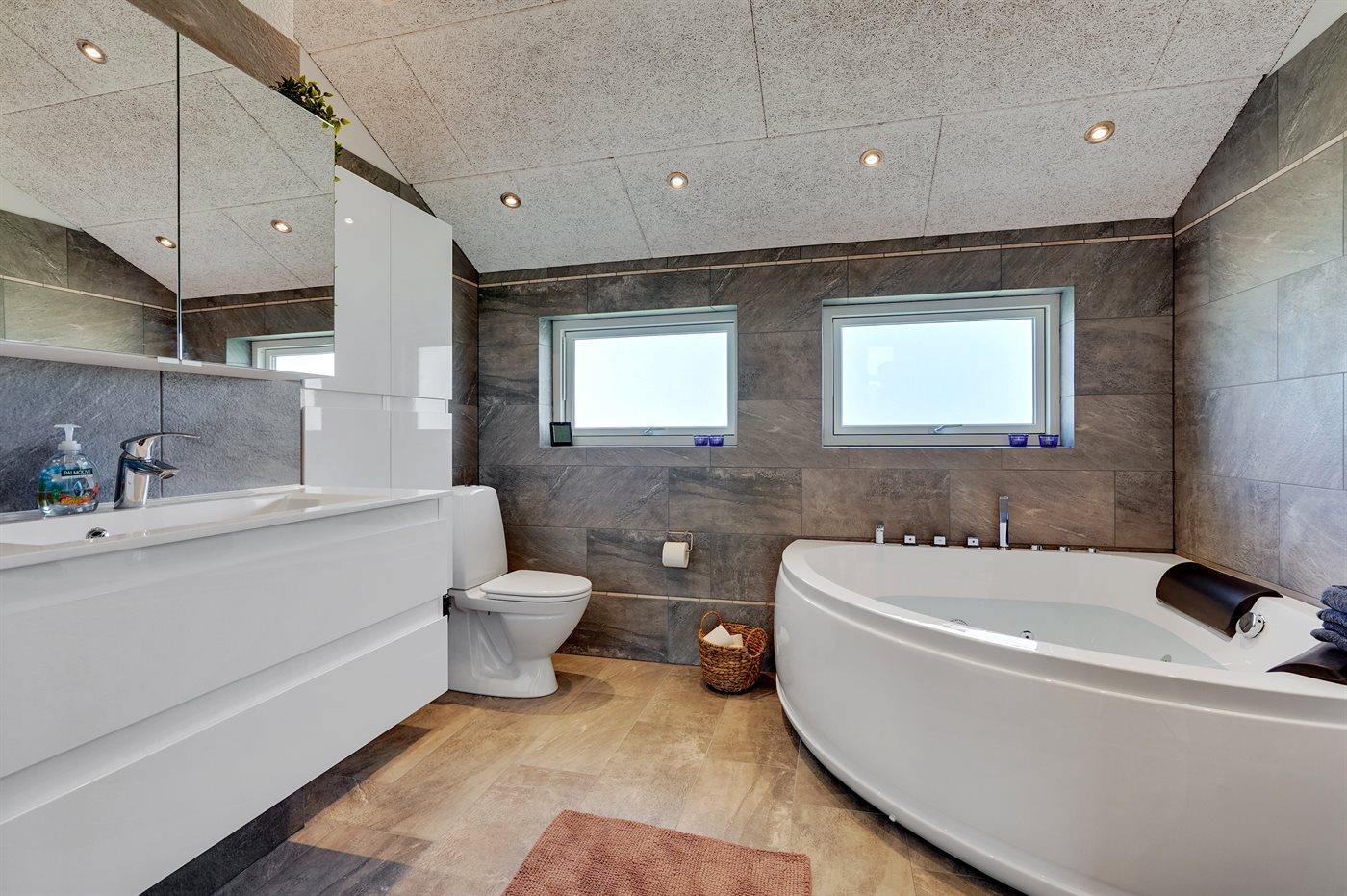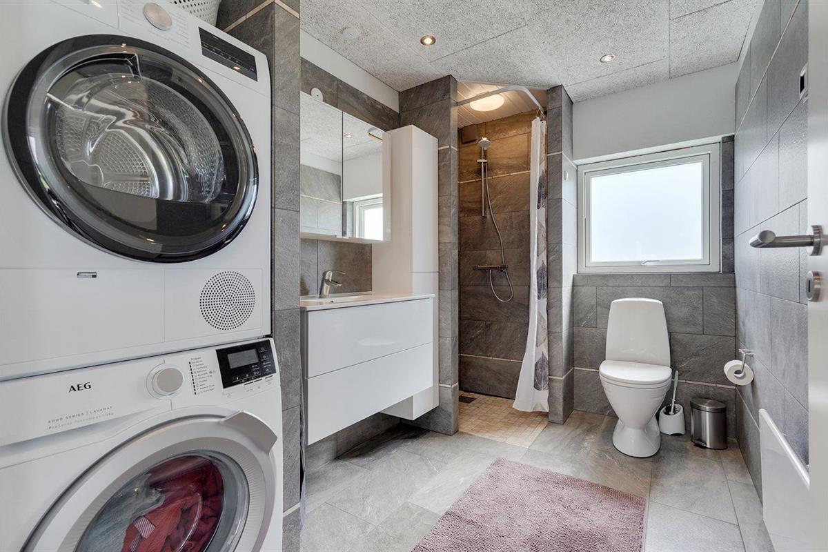 Er is 2 badkamers met douchehok en 2 toiletten. Er is vloerverwarming in 2 van de badkamers. De sauna biedt de gelegenheid tot ontspanning.