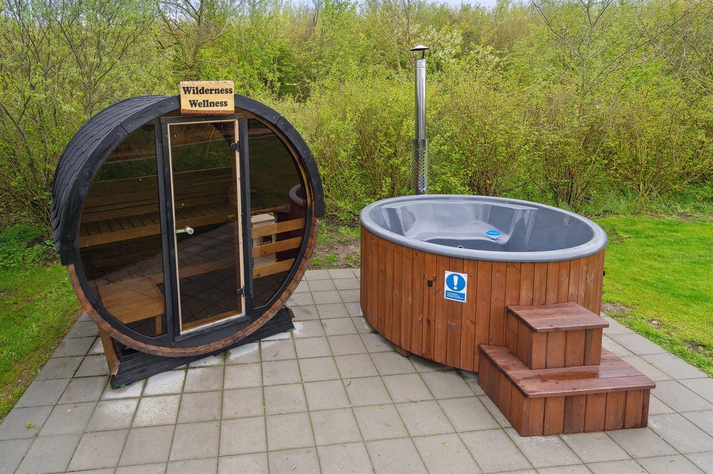 Het buiten hot tub biedt ontspanning aan 4 personen.