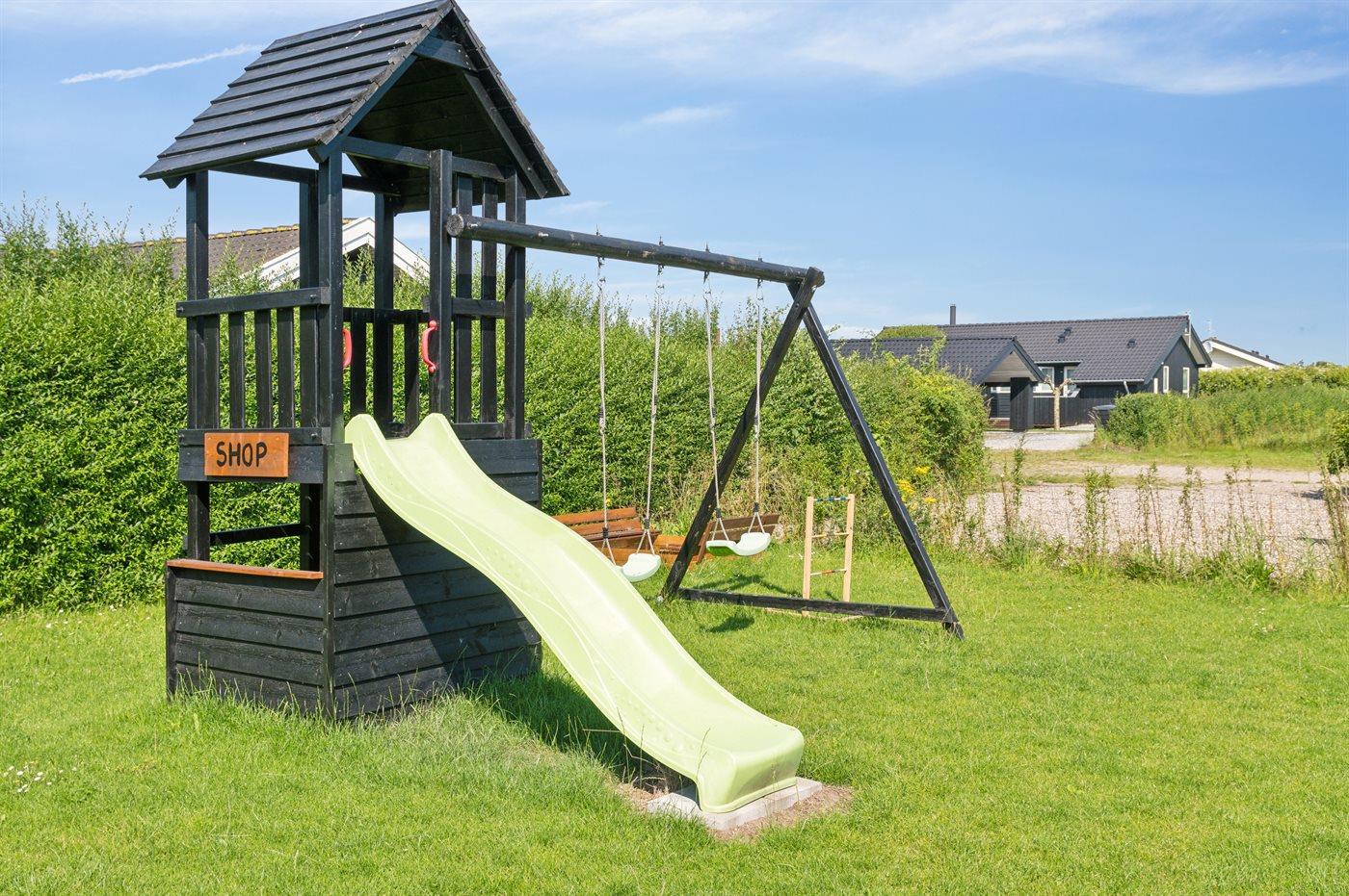 De vakantiewoning is gelegen op een 1250 m² groot aangelegde tuin. Afstand tot de zee 600 m. Dichtstbijzijnde winkel 1200 m. Er is een golfbaan op een afstand van 10000 m. Daarnaast is er een 16 m² groot overdekt terras. Bij de vakantiewoning hoort terras. Schommel. Zandbak. Glijbaan. Buitensauna. Buitendouche. Het huis heeft een stopcontact voor het opladen van een elektrische auto. Oplaadstekker type 2. Met 11 kW-laadvermogen. Parkeerplaats bij het huis.