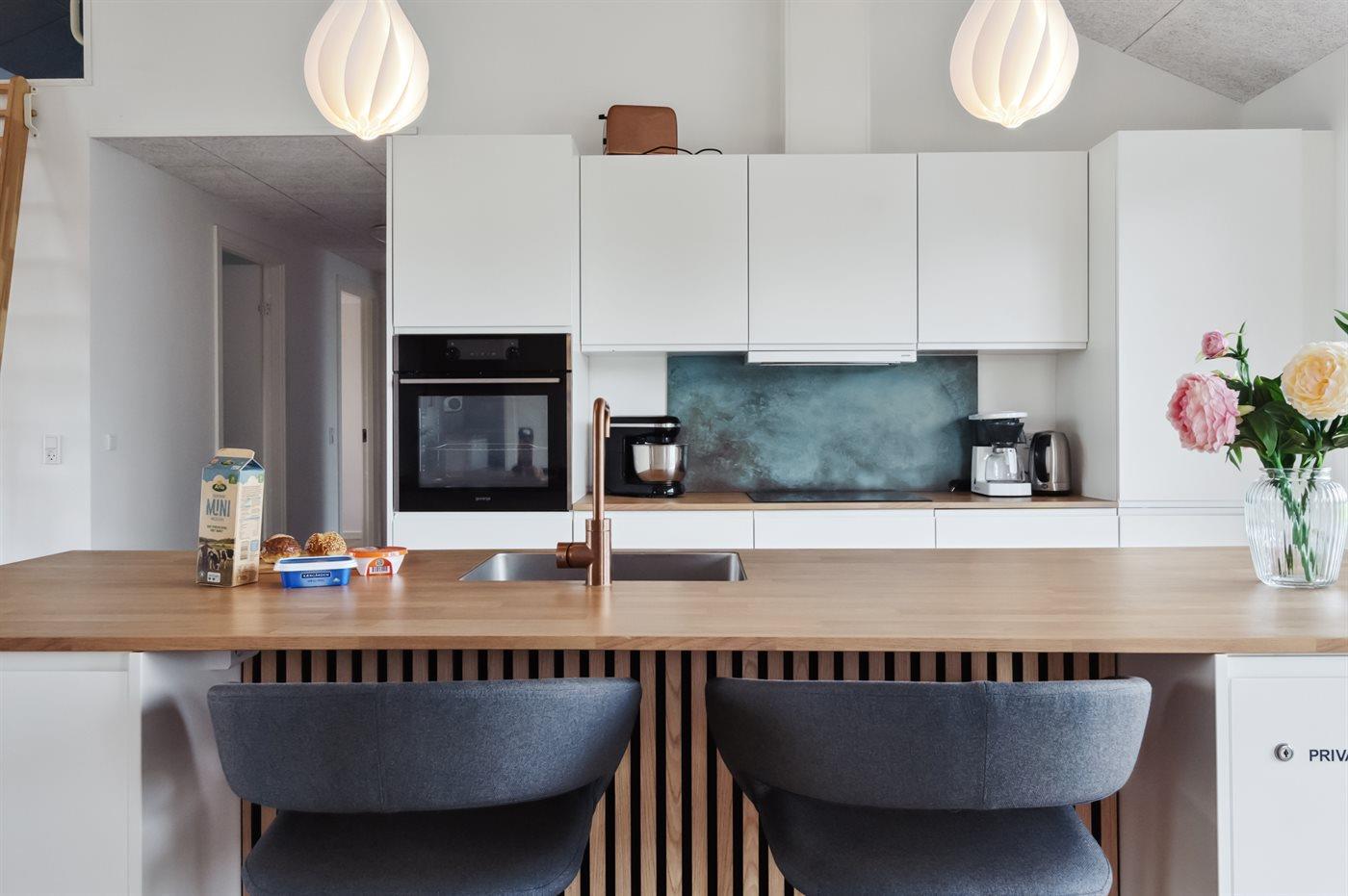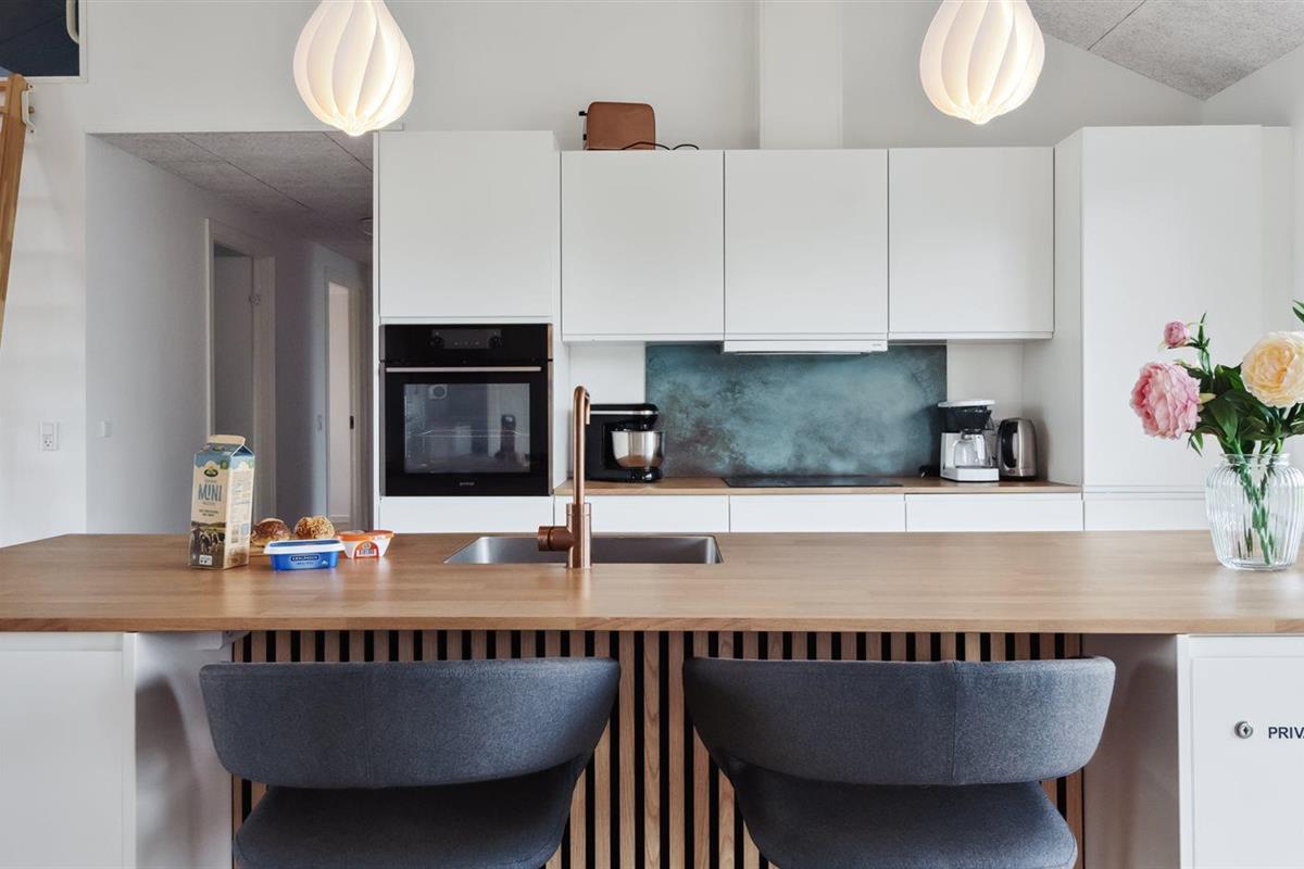 De keuken is uitgerust met koelkast Er is 4 inductiekookplaten, heteluchtoven, magnetron en vaatwasser.
