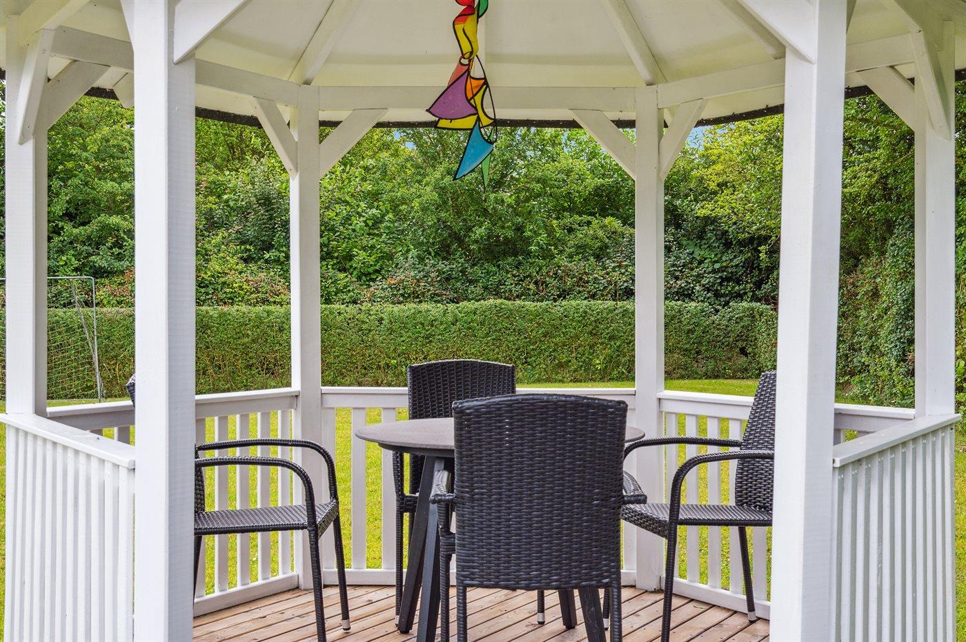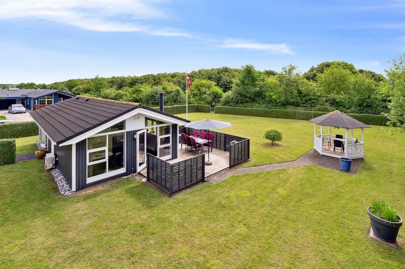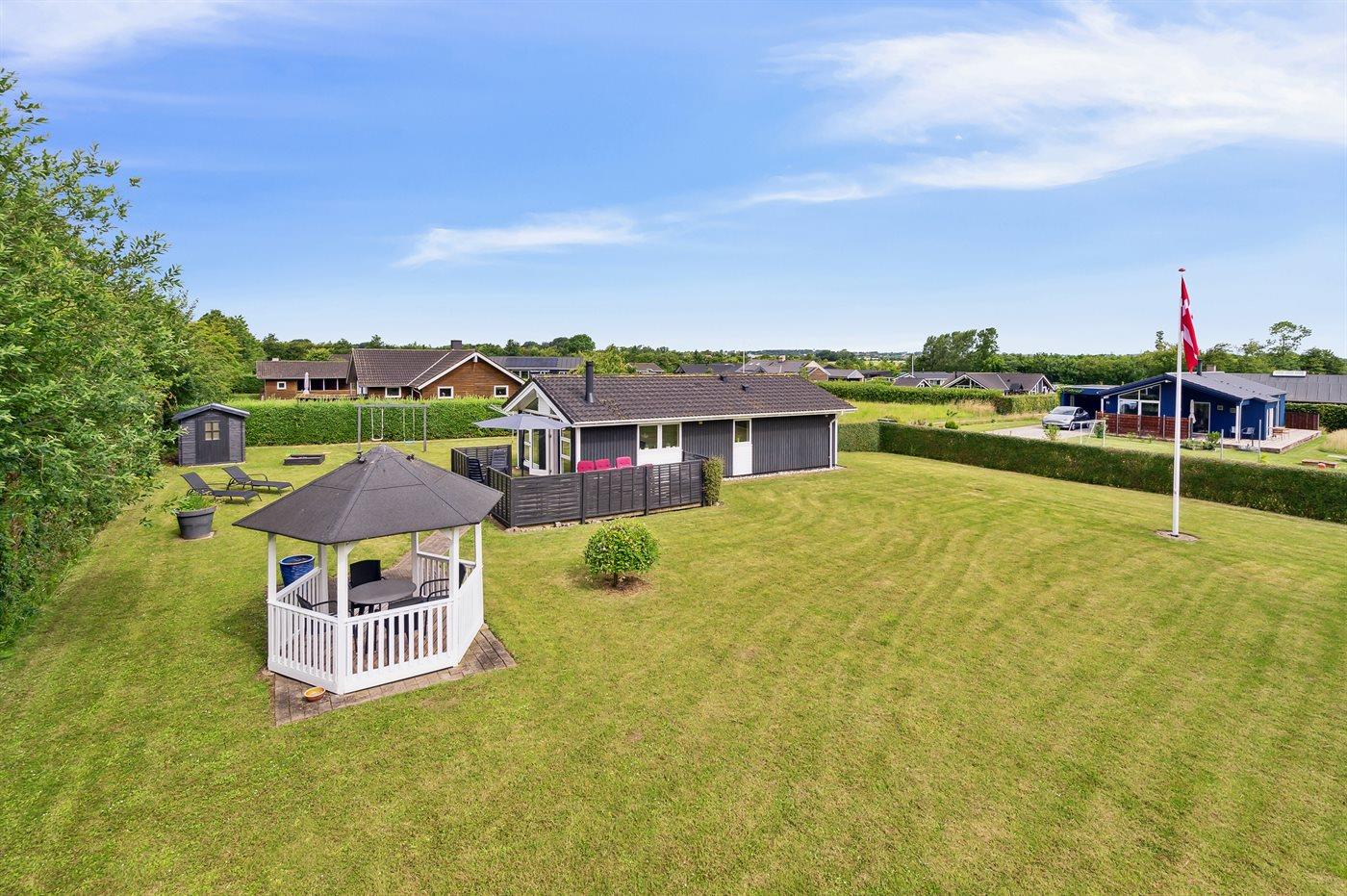 De vakantiewoning is gelegen op een 1090 m² groot aangelegde tuin. Afstand tot de zee 700 m. Dichtstbijzijnde winkel 1500 m. Er is een golfbaan op een afstand van 10000 m. Bij de vakantiewoning hoort terras en 8 m2 beschut terras. Barbecue. Parkeerplaats bij het huis.