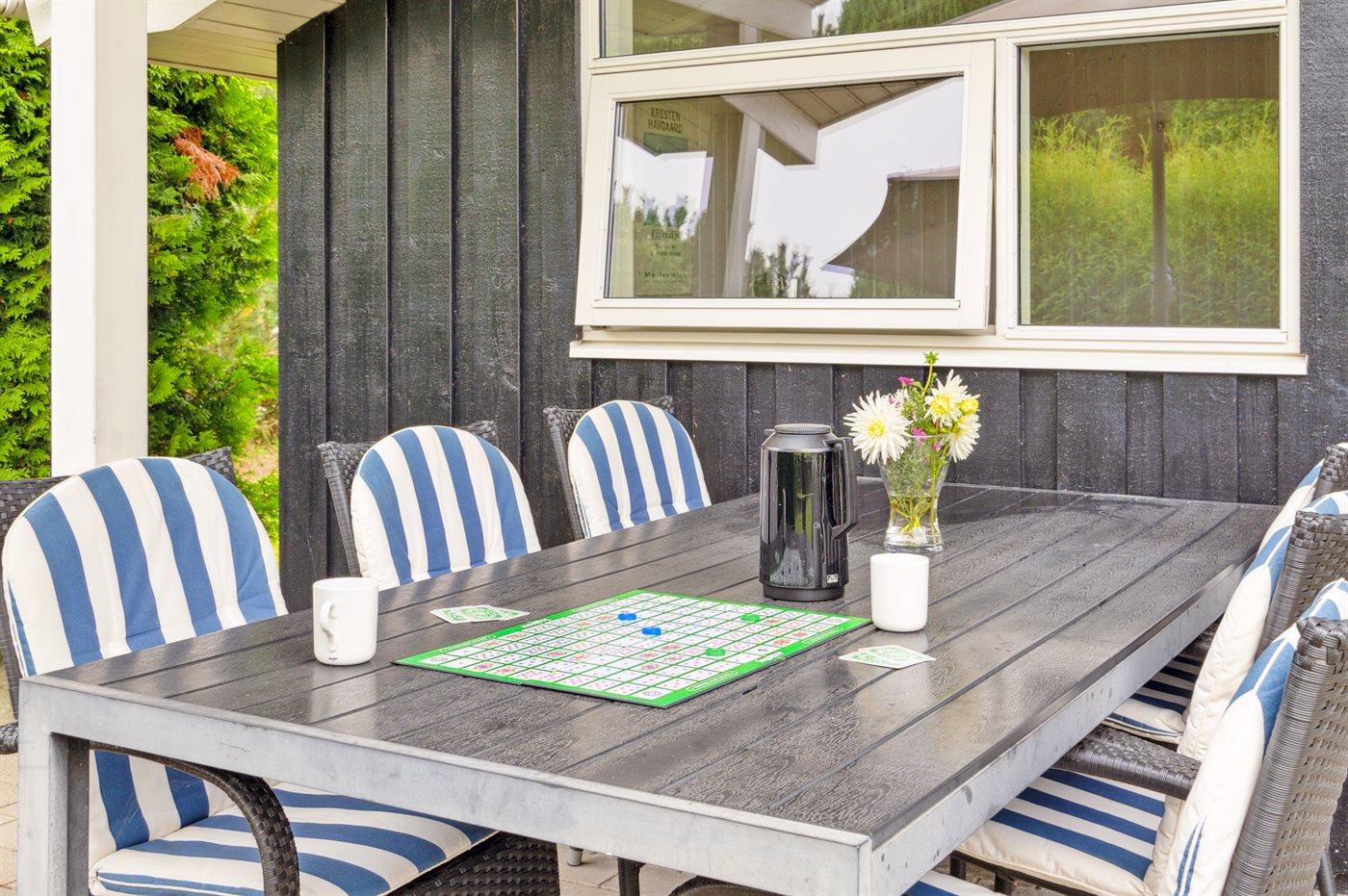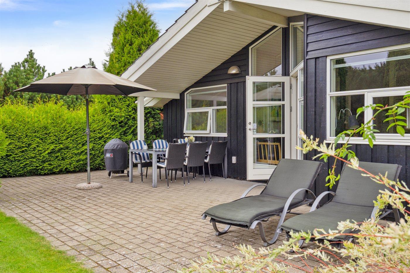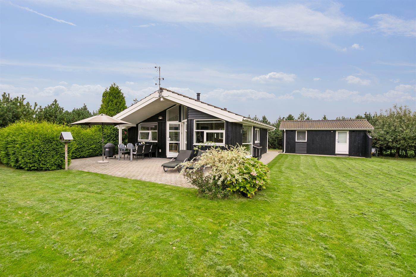 De vakantiewoning is gelegen op een 930 m² groot aangelegde tuin. Afstand tot de zee 700 m. Dichtstbijzijnde winkel 1200 m. Er is een golfbaan op een afstand van 12000 m. Bij de vakantiewoning hoort terras. Gereedschapsruimte. Barbecue. Parkeerplaats bij het huis.