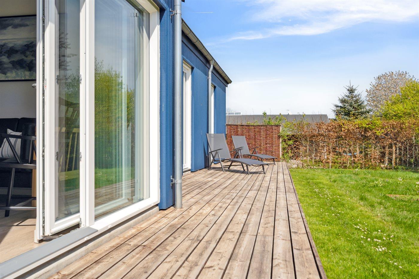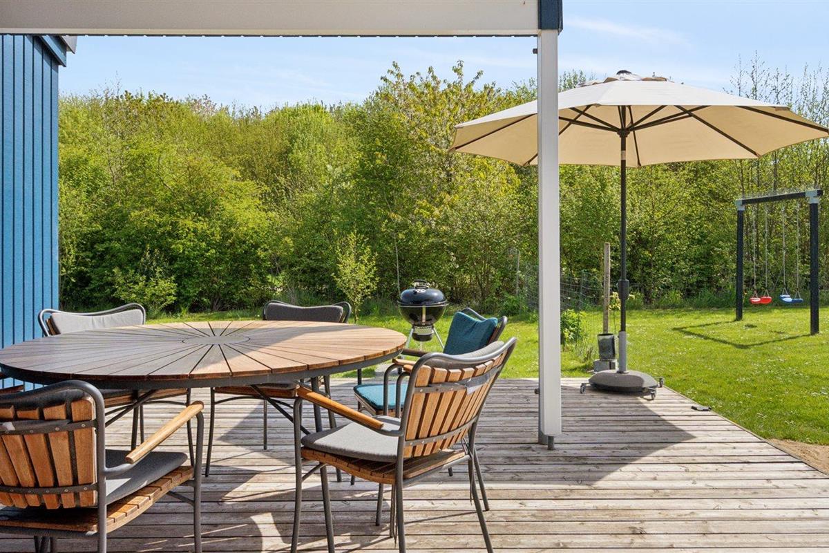 De vakantiewoning is gelegen op een 1100 m² groot aangelegde tuin. Afstand tot de zee 700 m. Dichtstbijzijnde winkel 1500 m. Er is een golfbaan op een afstand van 16000 m. Bij de vakantiewoning hoort terras en 23 m2 overdekt terras. Schommel. Zandbak. Barbecue. Het huis heeft een stopcontact voor het opladen van een elektrische auto. Oplaadstekker type 2. Met 11 kW-laadvermogen. Parkeerplaats bij het huis.