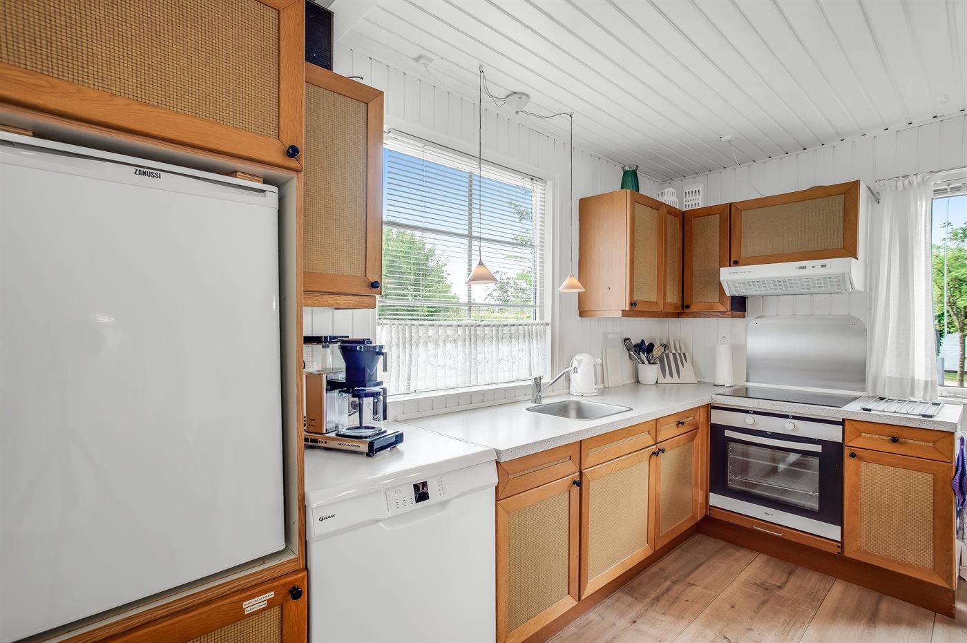 De keuken is uitgerust met koelkast Er zijn 4 keramische kookplaten, heteluchtoven, magnetron en vaatwasser.